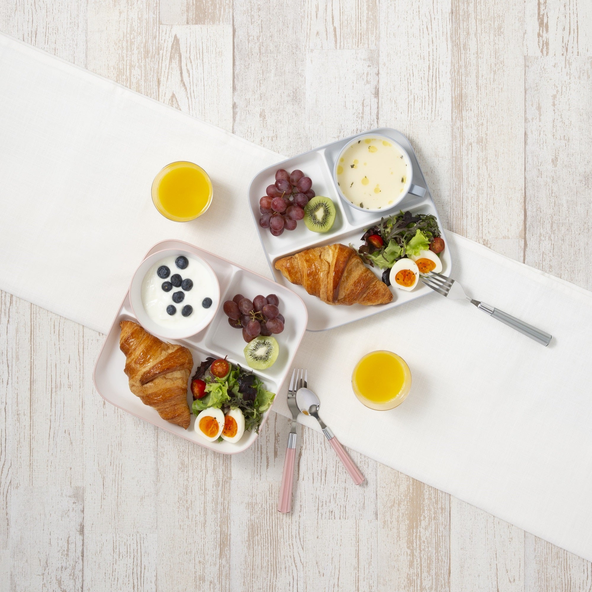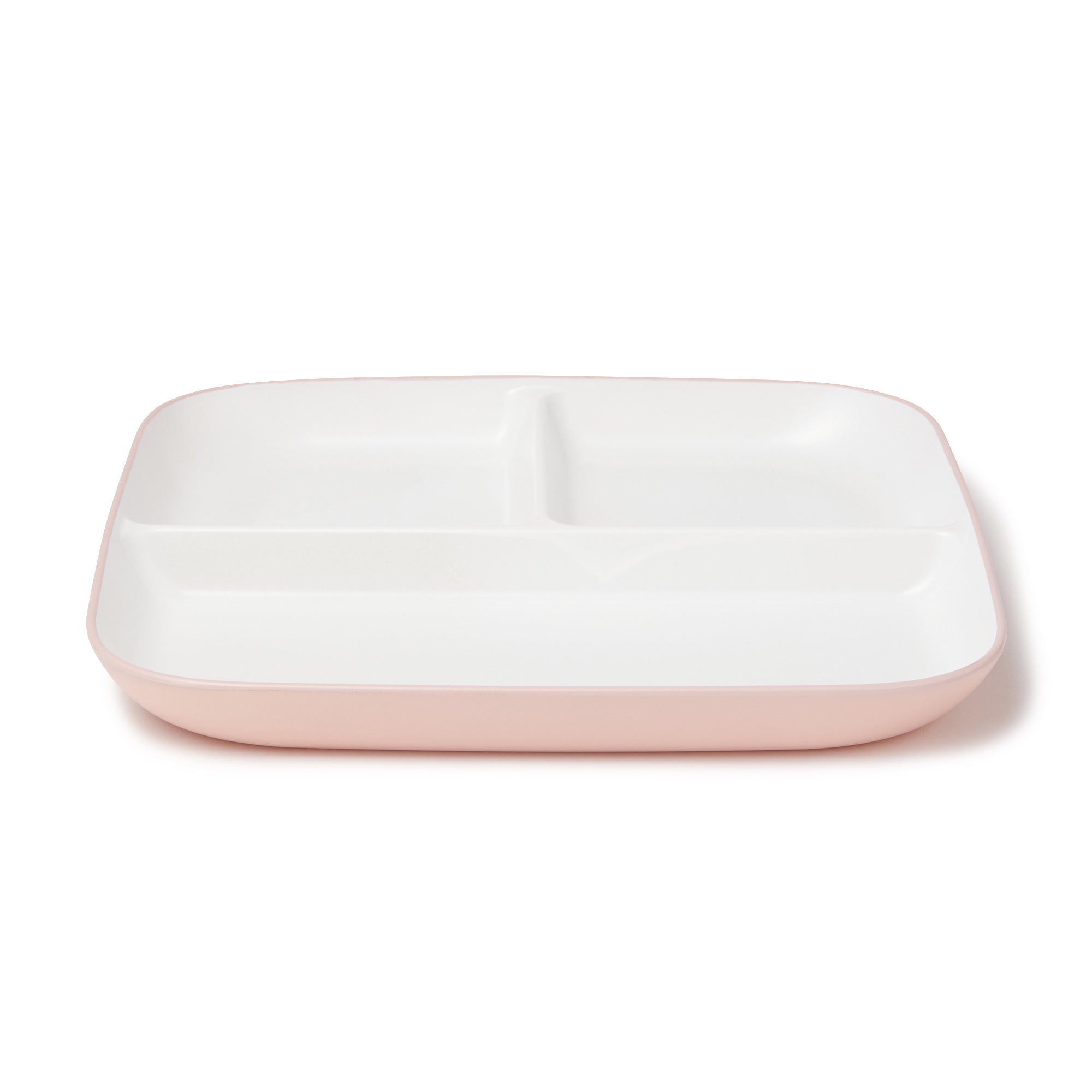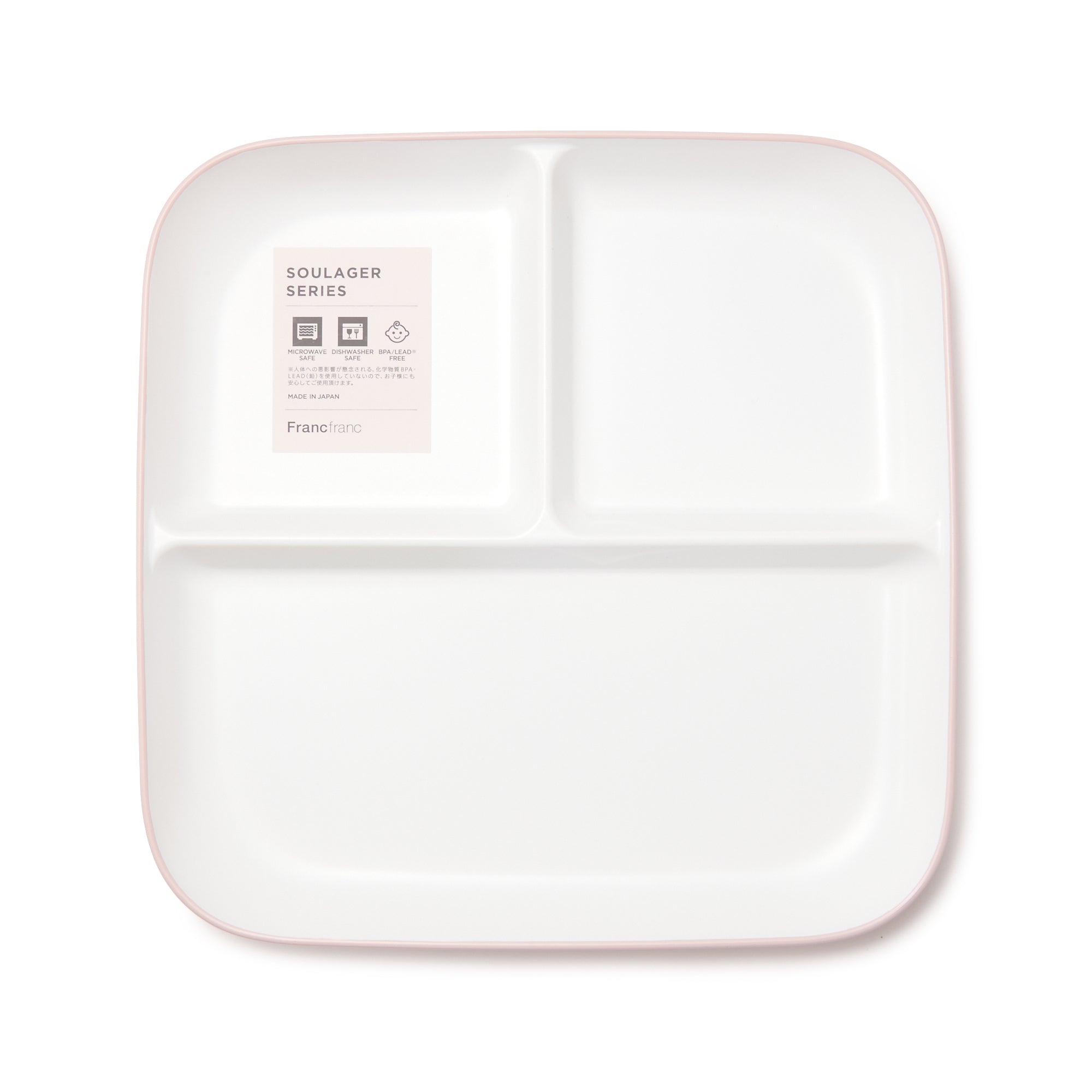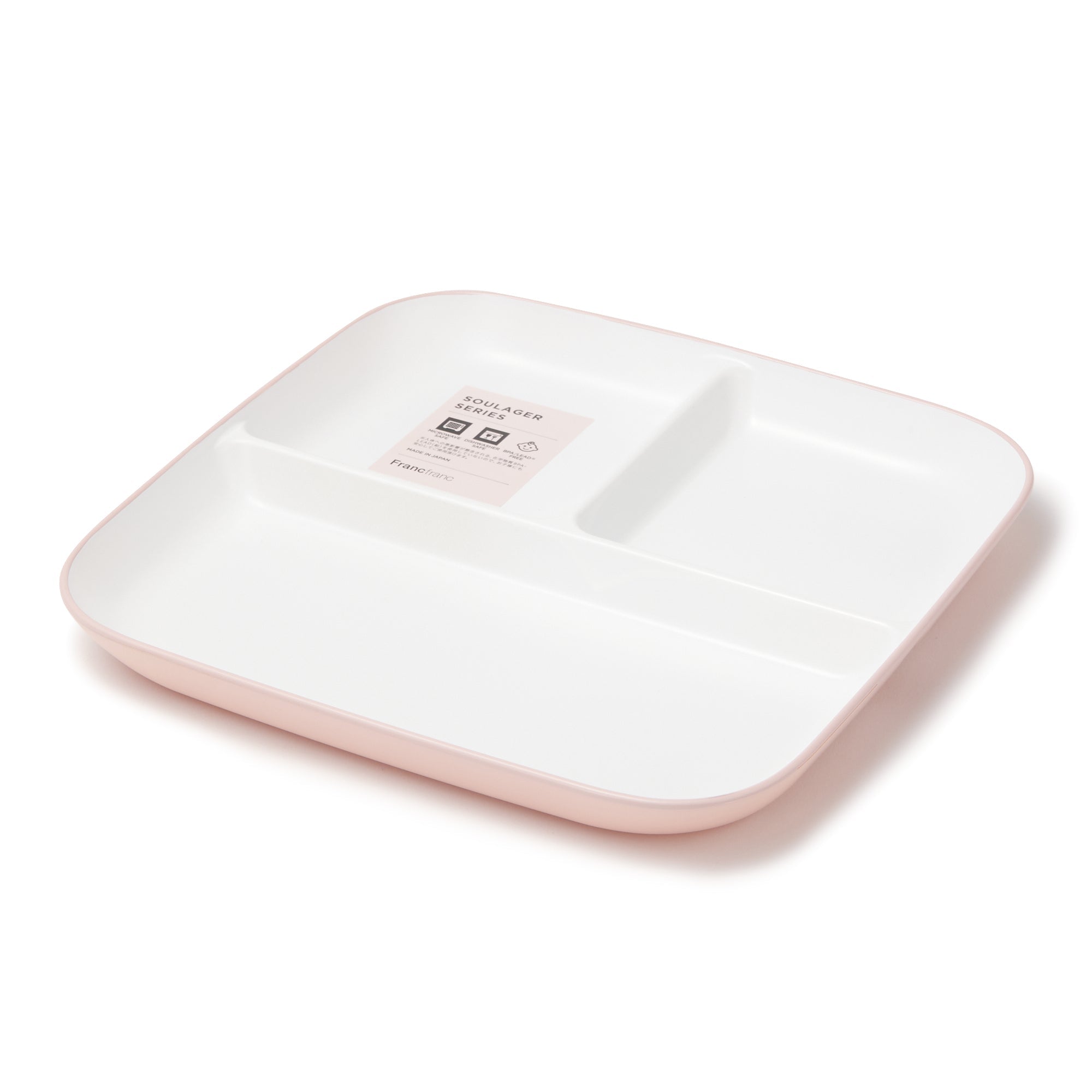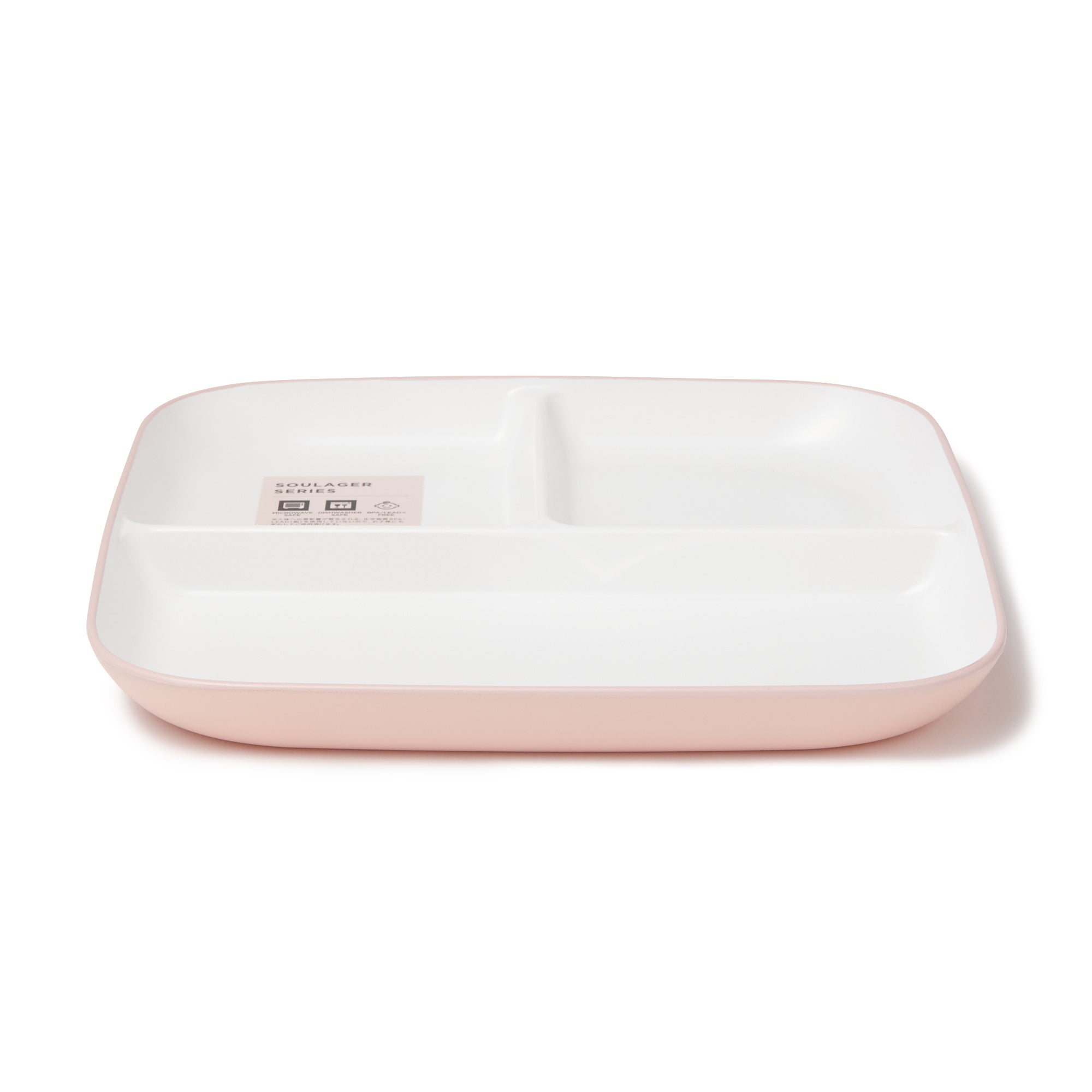 こだわりの安心品質、割れにくい樹脂製セパレートプレートです。電子レンジや食器洗浄機もお使いいただけるので、忙しくてもきちんとお料理したい方にぴったりです。手触りのよいマットで上品な質感。ピンク、グレー、ホワイトの3色展開でご家族で色分けしてお使いいただけます。