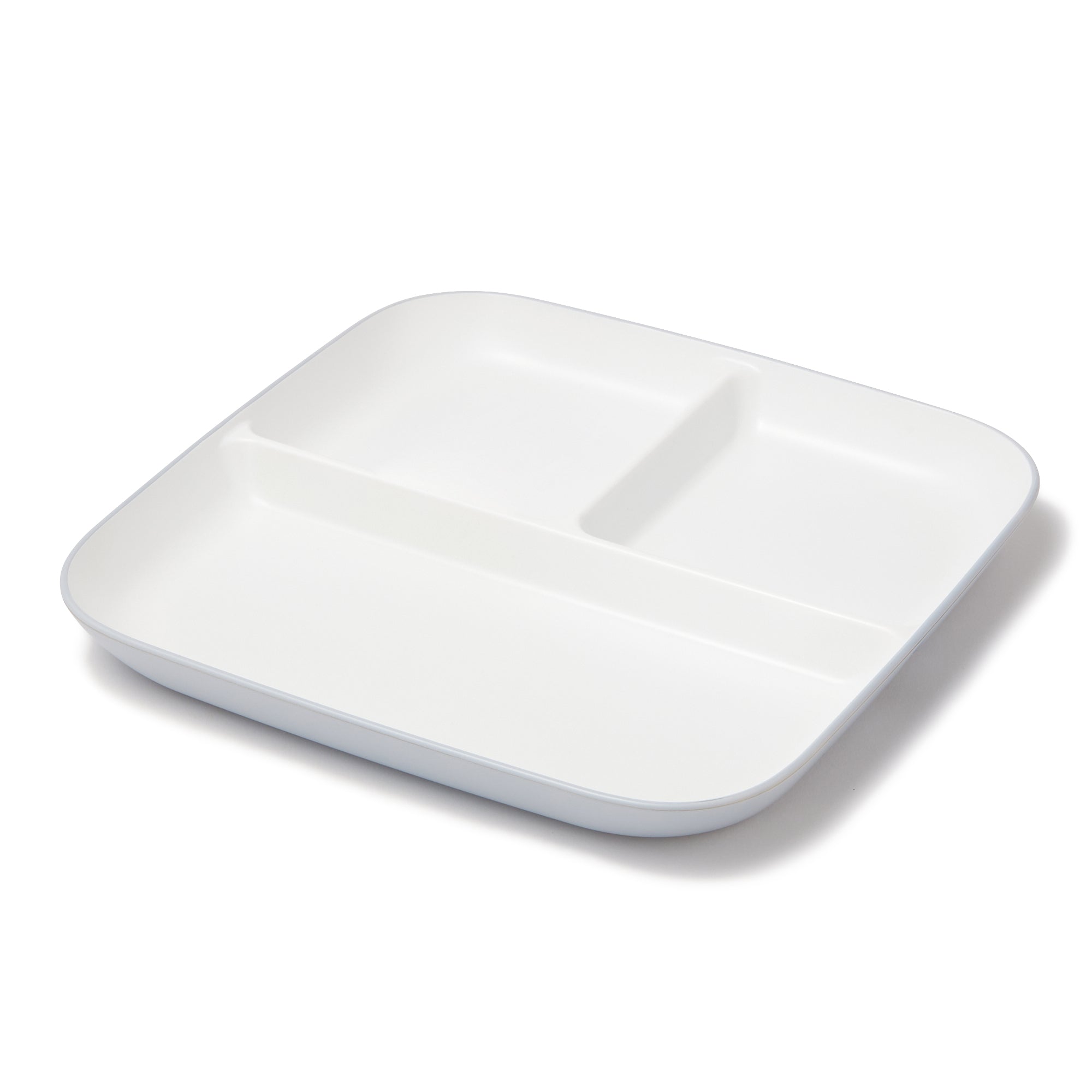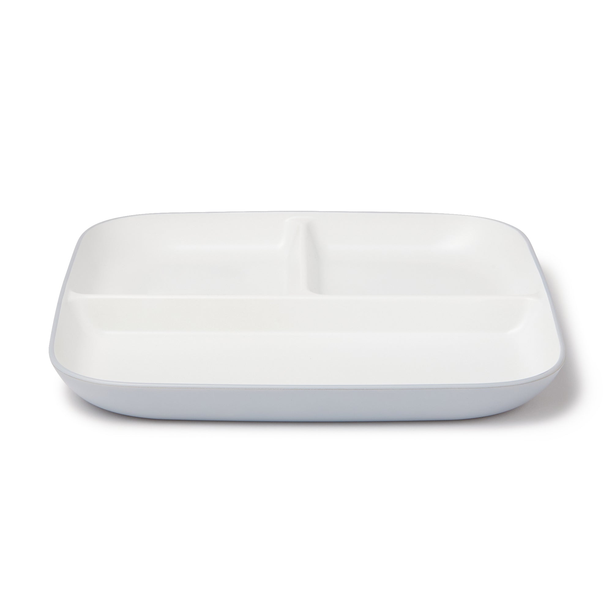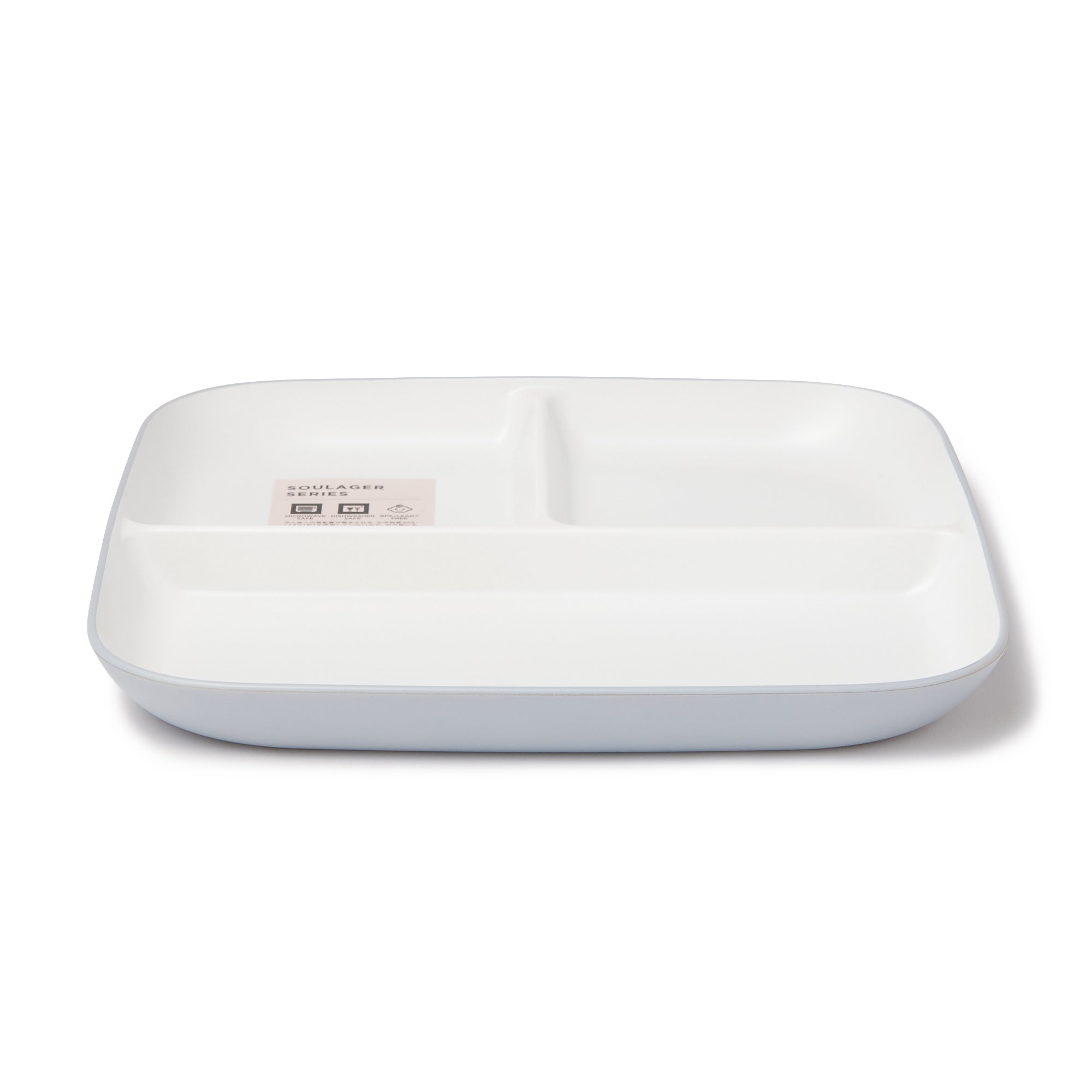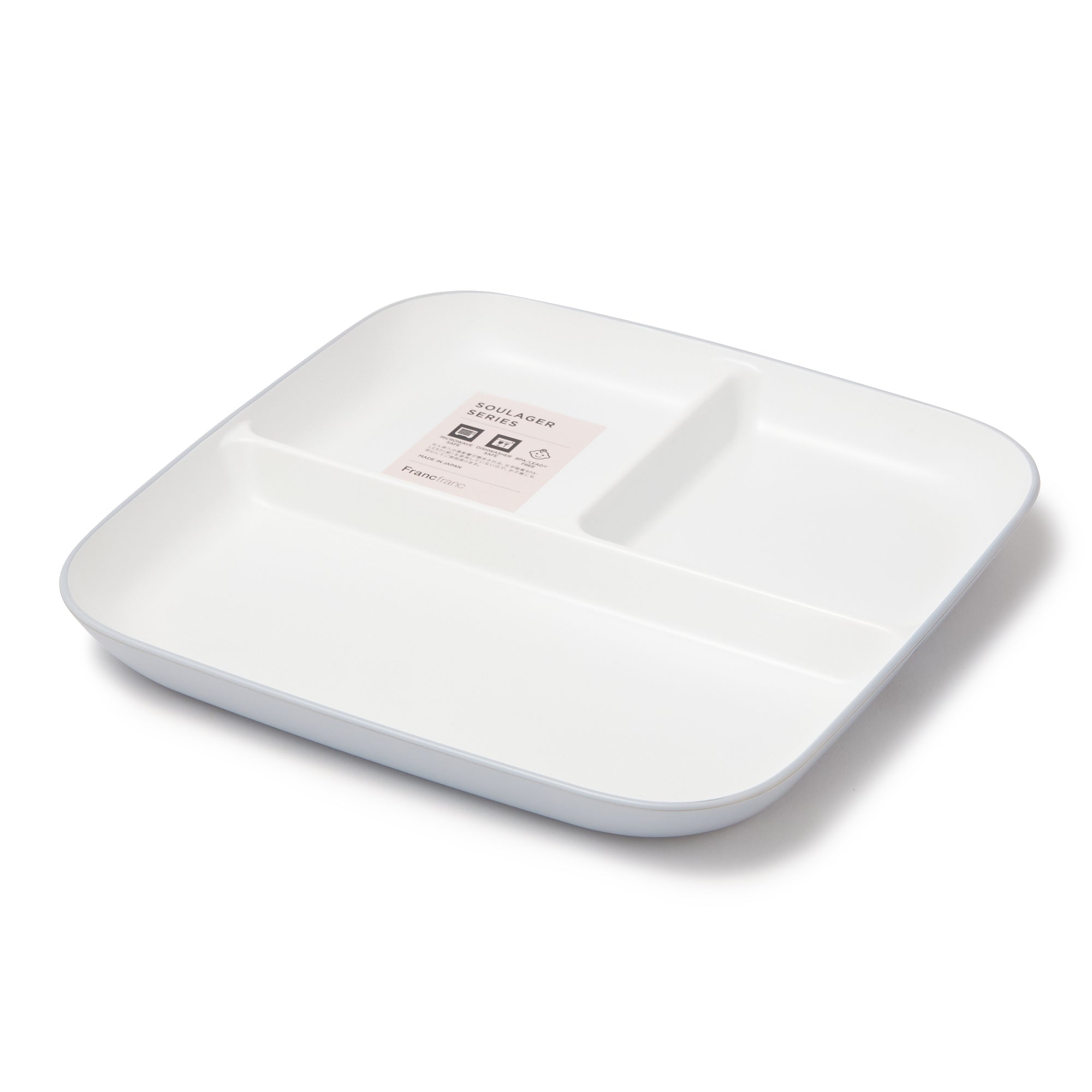 こだわりの安心品質、割れにくい樹脂製セパレートプレートです。電子レンジや食器洗浄機もお使いいただけるので、忙しくてもきちんとお料理したい方にぴったりです。手触りのよいマットで上品な質感。ピンク、グレー、ホワイトの3色展開でご家族で色分けしてお使いいただけます。