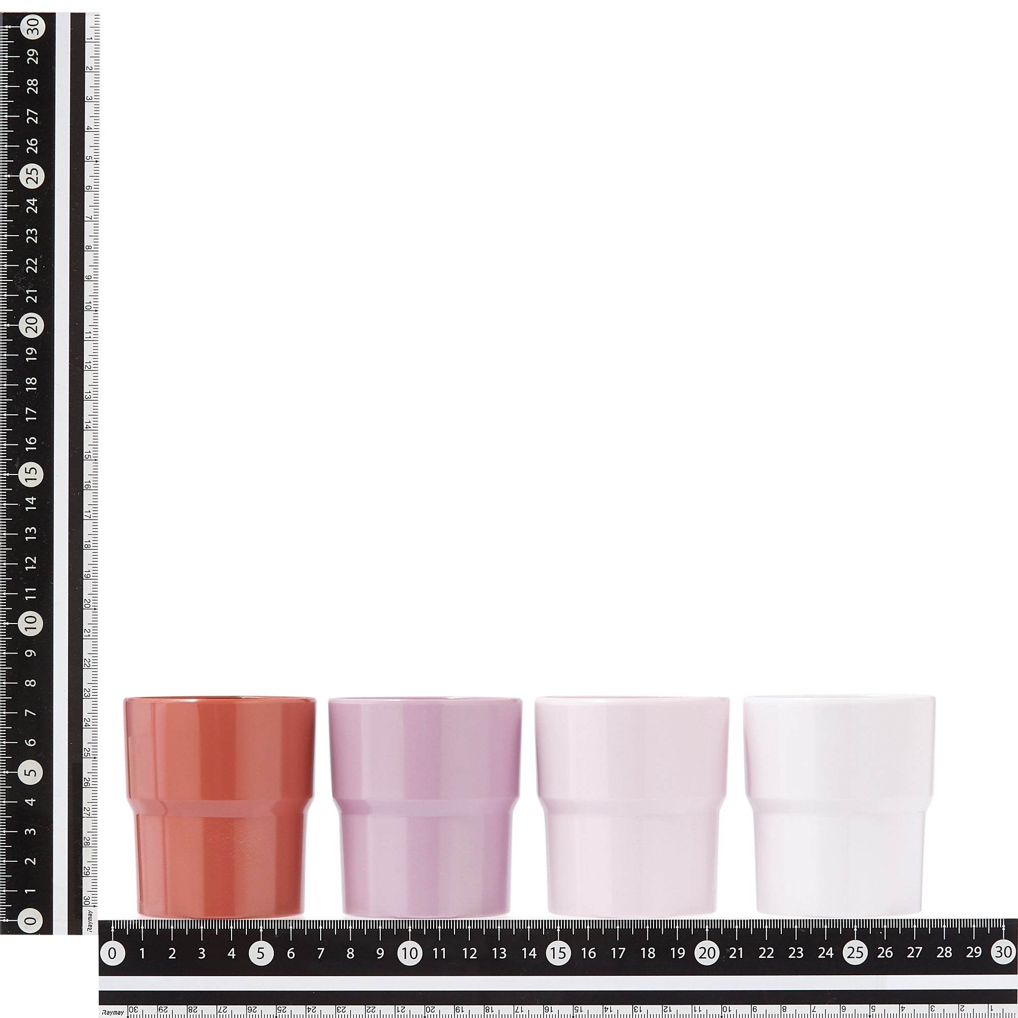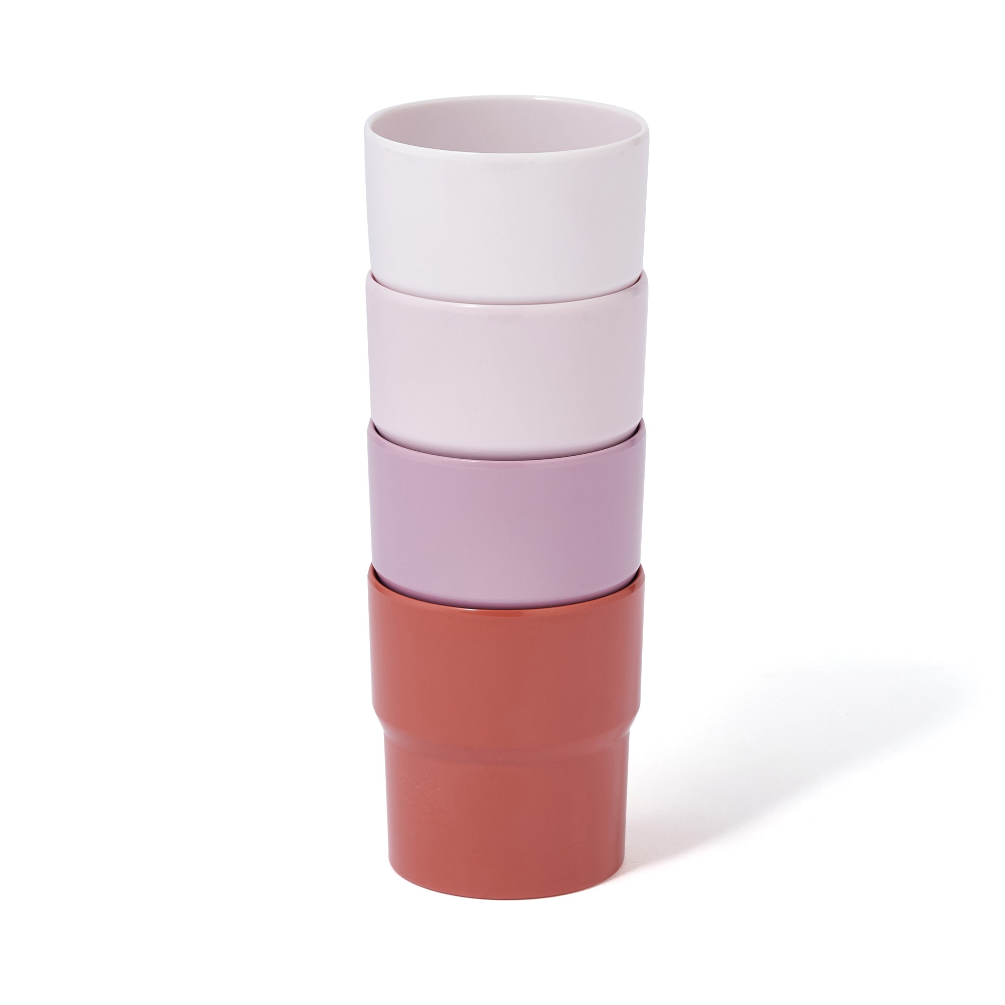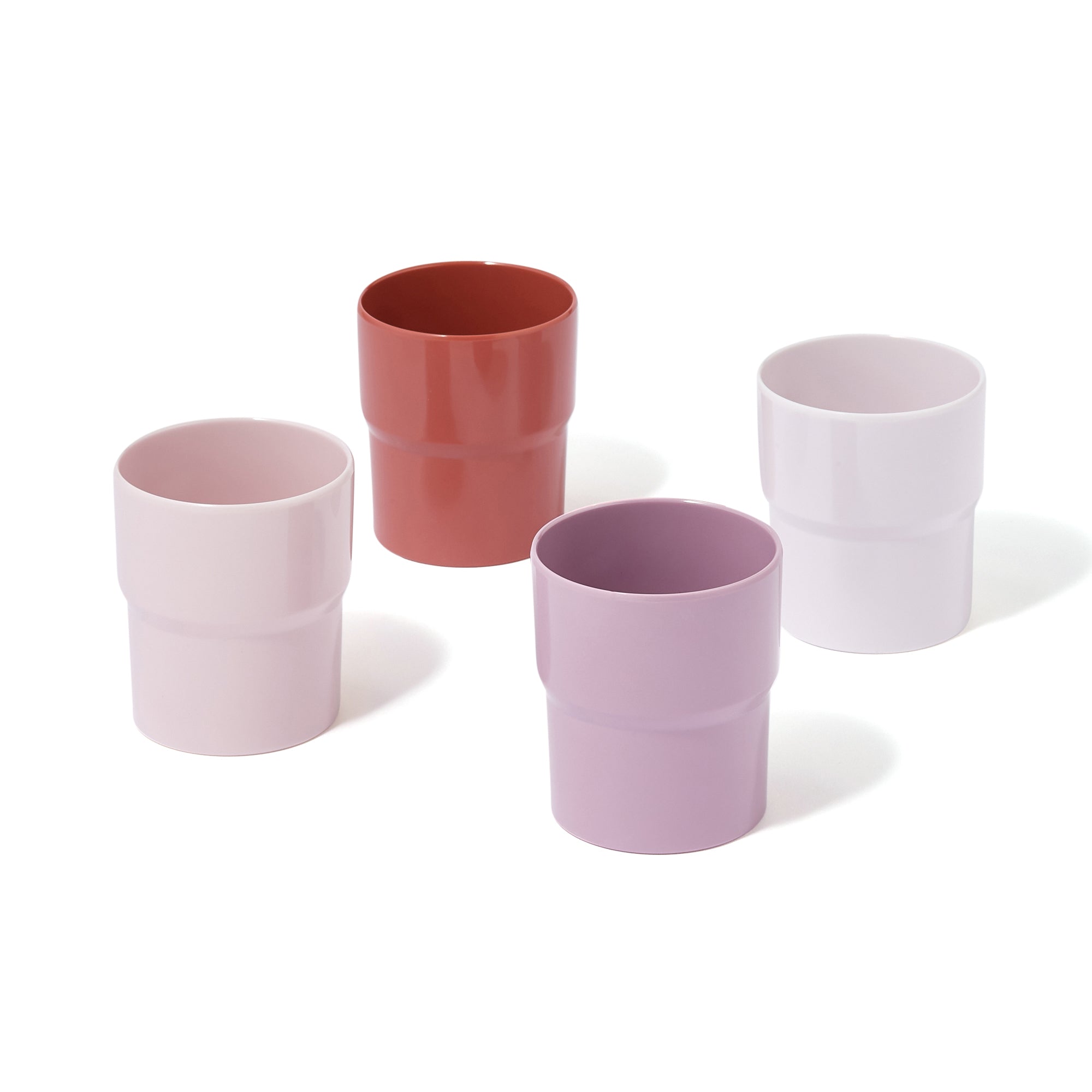 4色セットになったメラミン素材のタンブラーです。割れにくく軽いので運動会や外でのごはんなどの場面で活躍します。ご家族や友人と集まってのお食事では、色違いで使用できます。