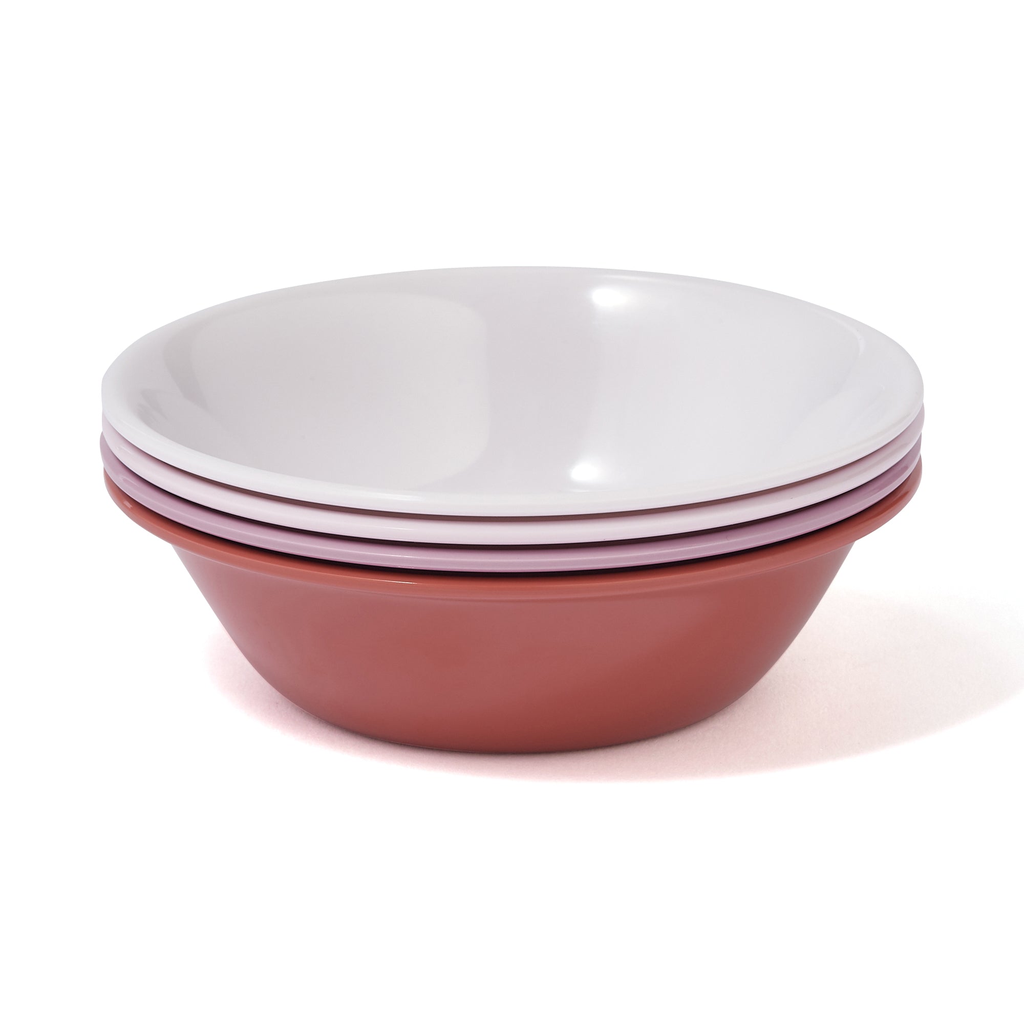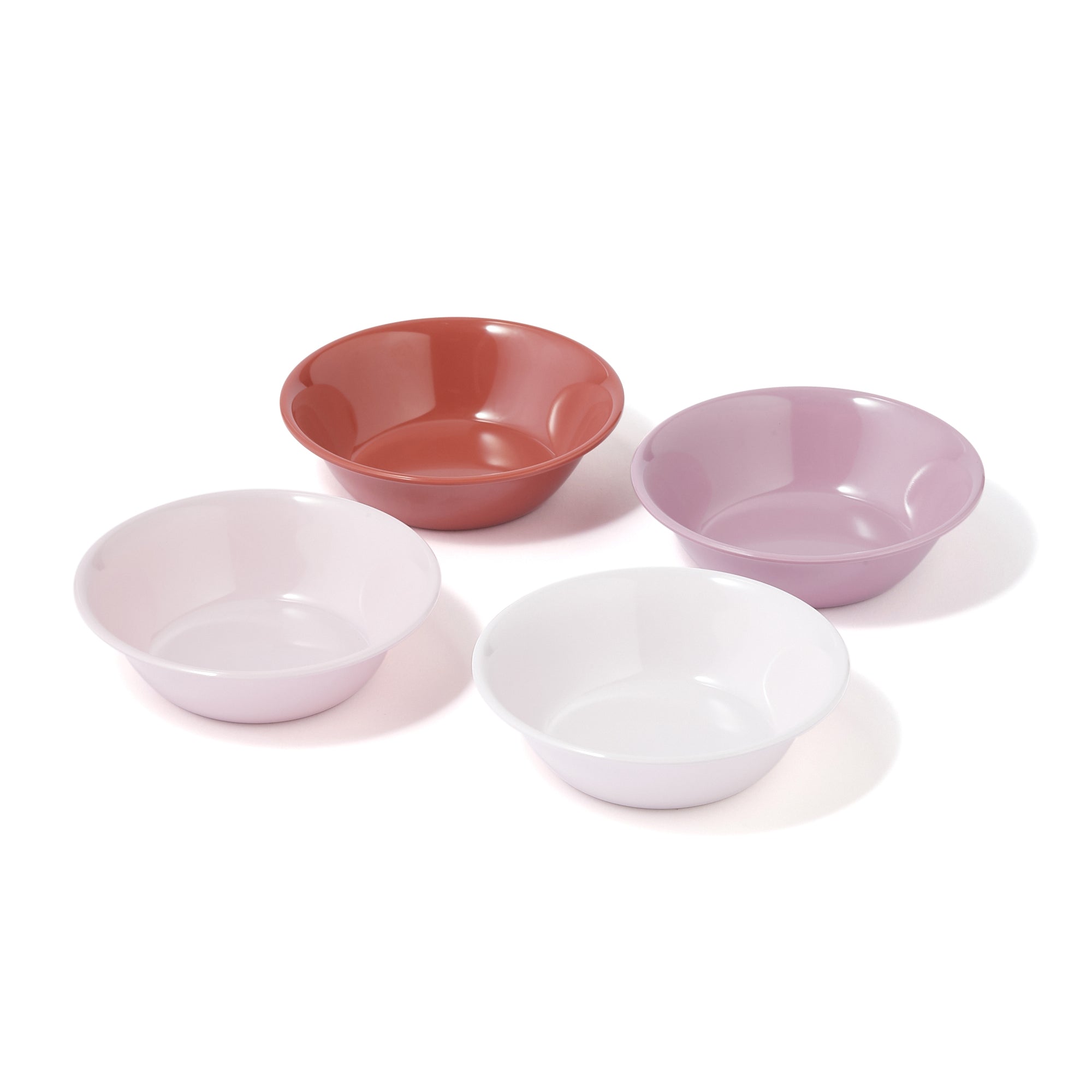 4色セットになったメラミン素材のボウルです。割れにくく軽いので運動会や外でのごはんなどの場面で活躍します。ご家族や友人と集まってのお食事では、色違いで使用できます。