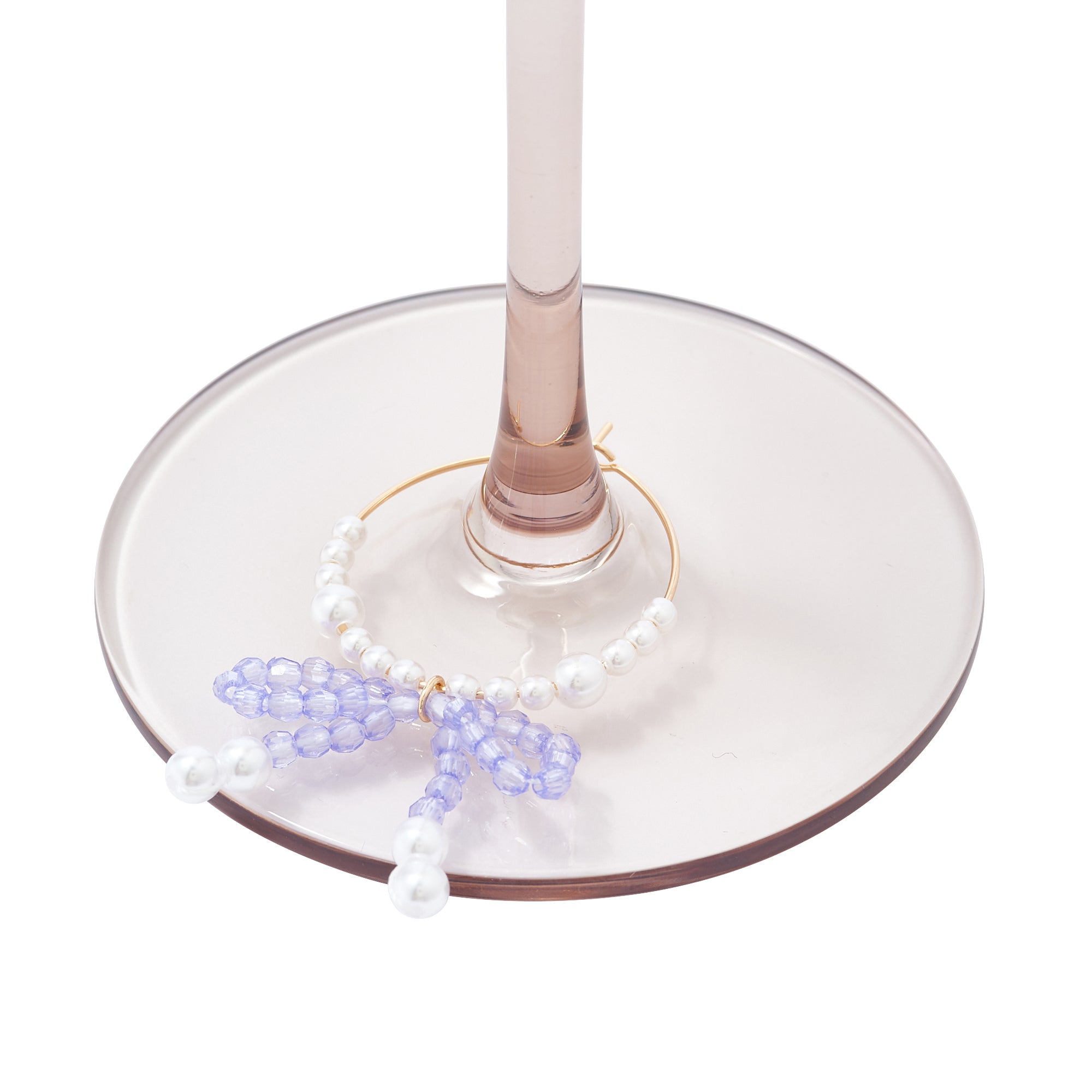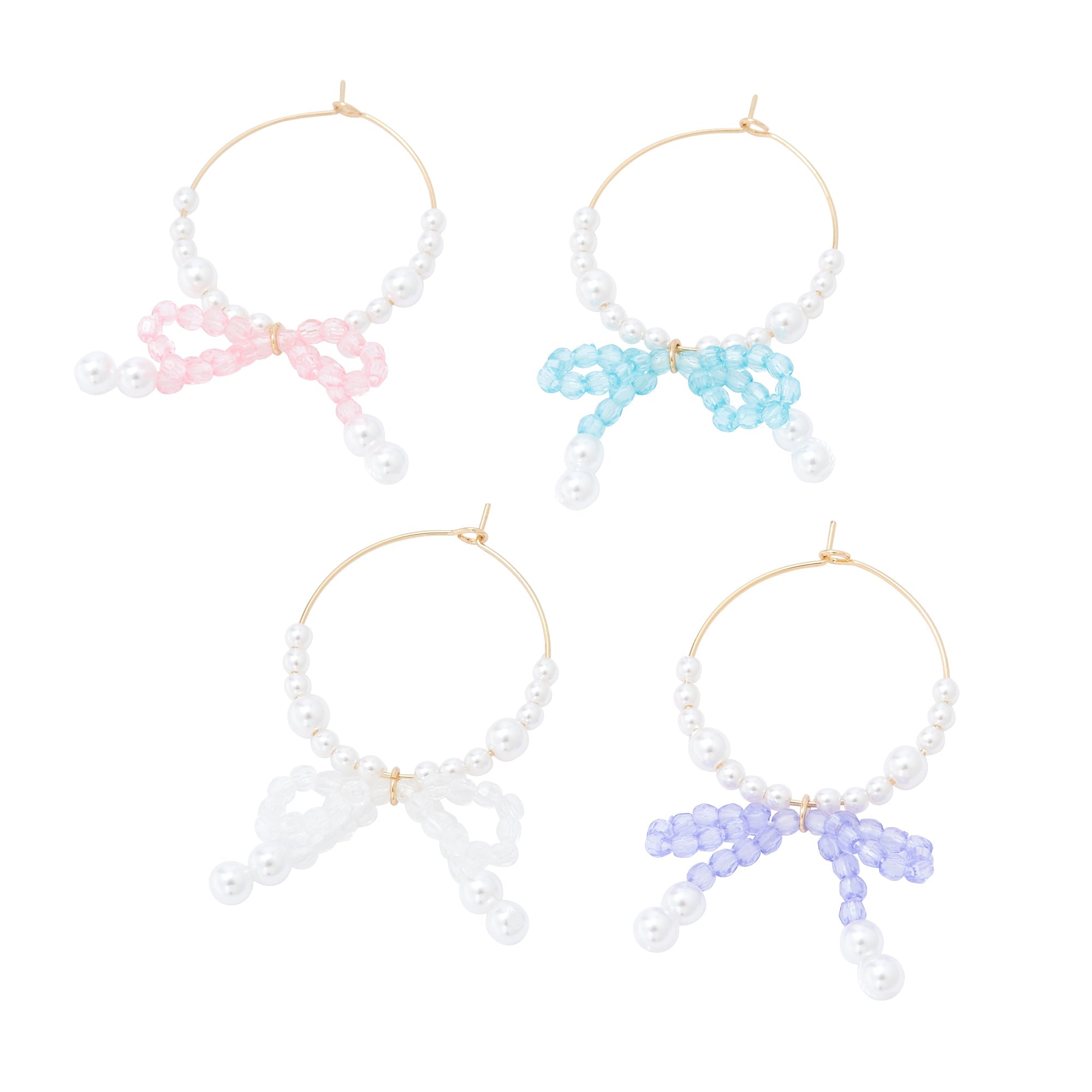 ビーズリボンが付いているグラスマーカー4個セットです。ピンク、ブルー、ホワイト、パープルの4色。ホームパーティーなどでグラスの目印としてご使用いただけます。カラフルなビーズチャームでテーブルを華やかに演出してくれます。