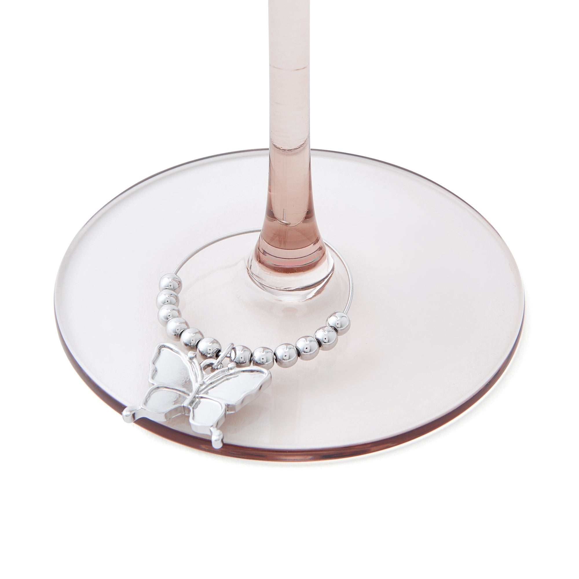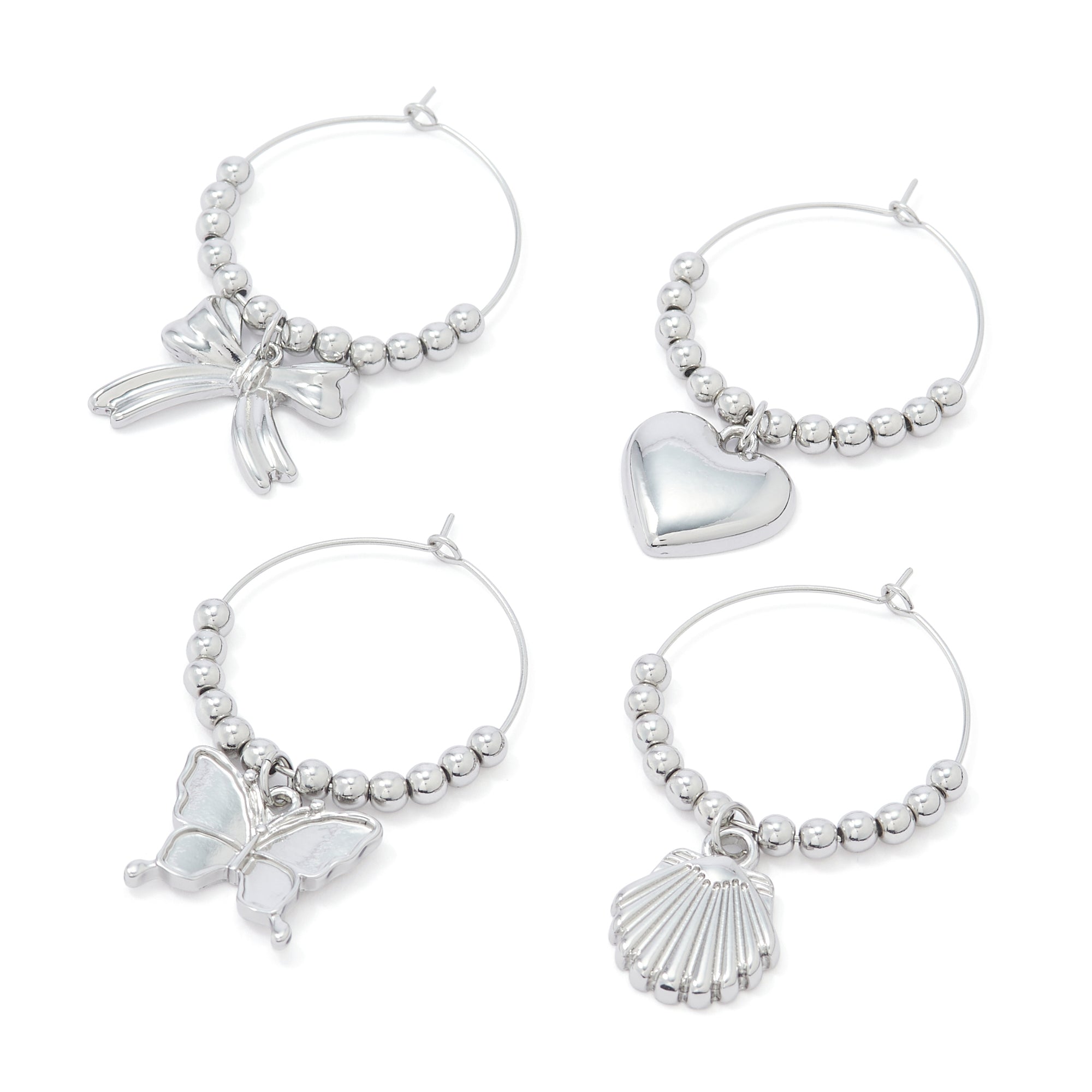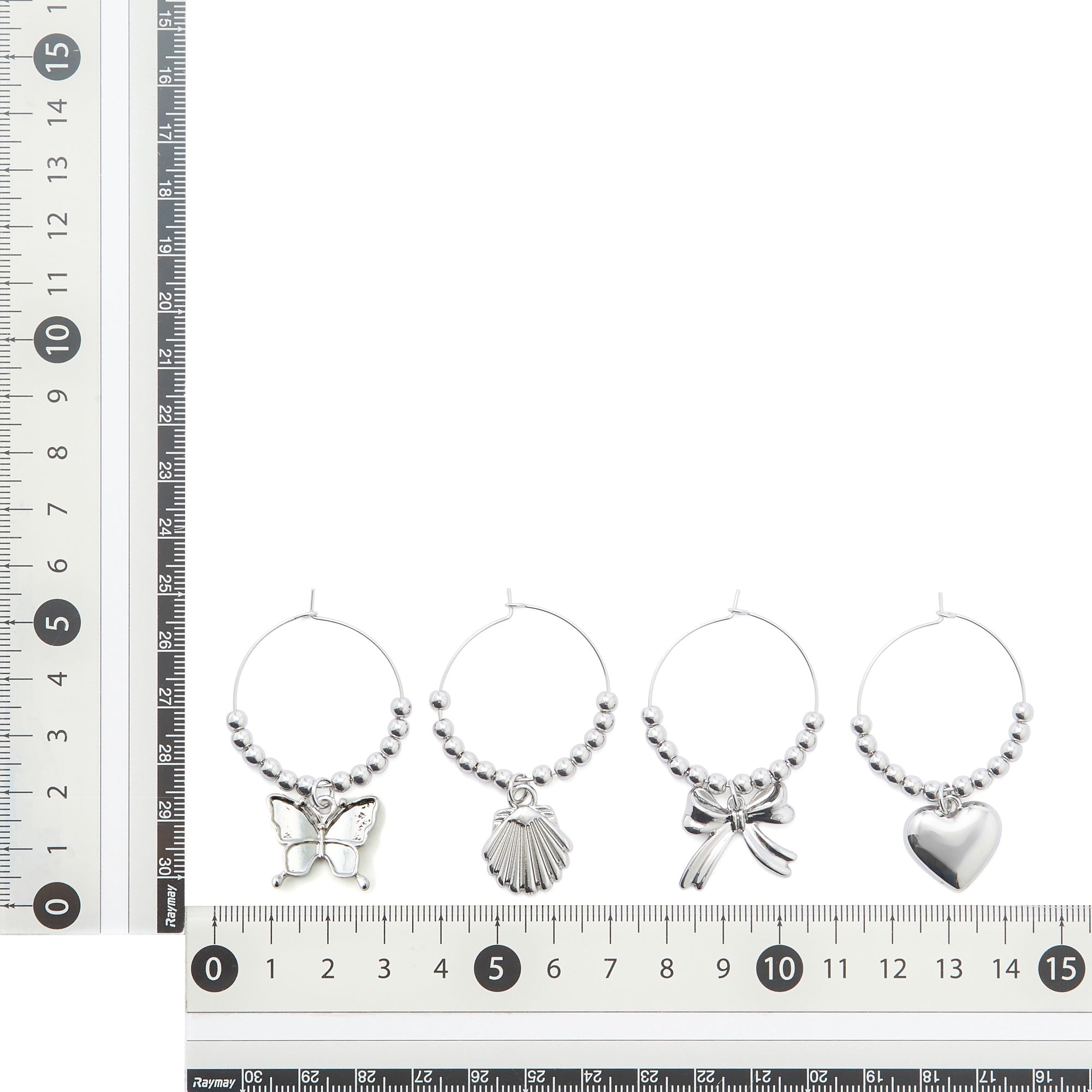 シルバーチャームが付いているグラスマーカー4個セットです。ホームパーティーなどでグラスの目印としてご使用いただけます。お洒落なチャームでテーブルを華やかに演出してくれます。