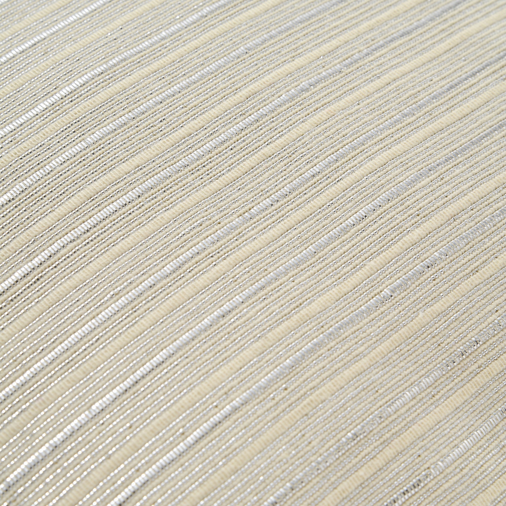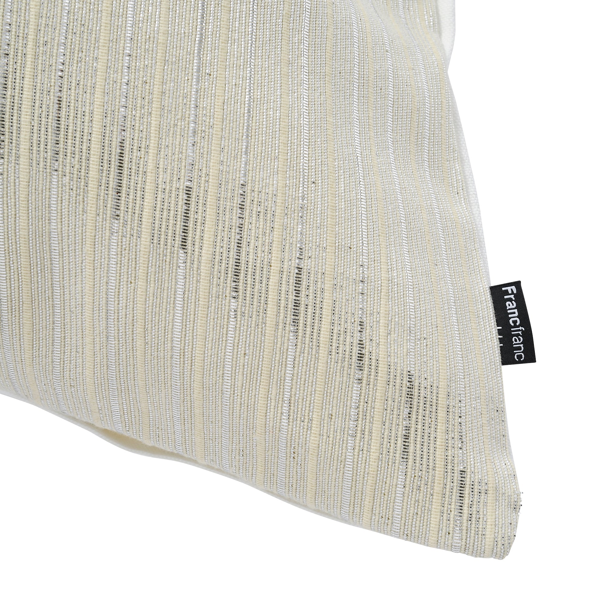 ラメ糸のきらきら感が楽しめるシンプルなクッションカバーです。ナチュラルなアイボリーの生地に、シルバーのラメ糸でストライプ柄をリズミカルに表現。華やかさのあるナチュラルテイストを演出してくれます。裏面は無地のアイボリーでシンプルにまとめました。控えめな存在感で柄物とも合わせやすく、ひとつあるとコーディネートのベースになってくれる頼れるアイテムです。▼クッションカバーの中材(別売り)はこちらクッションヌード一覧サイズW450×D450mm素材表側 コットン 90% ポリエステル 10%、裏側 コットン 100%カラーIV品番 1102010010327 全国一律550円(税込)です。雑貨の商品金額合計が5,000円(税込)以上の場合、送料無料で配送いたします。※手数料、ラッピング料、付帯サービス料は含みません。※新生活期・年末年始は出荷や配送の繁忙期となるため、日時指定をいただいてもご希望日時通りお届け出来ないことがございます。●ドライクリーニング:不可●手洗い:可■タンブル乾燥:不可■アイロン:可(中温)■製品の特性上、サイズや色柄などに多少のばらつきがあります。■素材の特性上、直射日光やライトに長時間照らされると、変色する場合があります。■色落ちしたり、他に色移りすることがあります。特に濡れた状態での摩擦にご注意ください。■濡れた状態で長時間放置しないでください。■摩擦や洗濯により毛羽立ち・毛玉が発生することがあります。■スリット糸(ラメ糸)は特性上切れやすい素材です。また、非常にデリケートなため、引き出されやすくなっております。一度引き出されると直せません。予めご了承ください。■水洗いにより縮みます。■お手入れの際は洗濯機の手洗いコースではなく手洗いをお願いいたします。■タンブル乾燥は避け、形を整えて陰干しをしてください。■アイロンの際はあて布を使用してください。