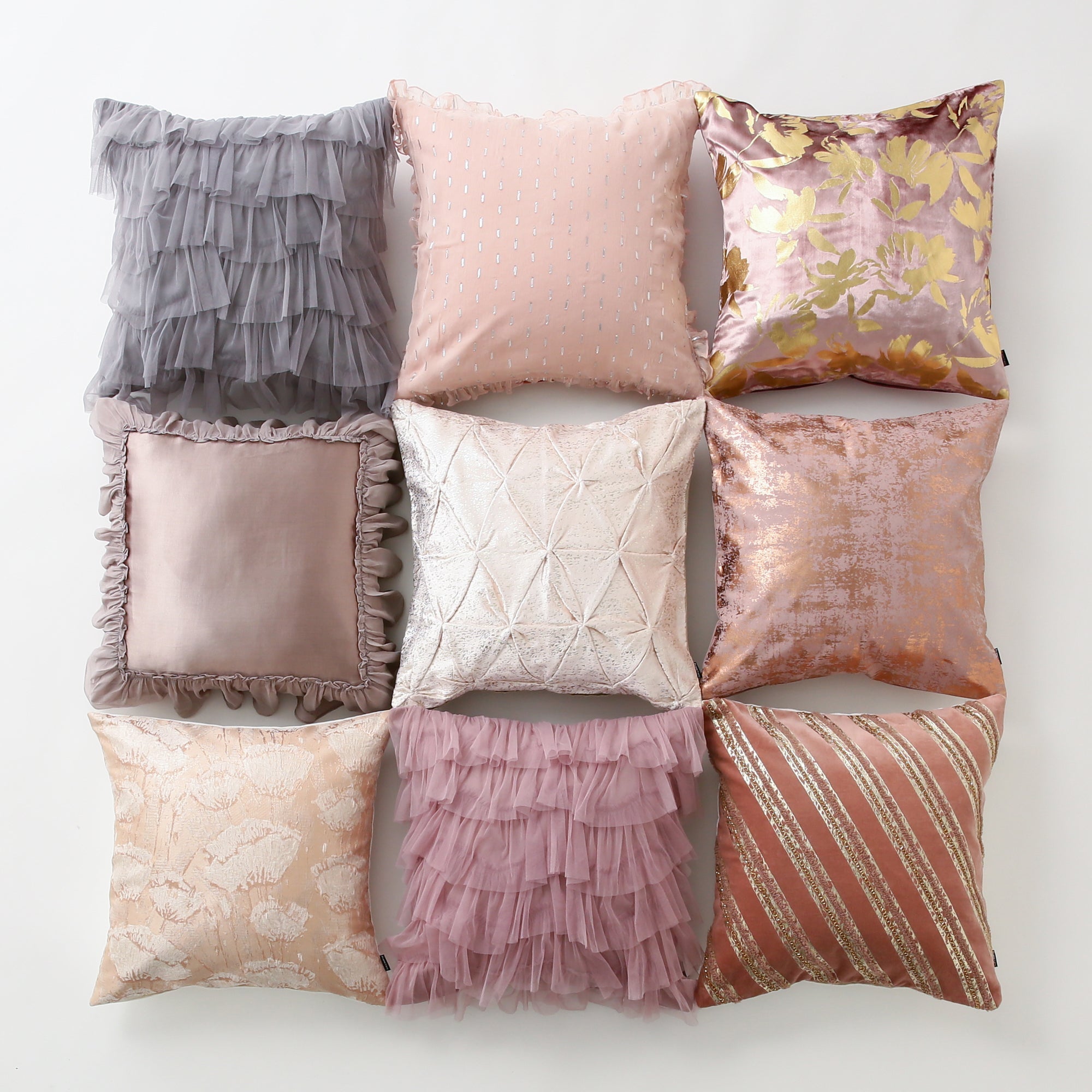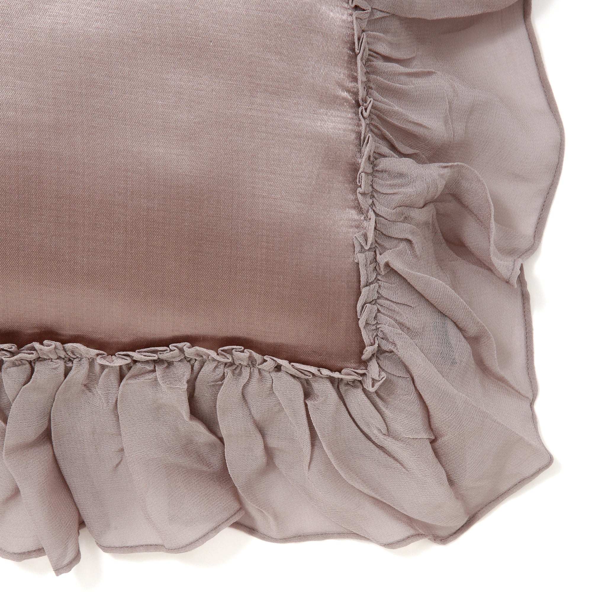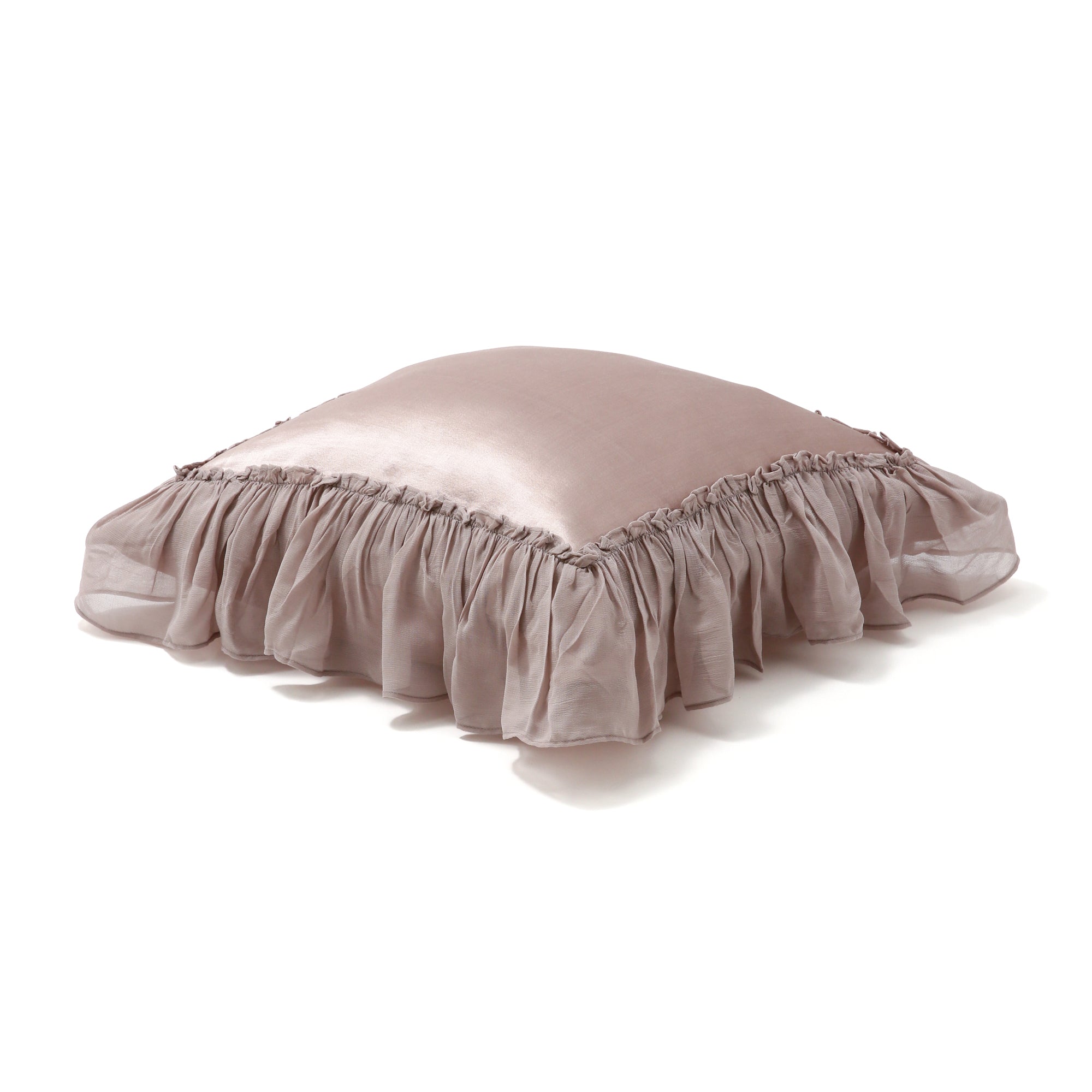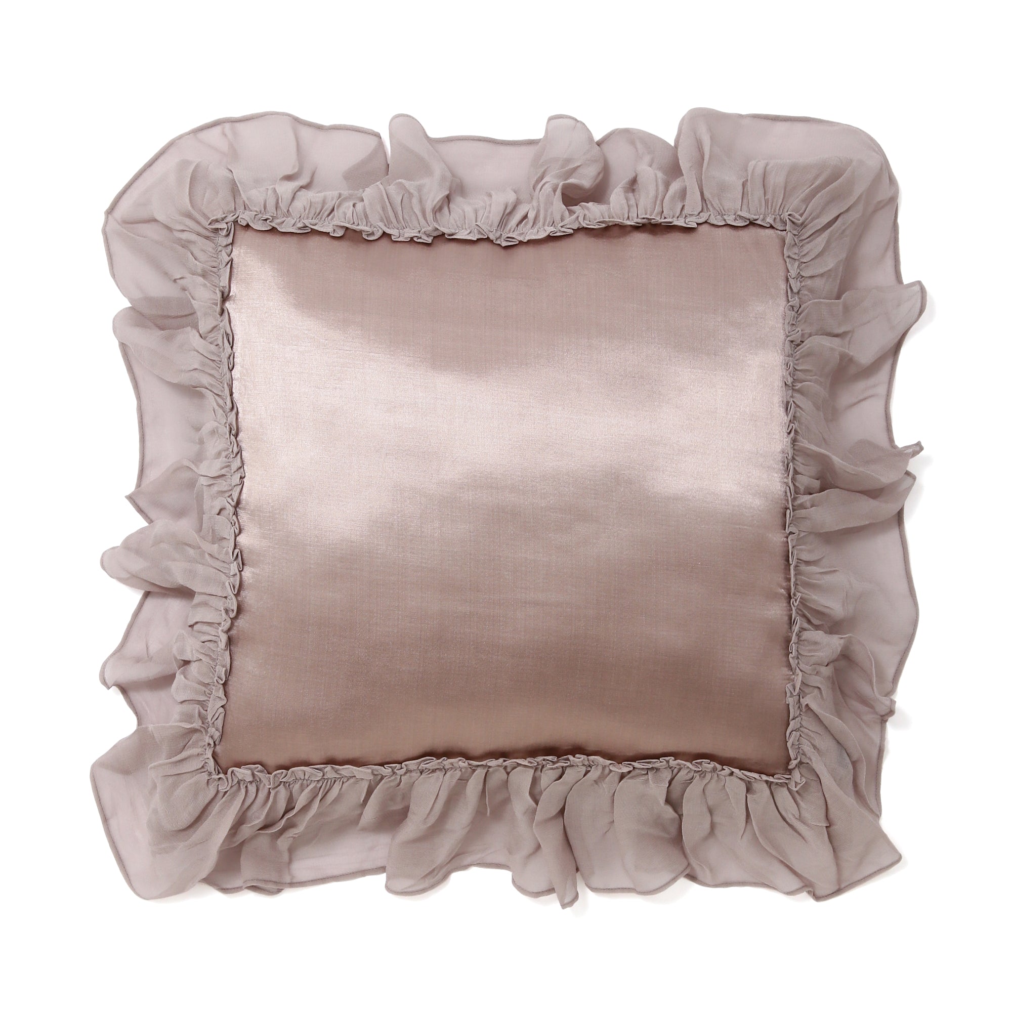 ふわふわのシフォンフリルがとびきり華やかなクッションカバーです。はかなげに揺れるフリルでつややかなサテンクッションをぐるりと彩りました。とびきりガーリーなコーディネートを楽しむのはもちろん、大人っぽくエレガントにまとめるのもおすすめ。目に映るたびに心ときめく、とっておきのアイテムです。