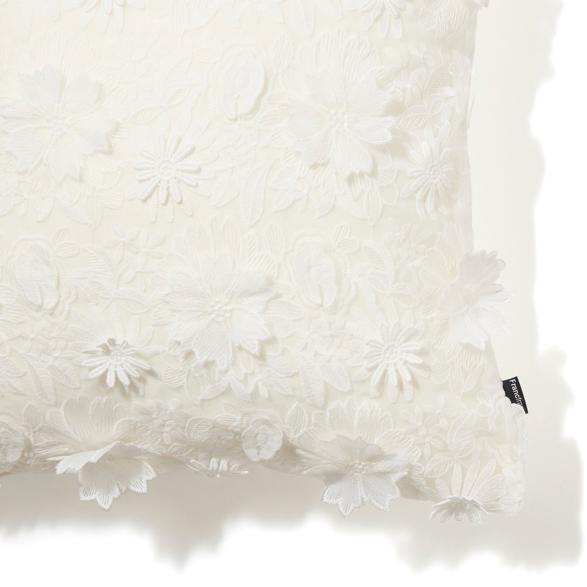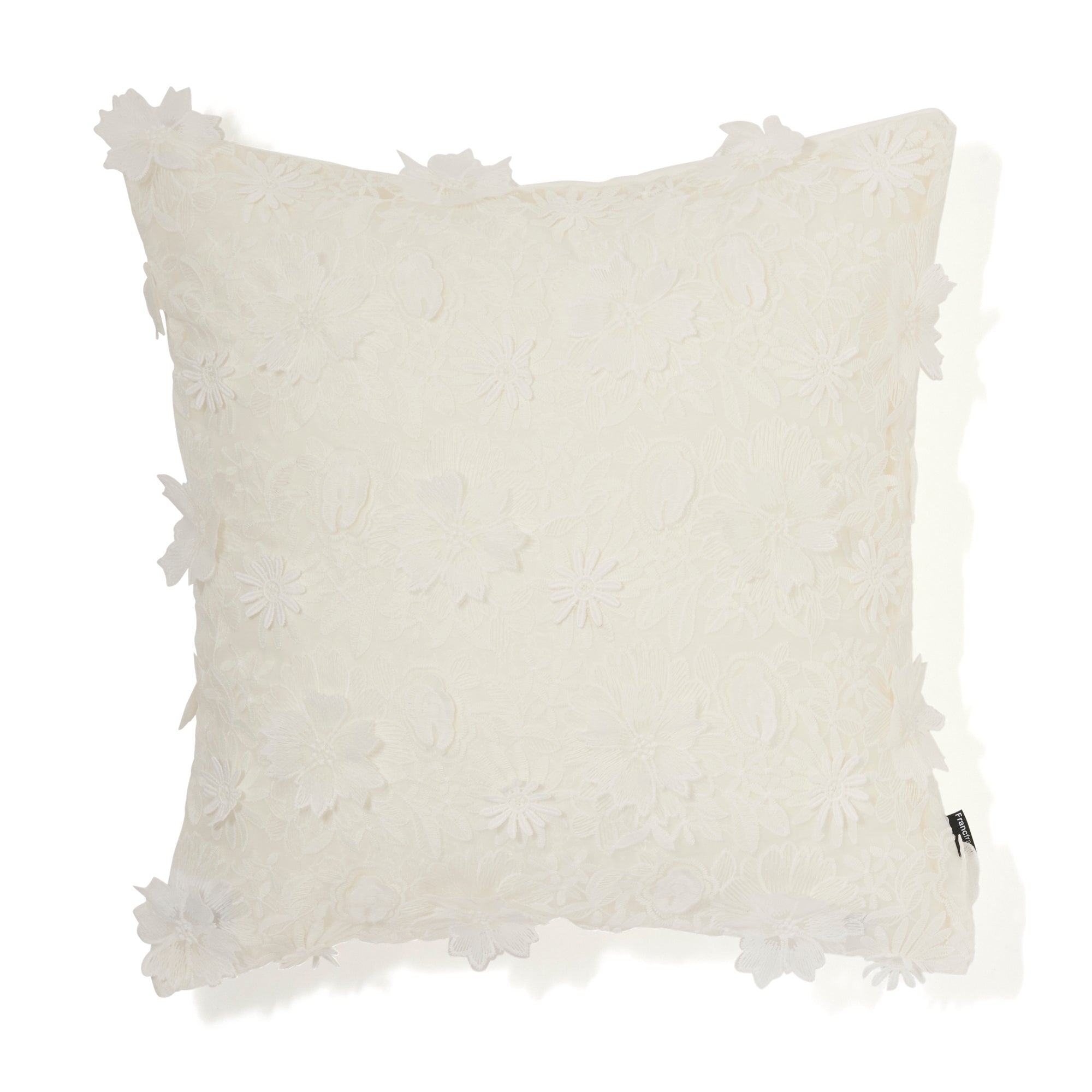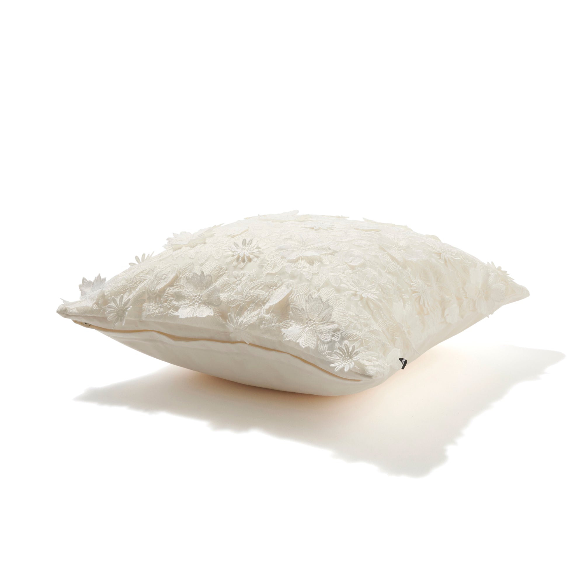 立体的な花柄レースが華やかなデザインのクッションカバーです。主張し過ぎないレースのため、プチゴージャス感をさりげなく演出できます。