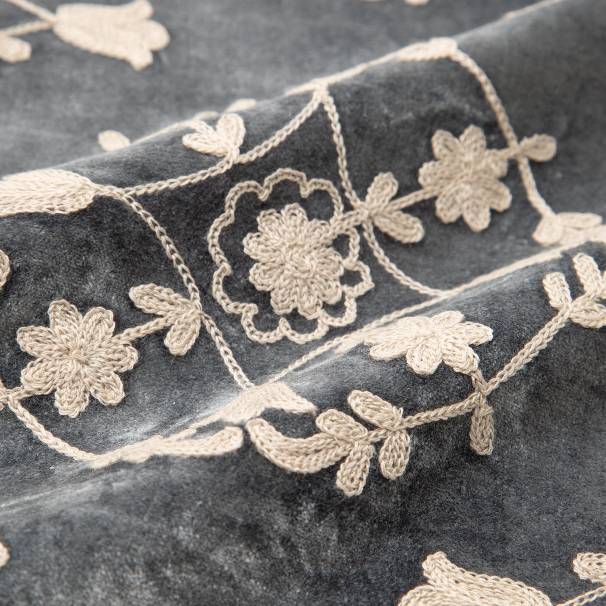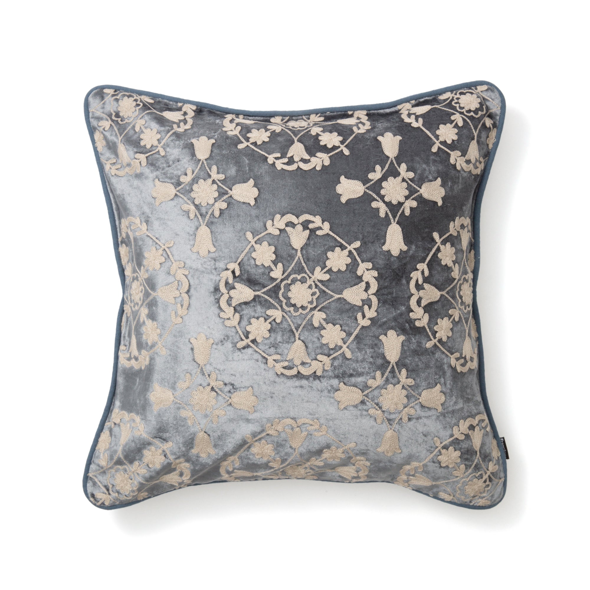刺繍を施したオーナメント柄のクッションカバーです。大人のデザインで落ち着いたお部屋を演出できます。