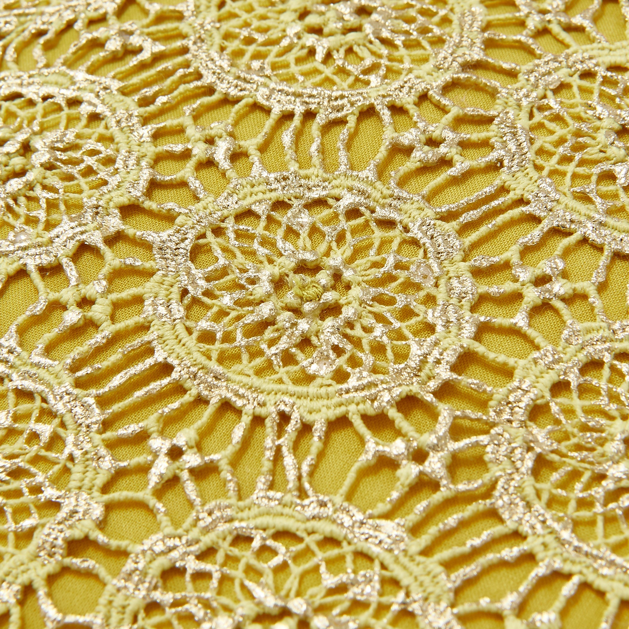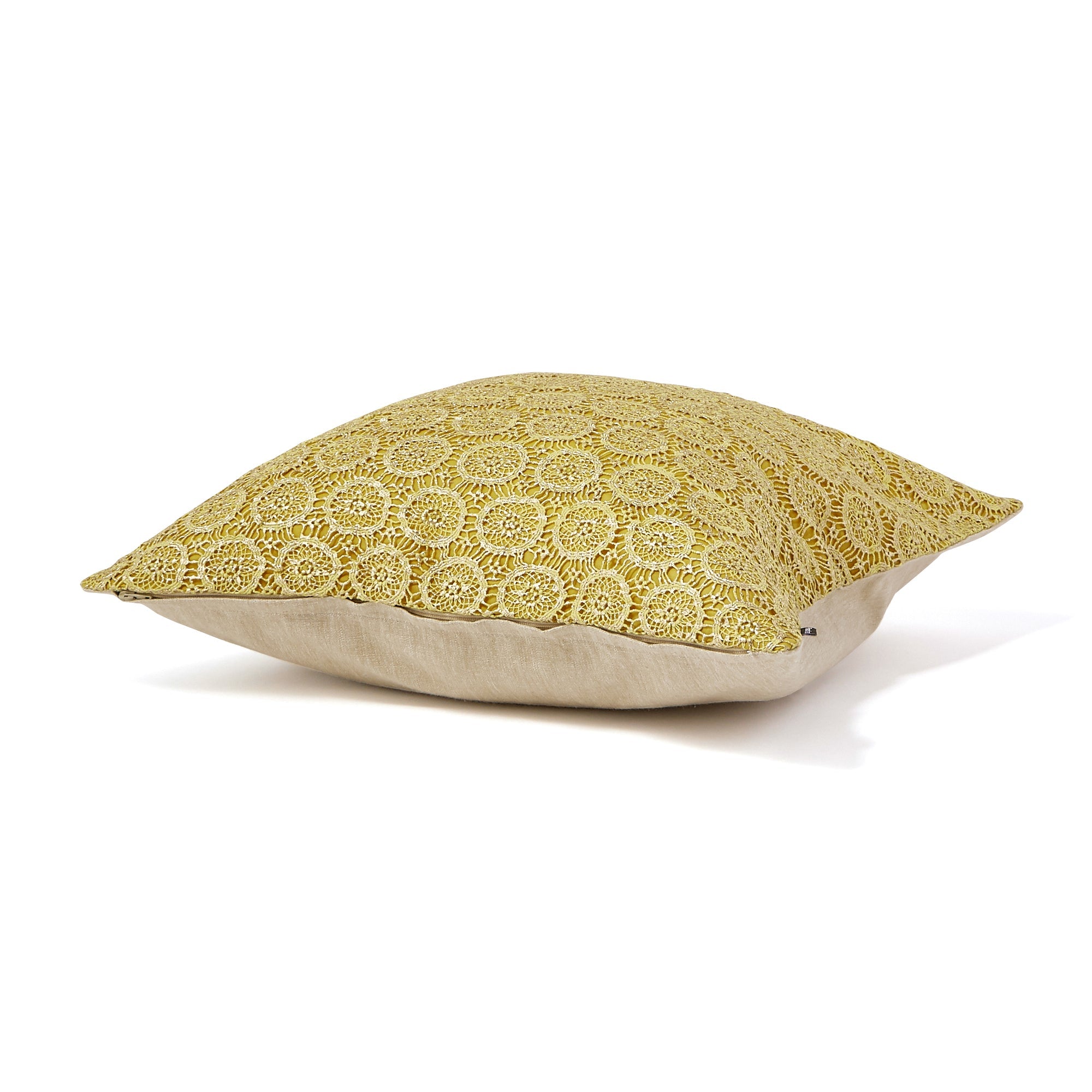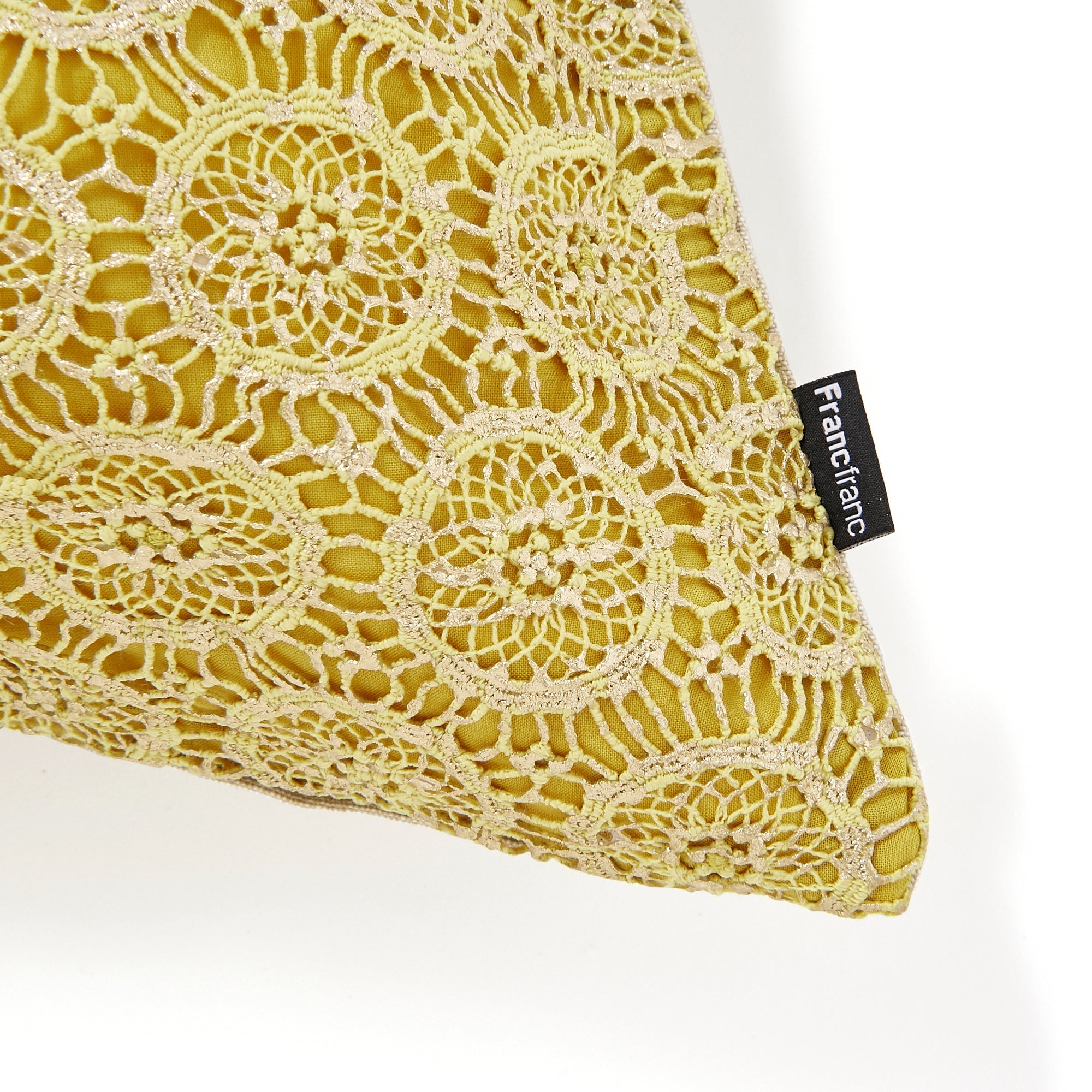 エンブロイダリーレース生地にメタリックプリントを施した、華やかなデザインのクッションカバーです。▼クッションカバーの中材(別売り)はこちらクッションヌード一覧▼他のクッションカバーはこちらクッションカバー一覧サイズW450×D450mm素材表側 レース ポリエステル 100%、ライニング コットン 100%、裏側 コットン 100%カラーYE品番 1102010029374 全国一律550円(税込)です。雑貨の商品金額合計が5,000円(税込)以上の場合、送料無料で配送いたします。※手数料、ラッピング料、付帯サービス料は含みません。※新生活期・年末年始は出荷や配送の繁忙期となるため、日時指定をいただいてもご希望日時通りお届け出来ないことがございます。●洗濯:不可●ドライクリーニング:不可■タンブル乾燥:不可■アイロン:不可■製品の特性上、サイズや柄・箔プリント部の濃度や色・風合いなどに多少のばらつきがあります。■素材の特性上、直射日光やライトに長時間照らされると、変色する場合があります。■色落ちしたり、他に色移りすることがあります。特に濡れた状態での摩擦にご注意ください。■白や淡色製品との組み合わせての使用はお避けください。■摩擦により毛羽立ち・毛羽抜け・毛玉や箔プリントの剥がれが発生します。■ソファや床の種類によっては箔プリントが貼り付いたり剥がれることがあります。定期的に点検し長期間密着したままにしないでください。■レースは繊細な生地のため、引っ掛けたりしないようご注意ください。■装着の際は強く引っ張ったりしないよう十分ご注意ください。■外観が変化する場合がありますので、水洗い・ドライクリーニングはできません。■汚れた場合は固く絞った布等で軽く拭き取ってください。