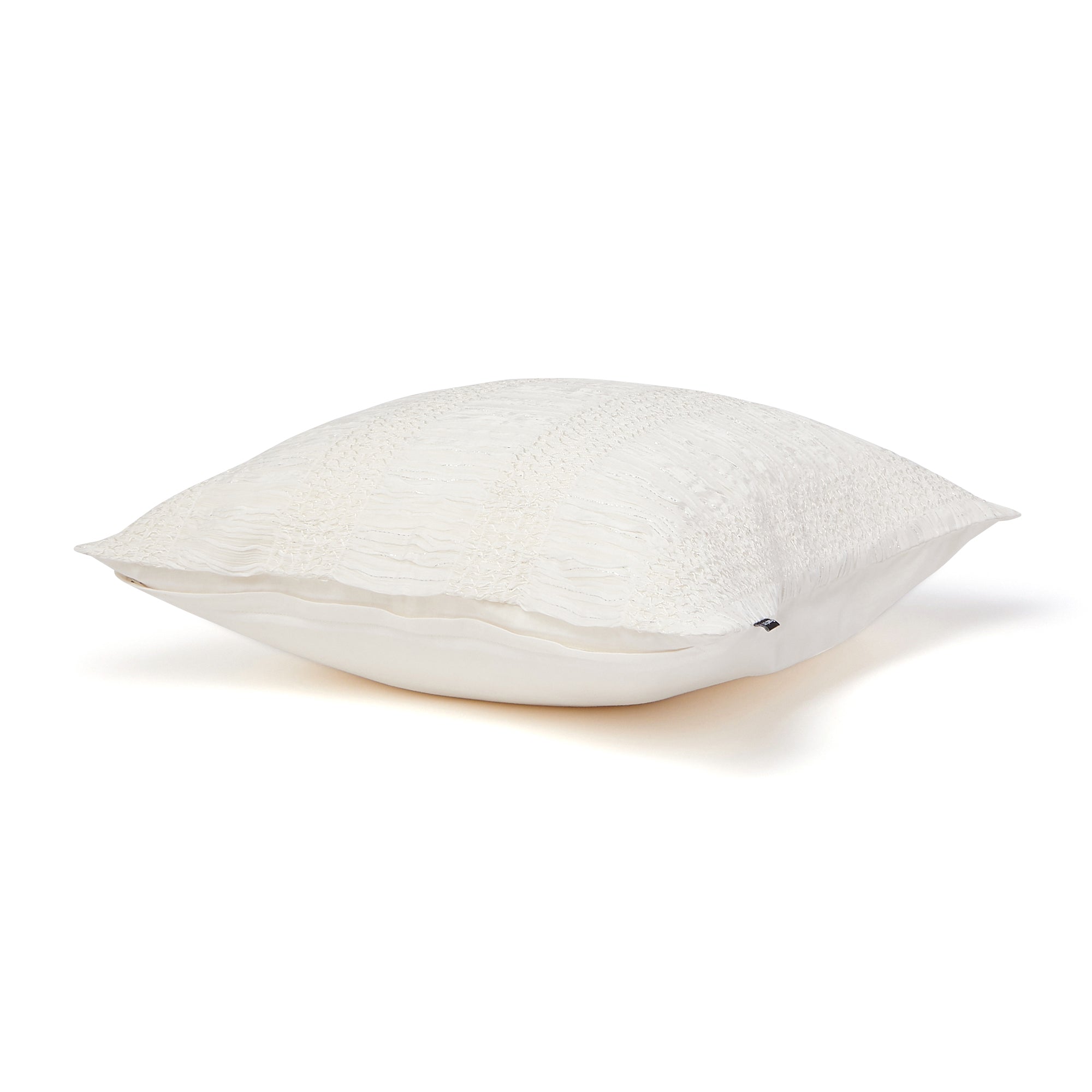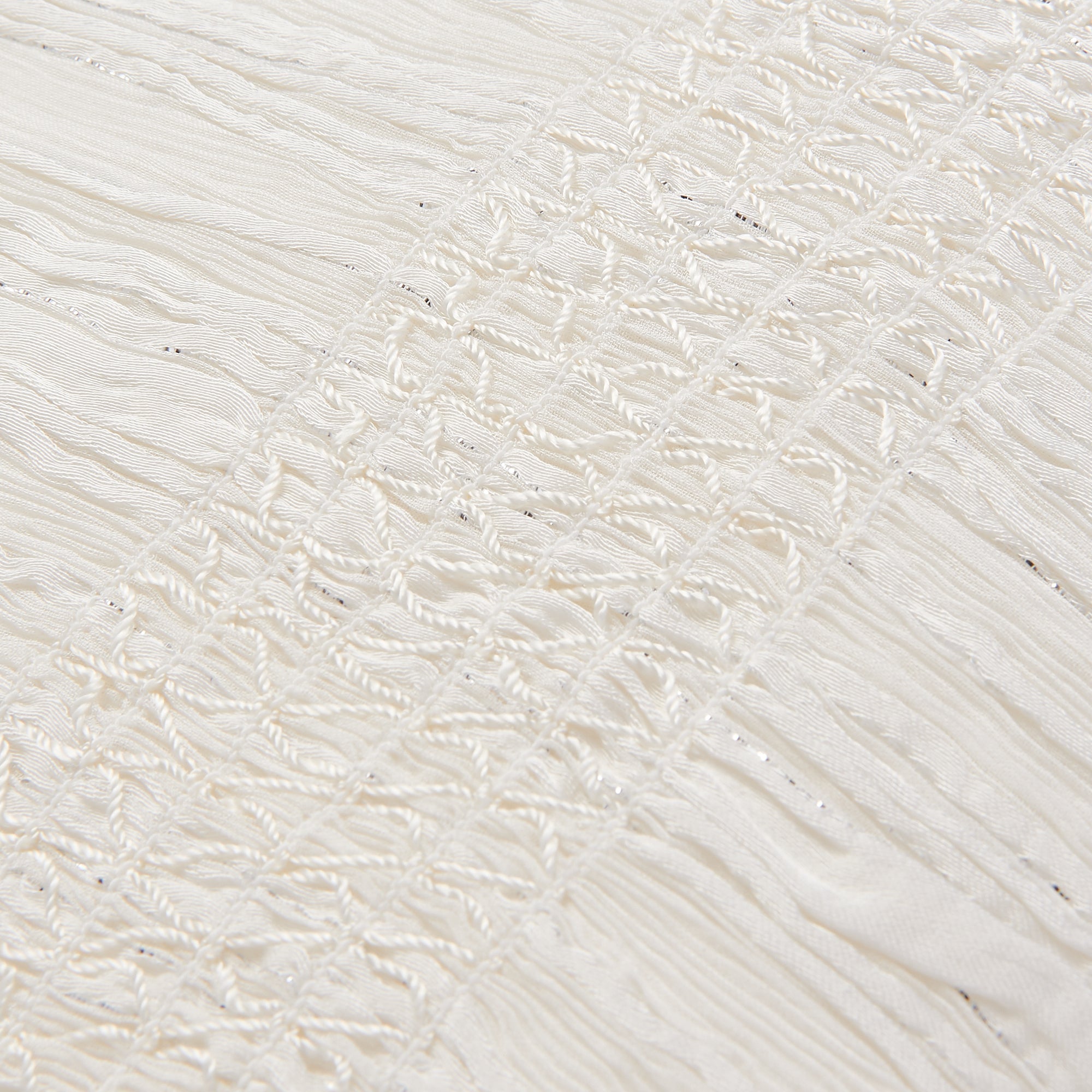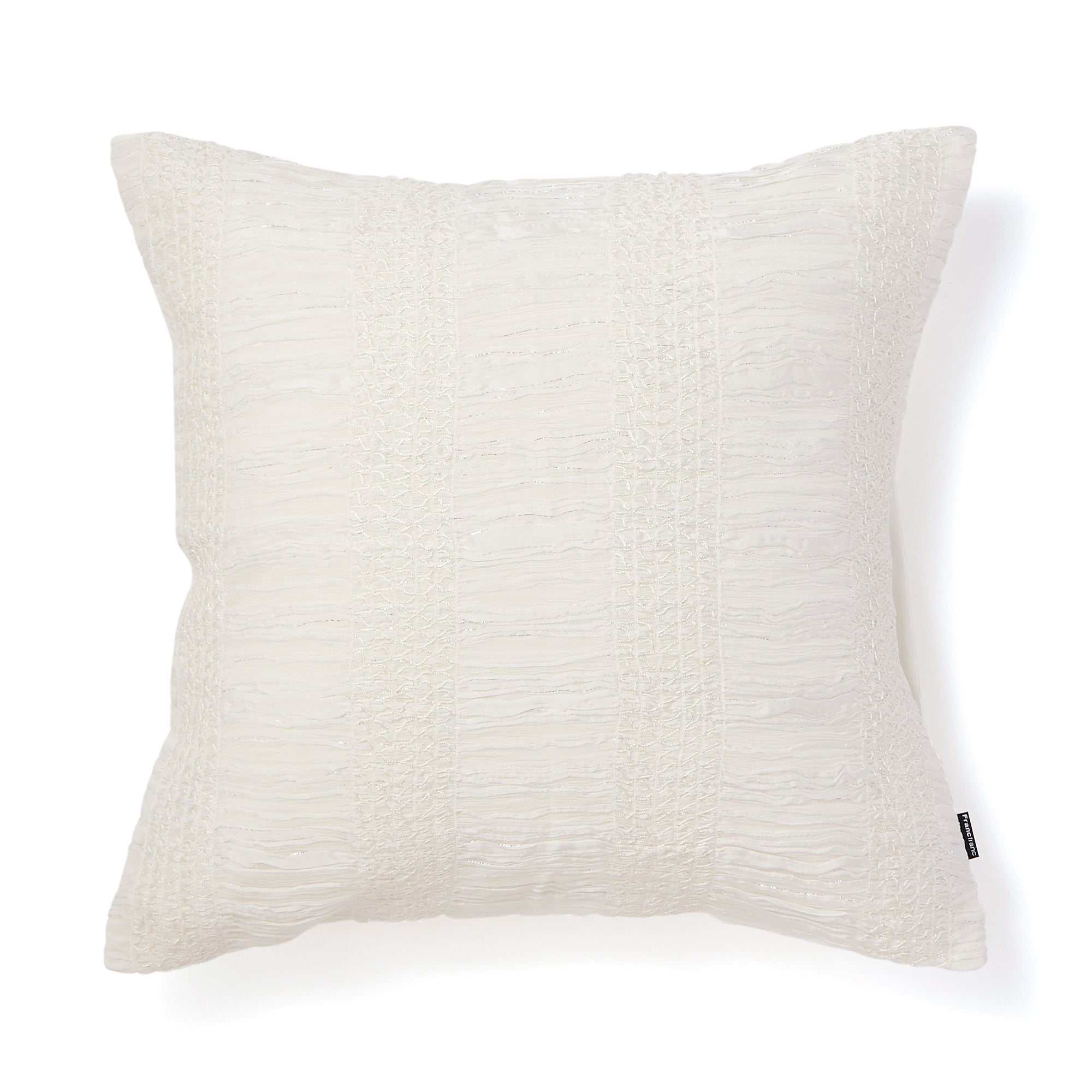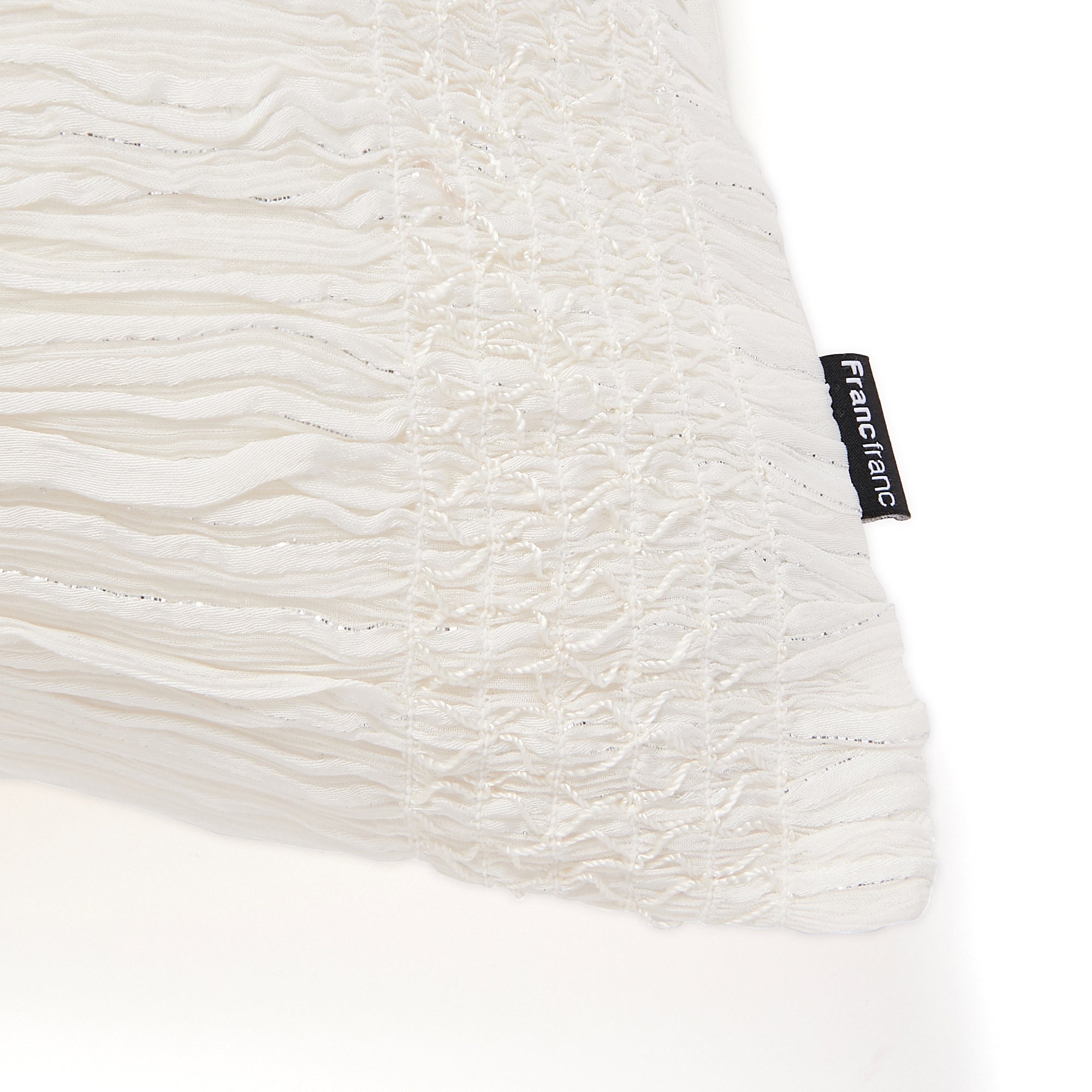 メタリック糸を織り込んだ繊細な生地のクッションカバーです。ギャザーを施したことで立体感を持たせ、生地の柔らかな素材感を活かしたデザインとなっています。▼クッションカバーの中材(別売り)はこちらクッションヌード一覧▼他のクッションカバーはこちらクッションカバー一覧サイズW450×D450mm素材表側 レーヨン 100% スリット糸使用、装飾糸 レーヨン 100%、裏側 コットン 100%カラーWH品番 1102010030820 全国一律550円(税込)です。雑貨の商品金額合計が5,000円(税込)以上の場合、送料無料で配送いたします。※手数料、ラッピング料、付帯サービス料は含みません。※新生活期・年末年始は出荷や配送の繁忙期となるため、日時指定をいただいてもご希望日時通りお届け出来ないことがございます。●洗濯:不可●洗濯機:不可●ドライクリーニング:不可■タンブル乾燥:不可■アイロン:不可■製品の特性上、サイズや色柄などに多少のばらつきがあります。素材の特性上、直射日光やライトに長時間照らされると、変色する場合があります。■使用や摩擦により、毛羽立ち・毛玉が発生することがあります。スリット(ラメ糸)は特性上切れ易い素材です。また、非常にデリくなっております。一度引き出されると直せません。予めご了承下さい。■装飾部分は非常にデリケートな為、引っ掛けや引っ掛かりにご注意下さい。装着の際は強い力で引っ張らないで下さい。