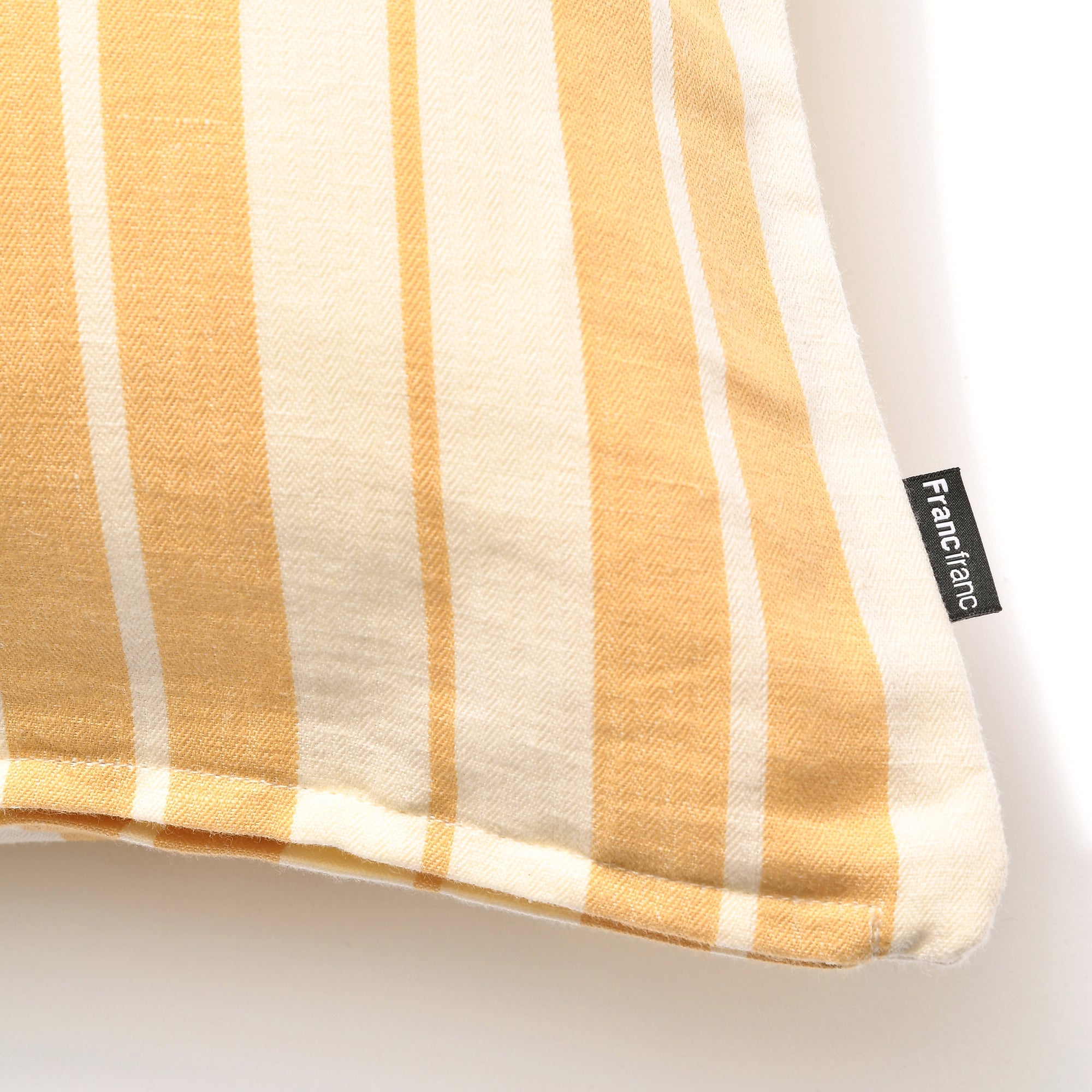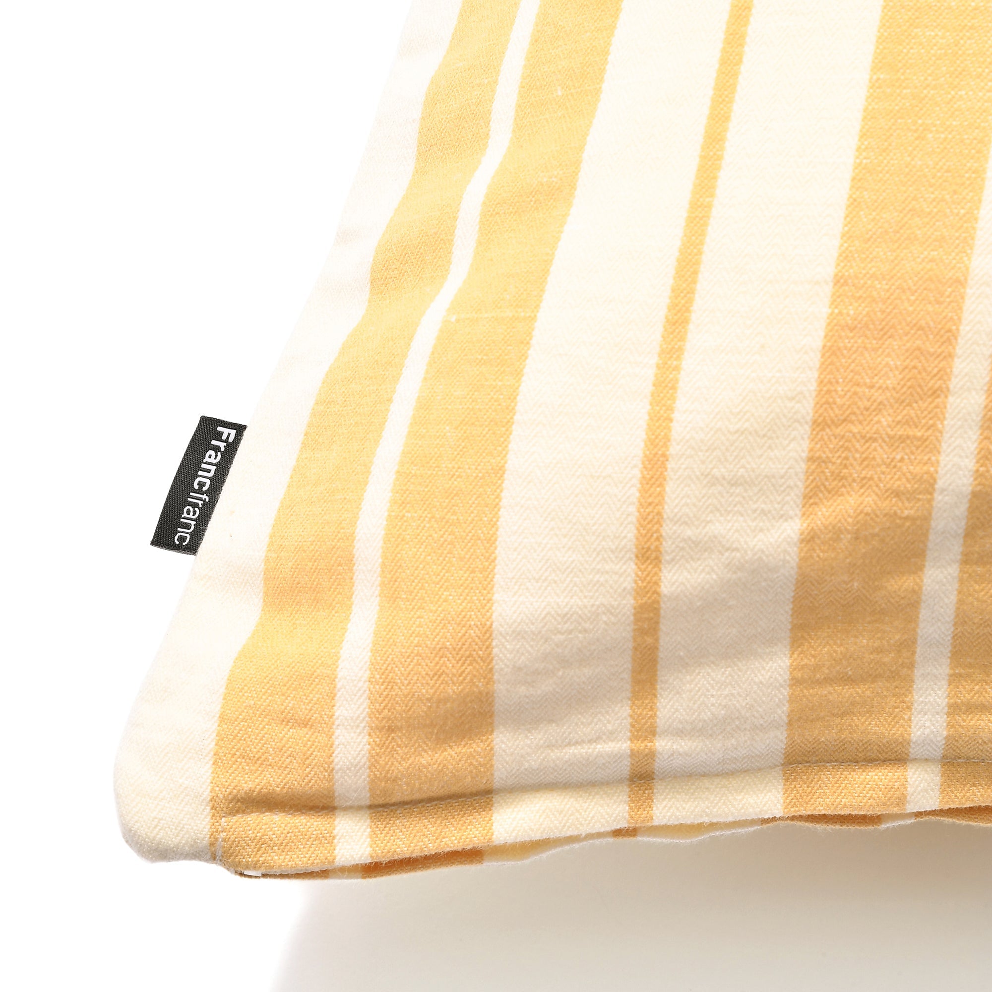 先染めで織り上げたストライプ柄のクッションカバーです。ナチュラルテイストにもお使いいただける柔らかな色合いです。▼クッションカバーの中材(別売り)はこちらクッションヌード一覧サイズW450×D450×H10mm素材麻50%、コットン50%重量0.132 kgカラーYE品番 1102010043721 全国一律550円(税込)です。雑貨の商品金額合計が5,000円(税込)以上の場合、送料無料で配送いたします。※手数料、ラッピング料、付帯サービス料は含みません。※新生活期・年末年始は出荷や配送の繁忙期となるため、日時指定をいただいてもご希望日時通りお届け出来ないことがございます。●洗濯機:可(手洗いコースのみ)●ドライクリーニング:可●タンブル乾燥:不可●アイロン:可■洗濯により縮みます。■洗濯の際は洗濯機の手洗いコースをお願いします。■ネットを使用し単独でお洗いください。■タンブル乾燥は避け、形を整えて陰干ししてください。■素材の特性上、ご使用や洗濯により素材の風合いや手触りが変わってきます。■装着の際は強い力で引っ張らないでください。