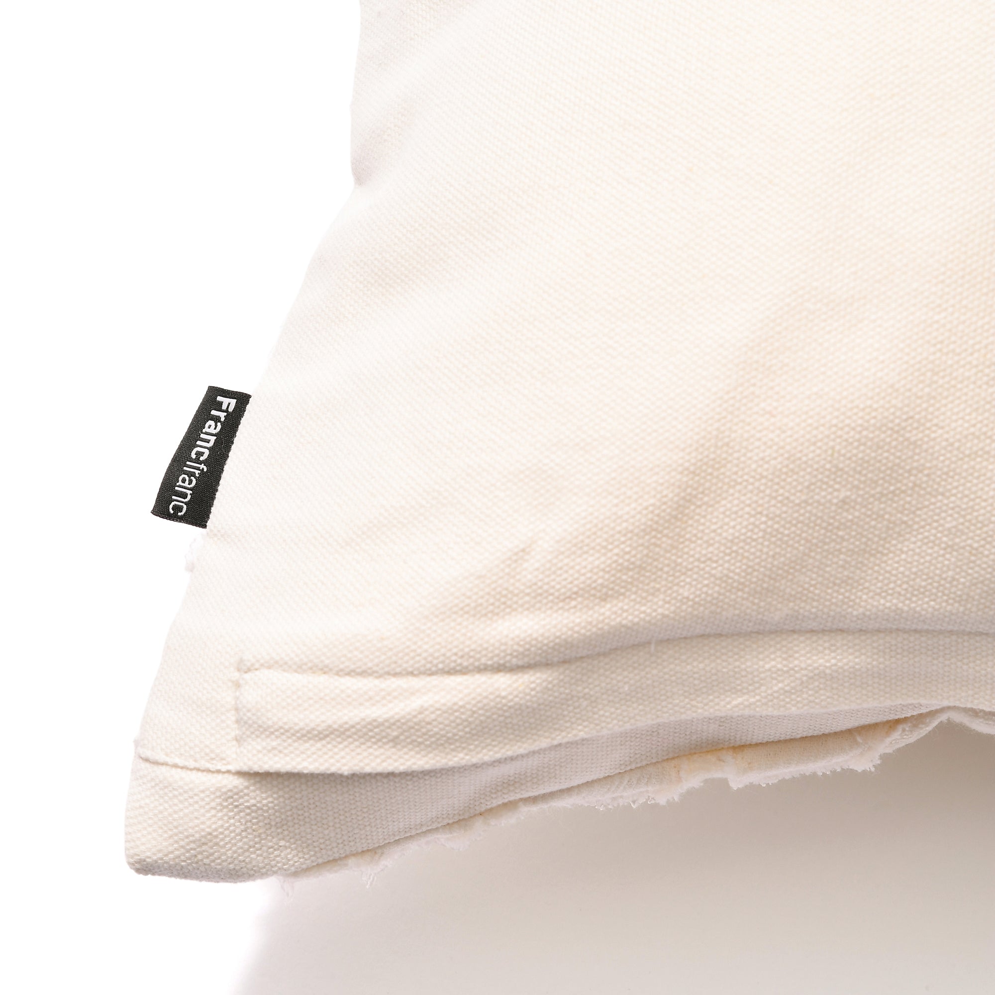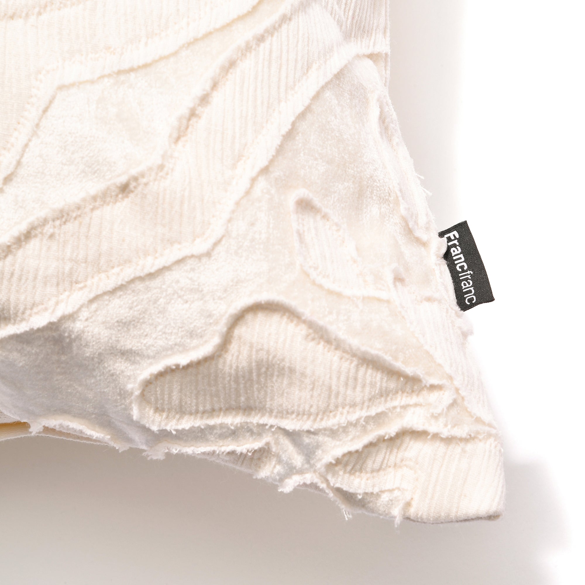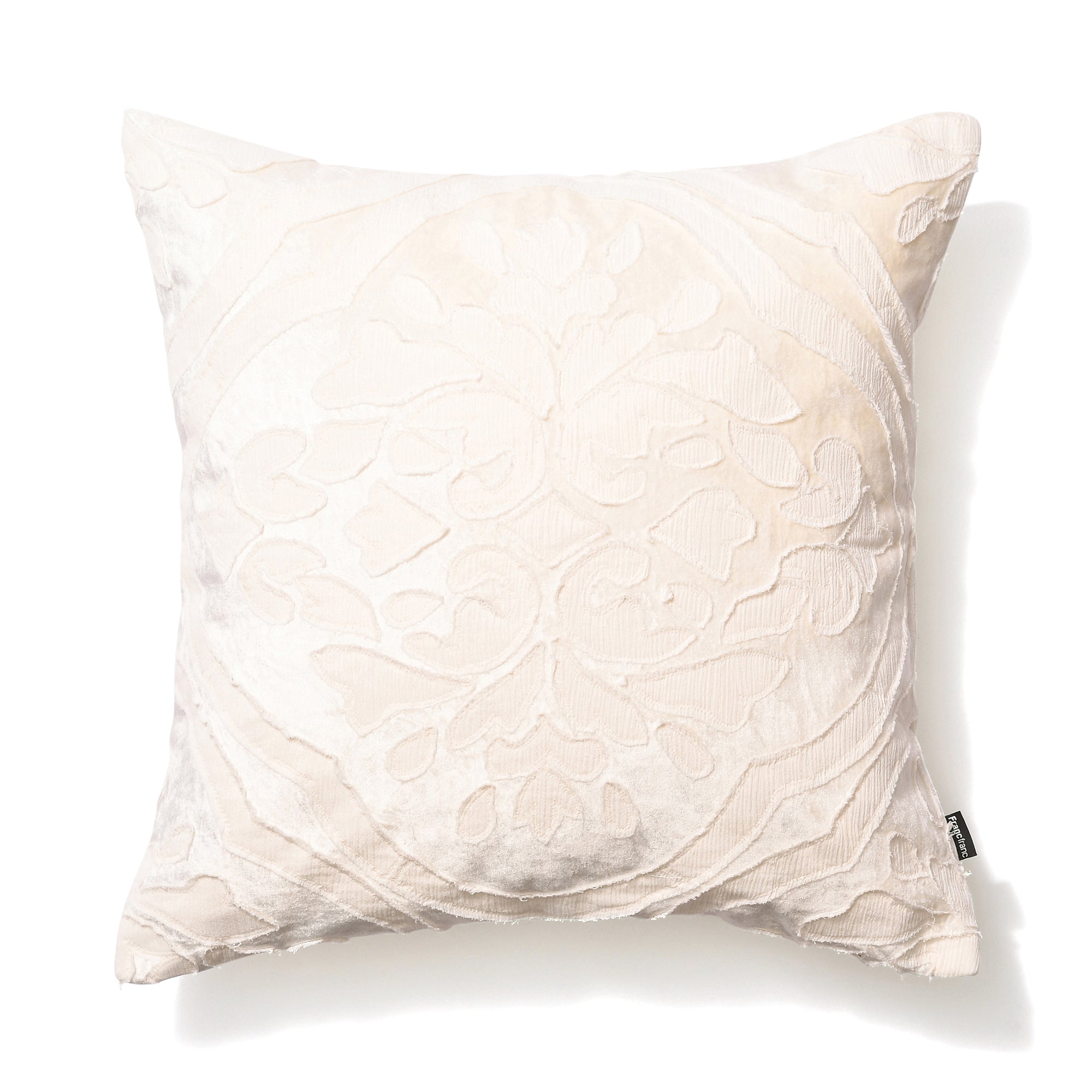 艶感のあるベルベット生地にオーナメント柄のアップリケを施した、華やかなクッションカバーです。大胆なオーナメント柄ですが、ホワイトで清楚な印象です。▼クッションカバーの中材(別売り)はこちらクッションヌード一覧サイズW450×D450mm素材表側:地組織 コットン100%・パイル レーヨン100%、装飾:コットン100%、裏側:コットン100%カラーWH品番 1102010043769 全国一律550円(税込)です。雑貨の商品金額合計が5,000円(税込)以上の場合、送料無料で配送いたします。※手数料、ラッピング料、付帯サービス料は含みません。※新生活期・年末年始は出荷や配送の繁忙期となるため、日時指定をいただいてもご希望日時通りお届け出来ないことがございます。●洗濯機:不可●ドライクリーニング:可●タンブル乾燥:不可●アイロン:可(中温)■製品の特性上、サイズや色柄などにおいて多少のばらつきがあります。■色落ちしたり、他に色移りすることがあります。特に濡れた状態での摩擦にご注意ください。■装飾部分は切りっぱなしの仕様のため、糸がほつれる特性があります。ほつれが気になる場合はハサミ等でカットしてください。■素材の特性上、ベルベット生地はキズのように見える場合があります。不良ではありません。■パイルの方向が部分的に異なり、色むらのように見える場合があります。■水洗いにより色落ちしたり、縮んだり、外観が変化することがありますので、お手入れはネットを使用したドライクリーニングをお願いします。