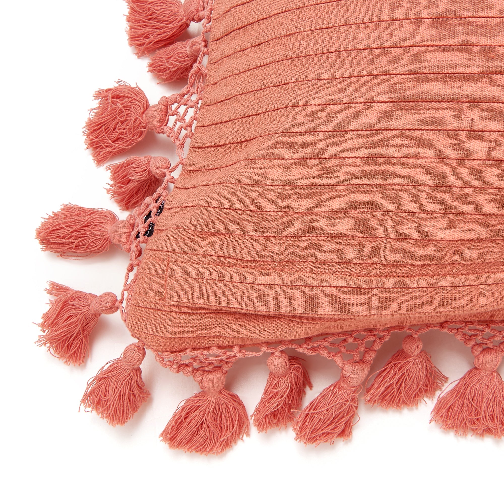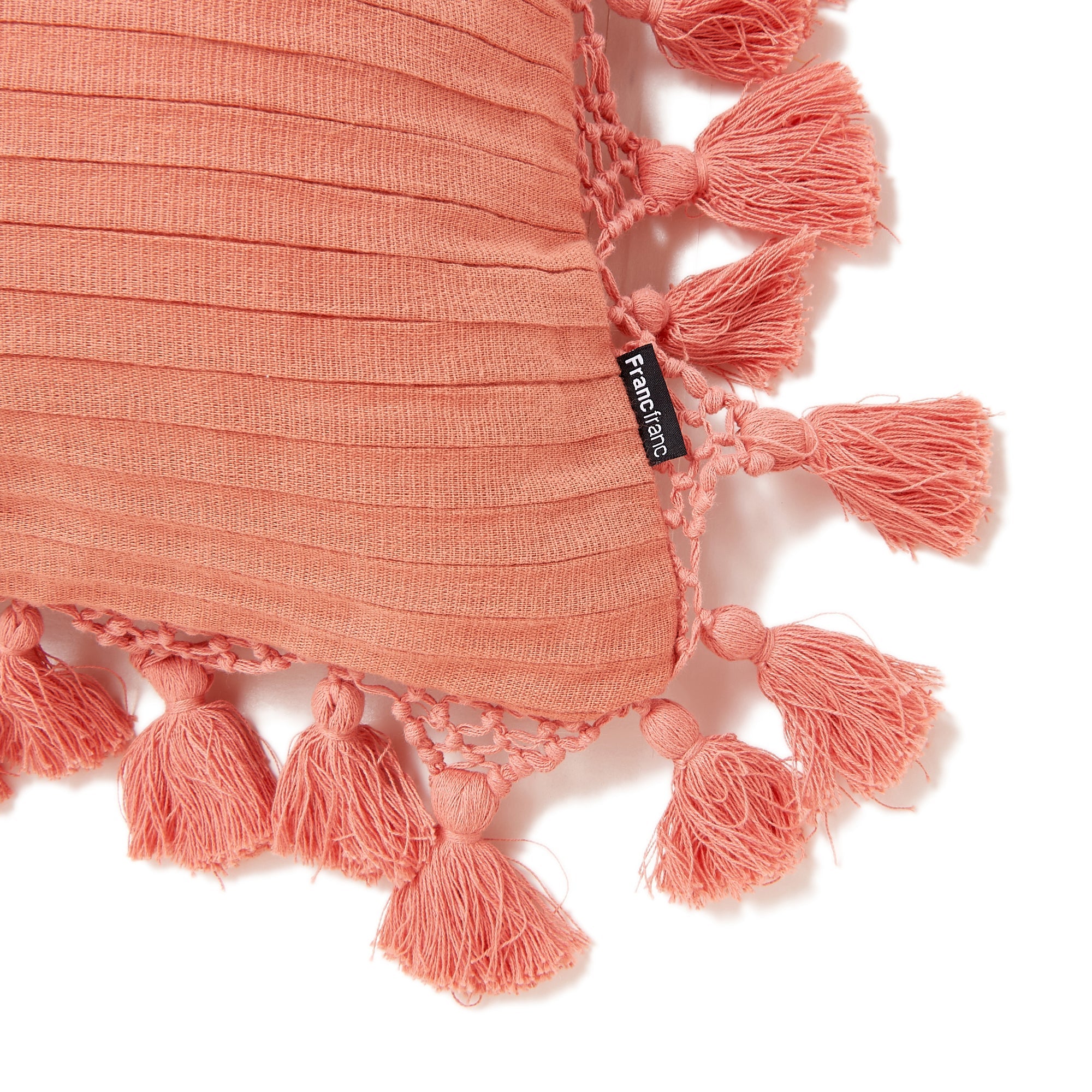 プリーツ生地にマクラメタッセルを周囲にあしらったクッションカバーです。ふんだんにあしらったタッセルが存在感抜群。ナチュラルテイストのお部屋におすすめです。▼クッションカバーの中材(別売り)はこちらクッションヌード一覧サイズW450×D450×H10mm素材本体:コットン100%、タッセル:コットン90%・ポリエステル5%・その他5%重量0.26 kgカラーOR品番 1102010044353 全国一律550円(税込)です。雑貨の商品金額合計が5,000円(税込)以上の場合、送料無料で配送いたします。※手数料、ラッピング料、付帯サービス料は含みません。※新生活期・年末年始は出荷や配送の繁忙期となるため、日時指定をいただいてもご希望日時通りお届け出来ないことがございます。●洗濯機:不可●ドライクリーニング:可●タンブル乾燥:不可●アイロン:可■水洗いにより、色落ちしたり、縮んだり、外観が変化する事がありますので、お手入れはネットを使用したドライクリーニングをお願いします。■装着の際は強く引っ張ったり、引っ掛けたりしないよう、十分ご注意ください。■タッセルは取れやすいため、引っ張たりしないでください。