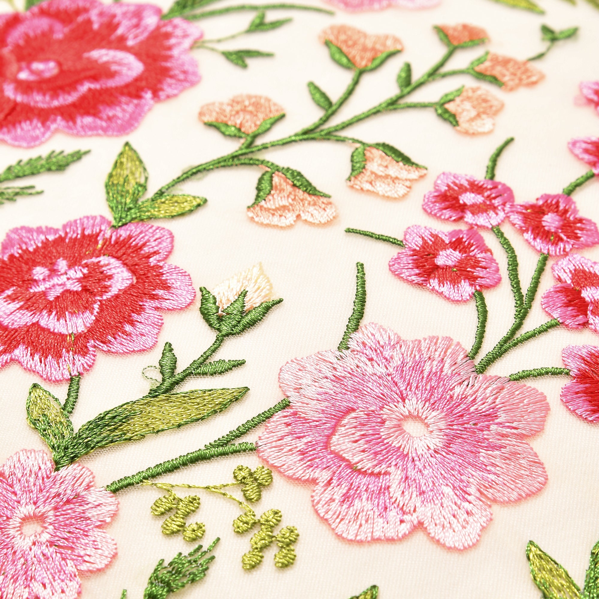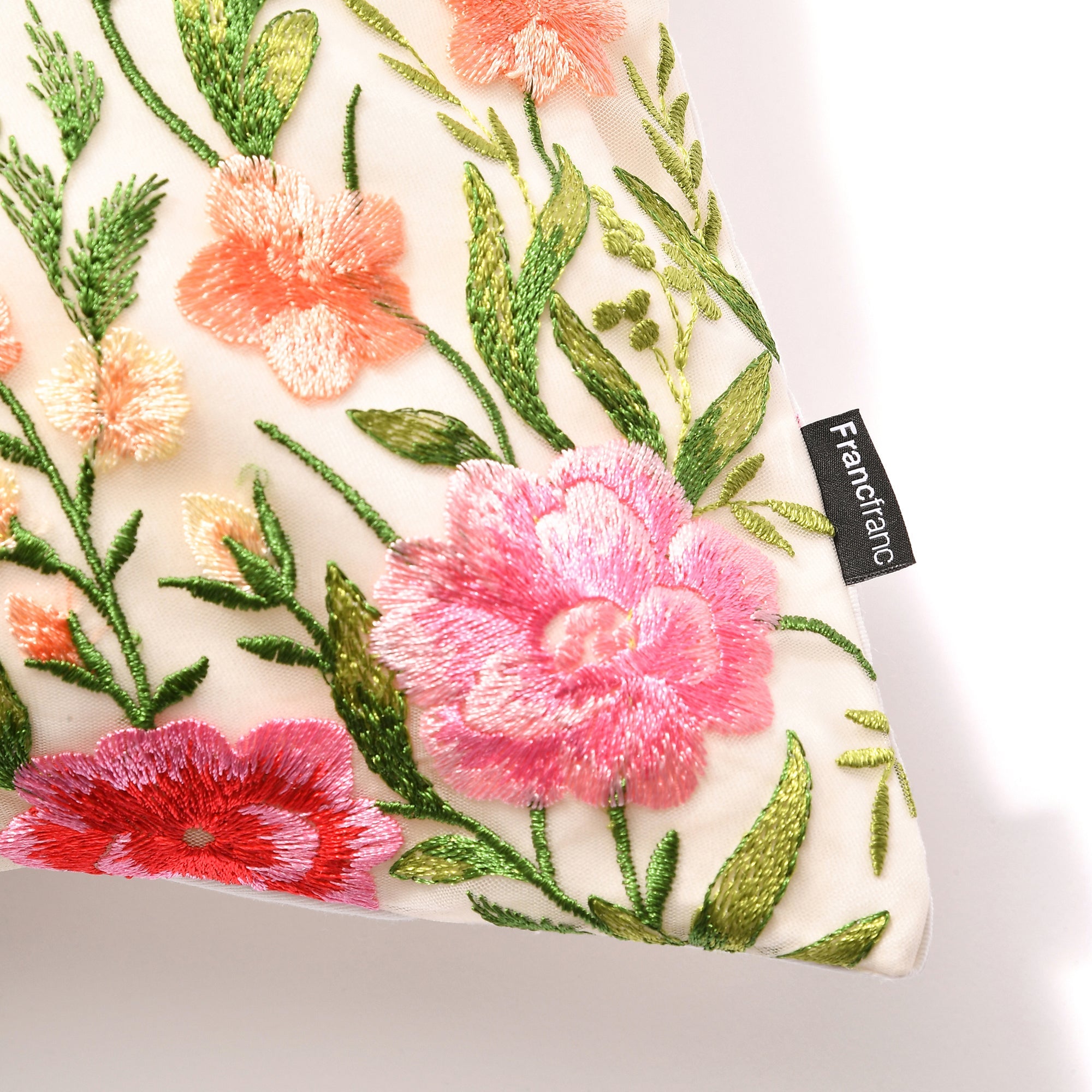 鮮やかな花柄の刺繍を全面に施したクッションカバーです。お部屋を華やかでスイートな印象にしてくれます。▼クッションカバーの中材(別売り)はこちらクッションヌード一覧サイズW450×D450×H10mm素材本体:コットン100%、チュール部:地組織 ナイロン100%、刺繍:ポリエステル100%重量0.15 kgカラーMULTI品番 1102010047118 全国一律550円(税込)です。雑貨の商品金額合計が5,000円(税込)以上の場合、送料無料で配送いたします。※手数料、ラッピング料、付帯サービス料は含みません。※新生活期・年末年始は出荷や配送の繁忙期となるため、日時指定をいただいてもご希望日時通りお届け出来ないことがございます。●洗濯機:不可●ドライクリーニング:可●タンブル乾燥:不可●アイロン:可■水洗いにより、縮んだり、色落ちや外観変化が生じる場合がありますので、お手入れの際はネットを使用したドライクリーニングをお願いします。■表側のアイロンはお避けください。■色落ちしたり、他に色移りする場合があります。特に濡れた状態での摩擦にご注意ください。■表側はデリケートなため、装着の際は強い力で引っ張らないでください。■刺繍部分は引っ掛かり易いため、お取扱いには十分ご注意ください。■刺繍糸の端が飛び出している場合がありますが、引っ張らないでください。