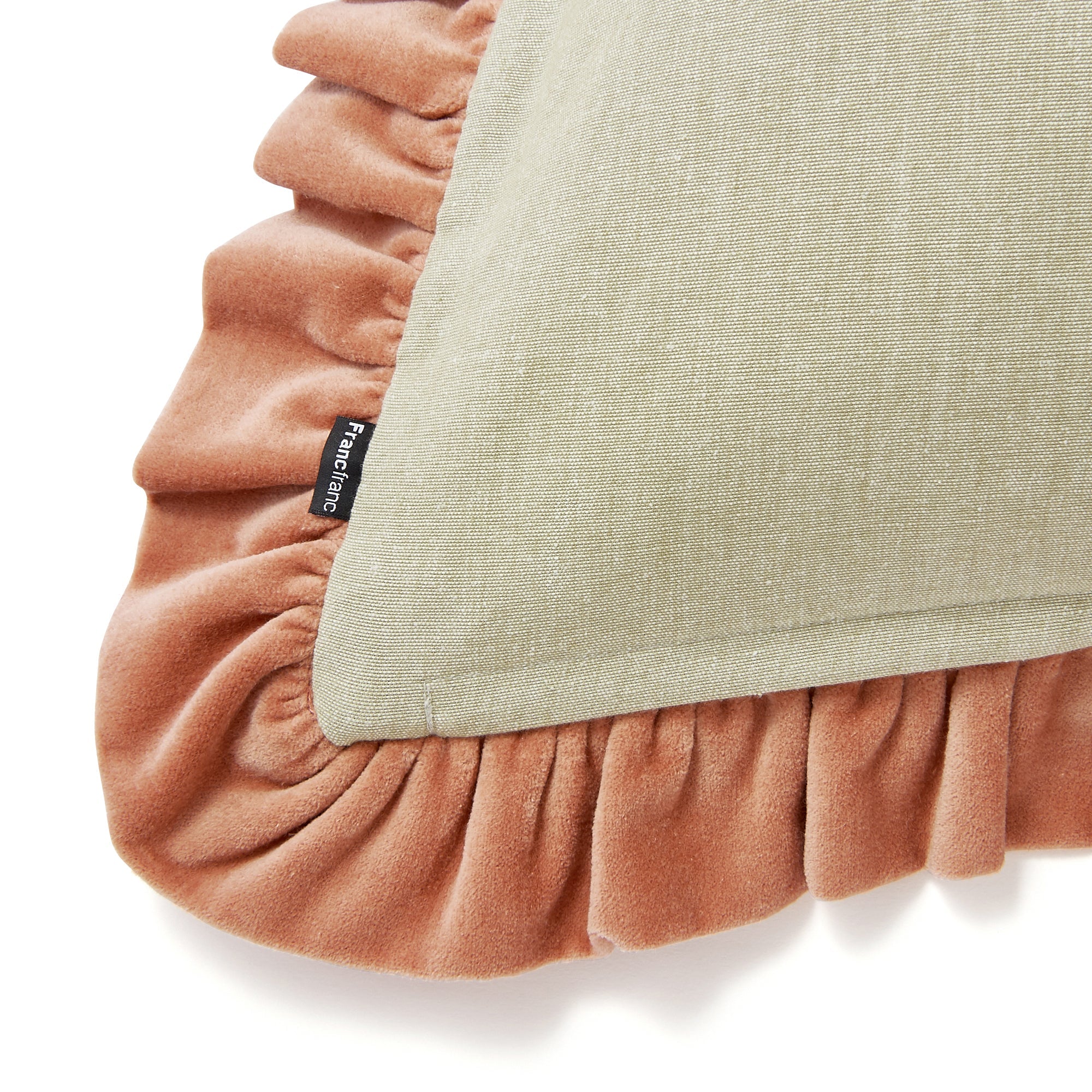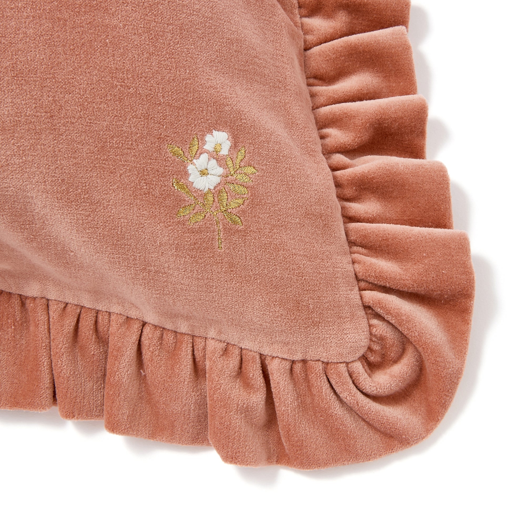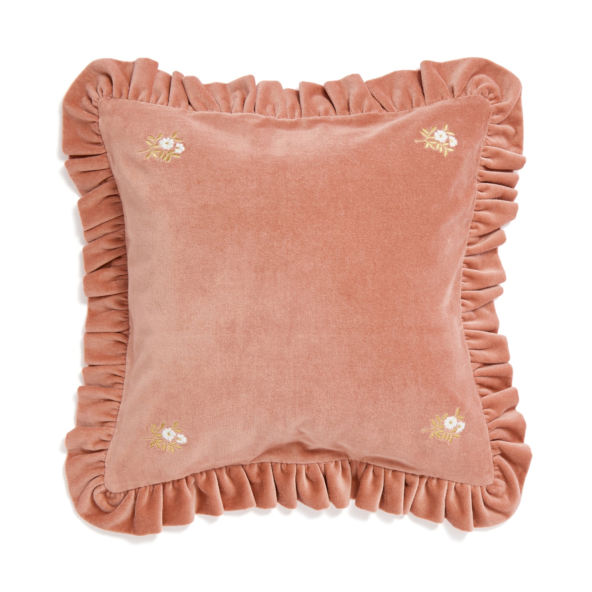 ベルベット生地にフリルをあしらったクッションカバーです。四隅に入れた小花の刺繍がほどよくアクセントになったデザイン。あたたかみのあるピンクが秋冬にぴったりです。▼クッションカバーの中材(別売り)はこちらクッションヌード一覧サイズW450×D450×H10mm素材表側:コットン100%、刺繍:ポリエステル100%、裏側:コットン100%重量0.3 kgカラーPK品番 1102010048429 全国一律550円(税込)です。雑貨の商品金額合計が5,000円(税込)以上の場合、送料無料で配送いたします。※手数料、ラッピング料、付帯サービス料は含みません。※新生活期・年末年始は出荷や配送の繁忙期となるため、日時指定をいただいてもご希望日時通りお届け出来ないことがございます。■洗濯:ドライのみ可■洗濯機:不可■ドライクリーニング:可■タンブル乾燥:不可■アイロン:可■はっ水加工:無■水洗いにより色落ちしたり、縮んだり、外観が変化することがありますので、お手入れはネットを使用したドライクリーニングをお願いします。■使用やドライクリーニングにより、毛羽立ち・毛羽抜け・毛玉が発生します。■製法の特性上、刺繍糸の端が飛び出している場合がありますが引っ張らないでください。■原産国:インド