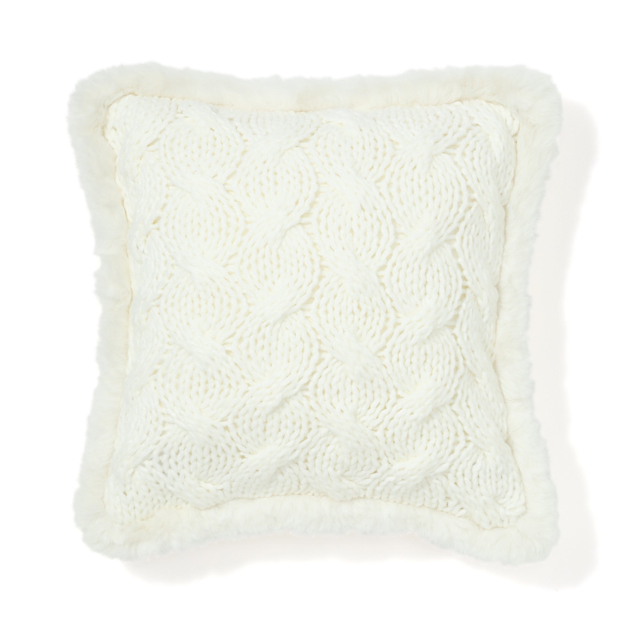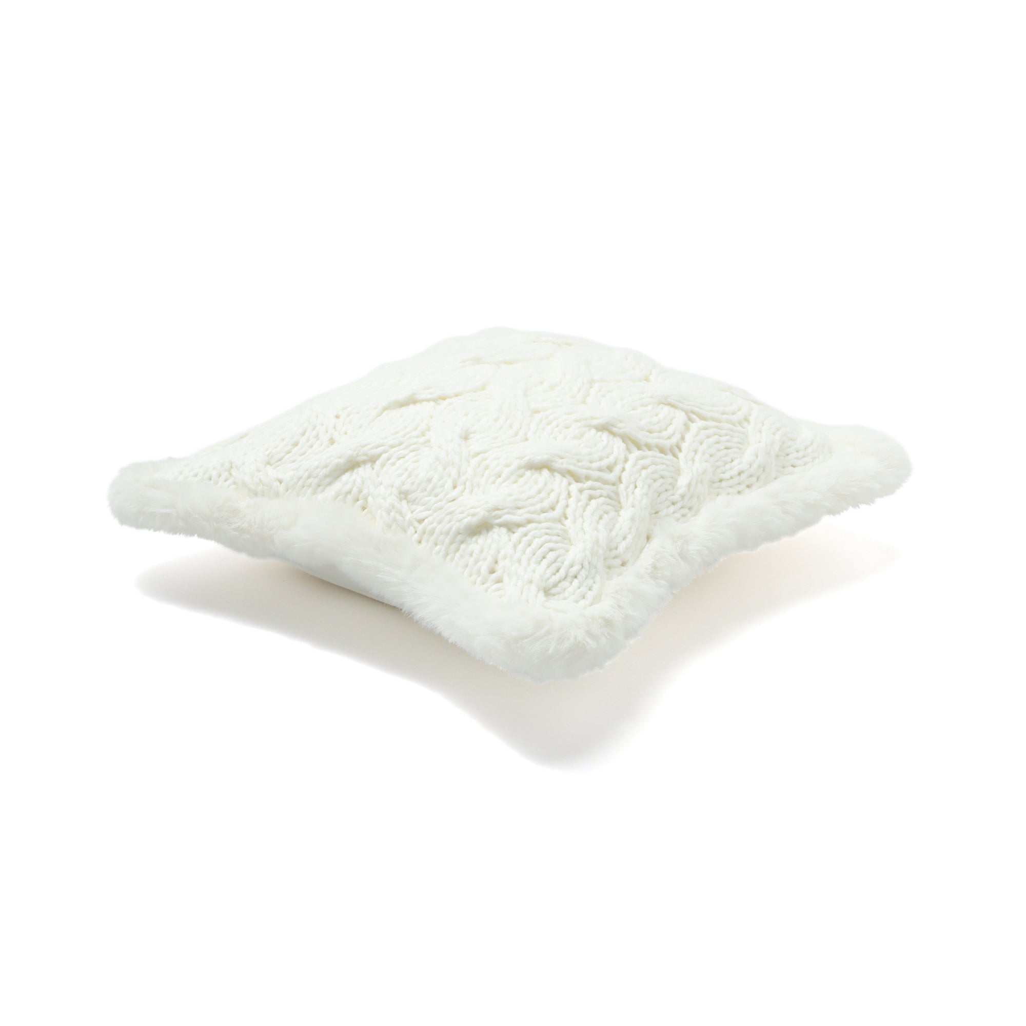 ニット×ファー クッションカバー 450×450 ホワイト(122)