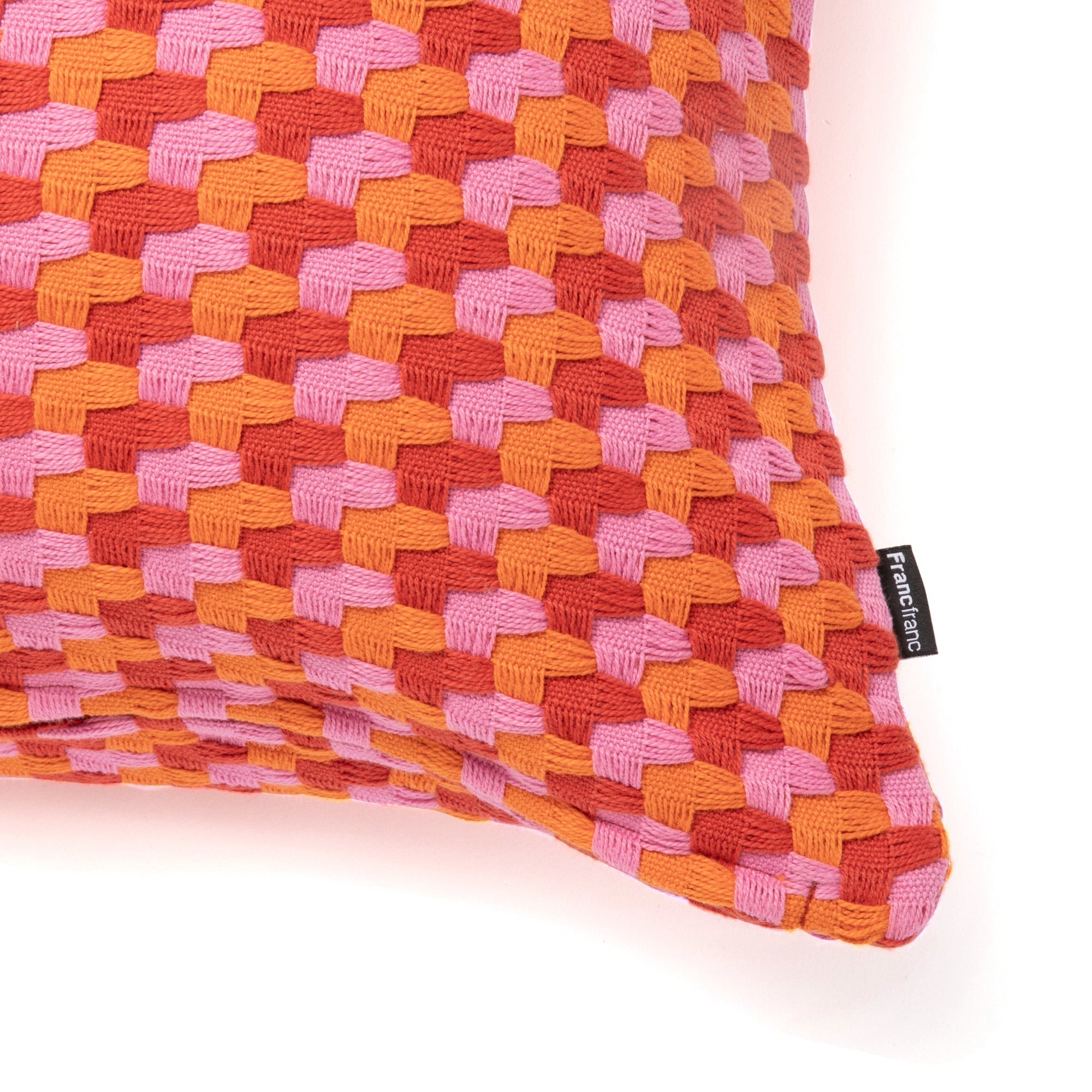 マルチカラーウィーブ クッションカバー 450×450 ピンク×オレンジ (126)