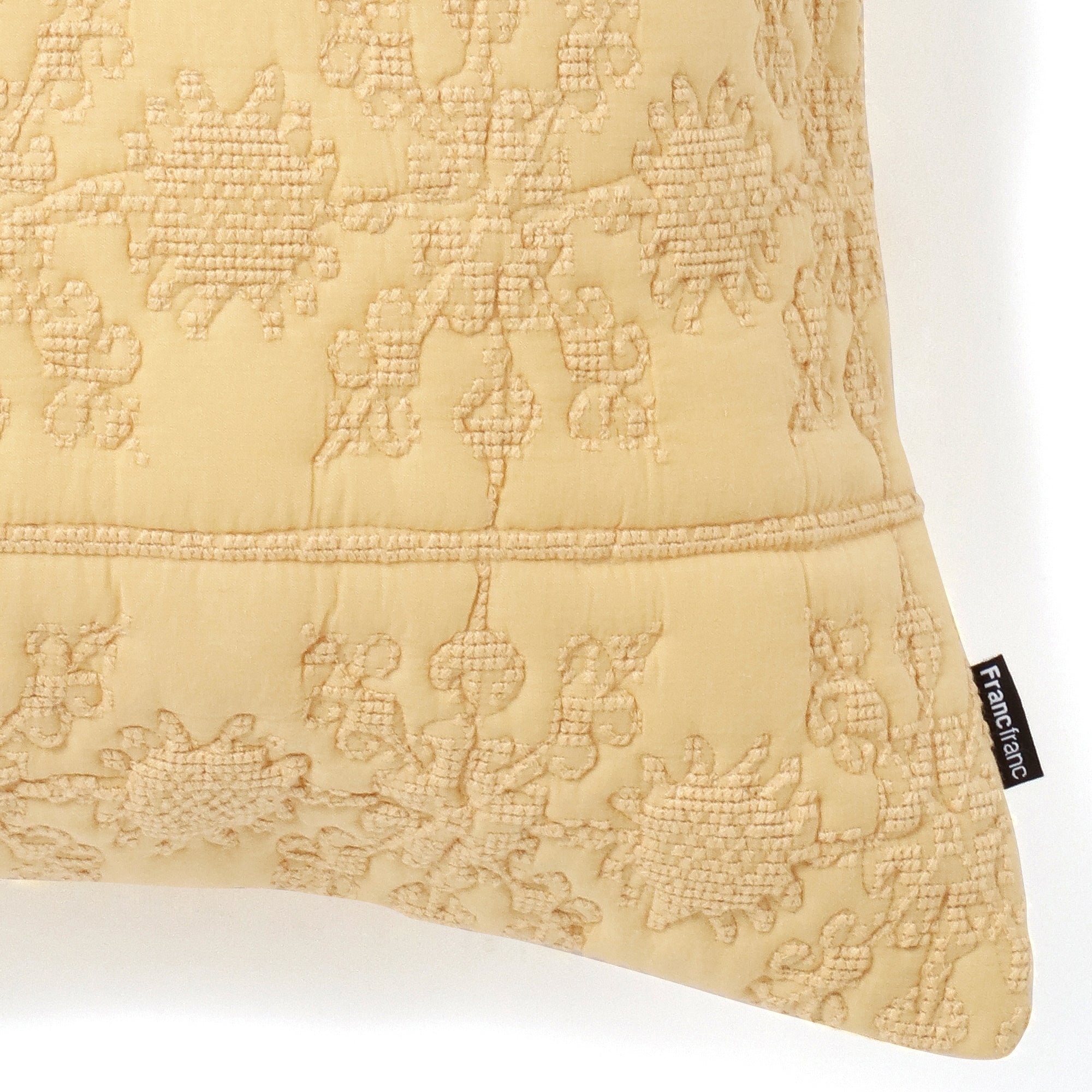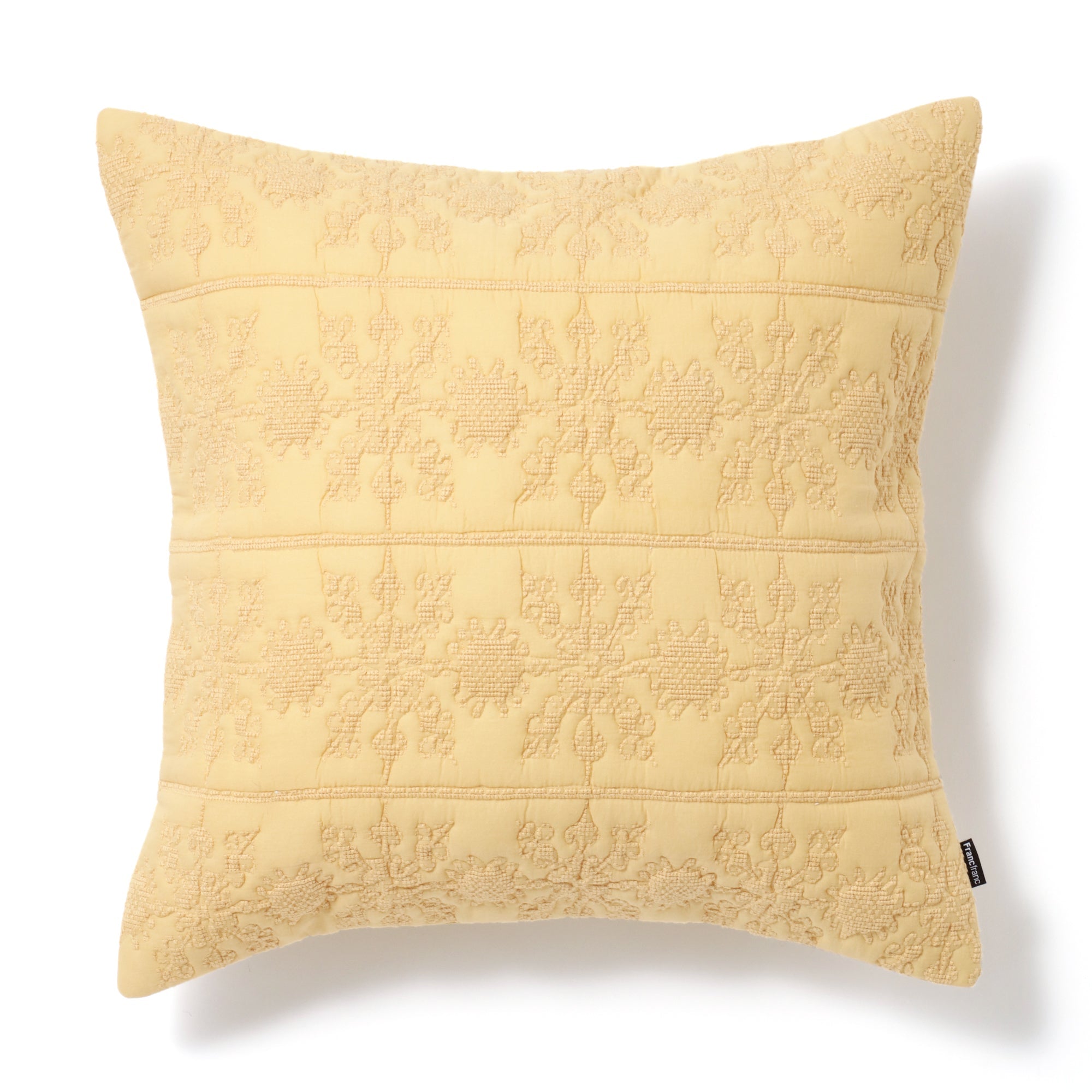 キルトステッチでエスニック調の柄を細やかに施したクッションカバーです。▼クッションカバーの中材(別売り)はこちらクッションヌード一覧サイズW450×D450×H10mm素材表側:コットン93%・再生繊維(セルロース)7%、中わた:ポリエステル100%、裏地:コットン86%・再生繊維(セルロース)14%、刺繍:コットン100%、裏側:コットン100%重量0.17 kgカラーYE品番 1102010049495 全国一律550円(税込)です。雑貨の商品金額合計が5,000円(税込)以上の場合、送料無料で配送いたします。※手数料、ラッピング料、付帯サービス料は含みません。※新生活期・年末年始は出荷や配送の繁忙期となるため、日時指定をいただいてもご希望日時通りお届け出来ないことがございます。■洗濯:手洗いのみ可■洗濯機:不可■ドライクリーニング:不可■タンブル乾燥:不可■アイロン:可■はっ水加工:不可■お手入れの際は外観変化や他への色移りを避けるため、洗濯機の手洗いコースではなく、手洗いで単独でやさしく押し洗いをしてください。■もみ洗いはお避けください。水洗いにより縮みます。■形を整えて陰干ししてください。■素材の特性上、使用や水洗いにより毛羽立ち、毛羽抜け、毛玉が発生します。■繰り返しの使用や水洗いにより、中わたが吹き出してくることがあります。