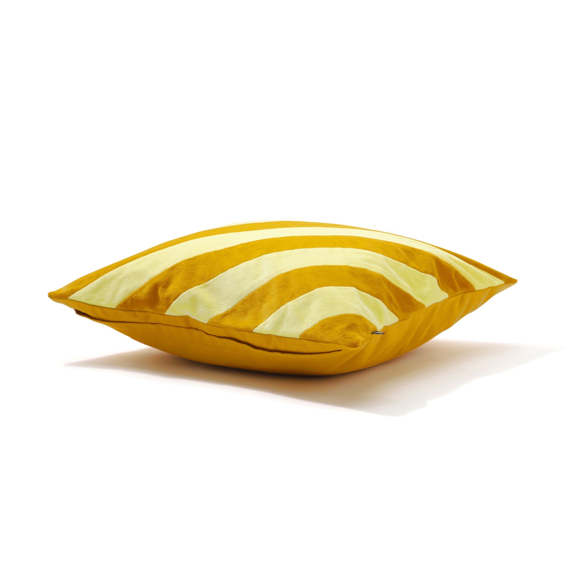ベルベットストライプ クッションカバー 450×450 イエロー×ライトイエロー(A-085)