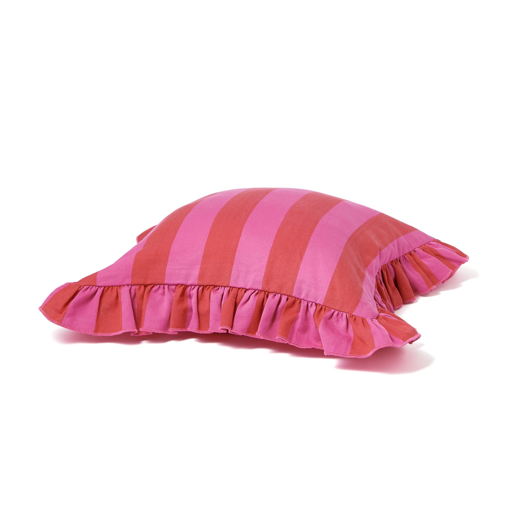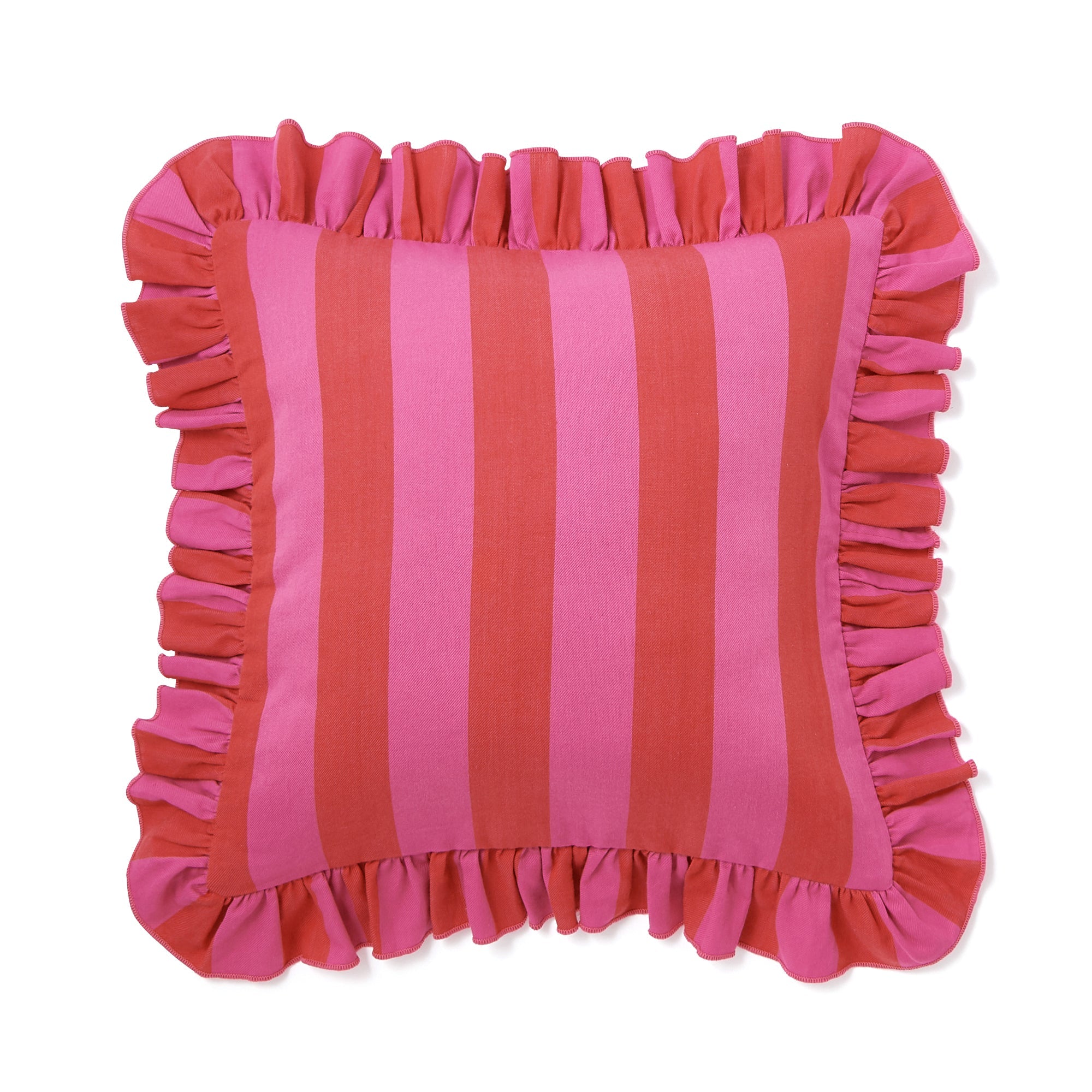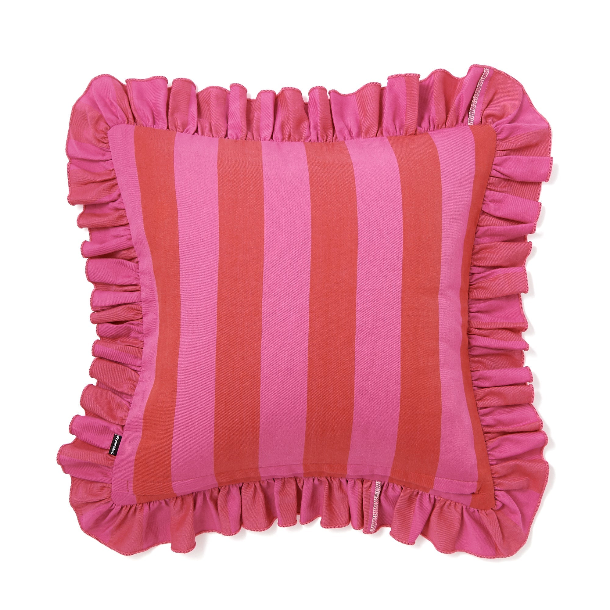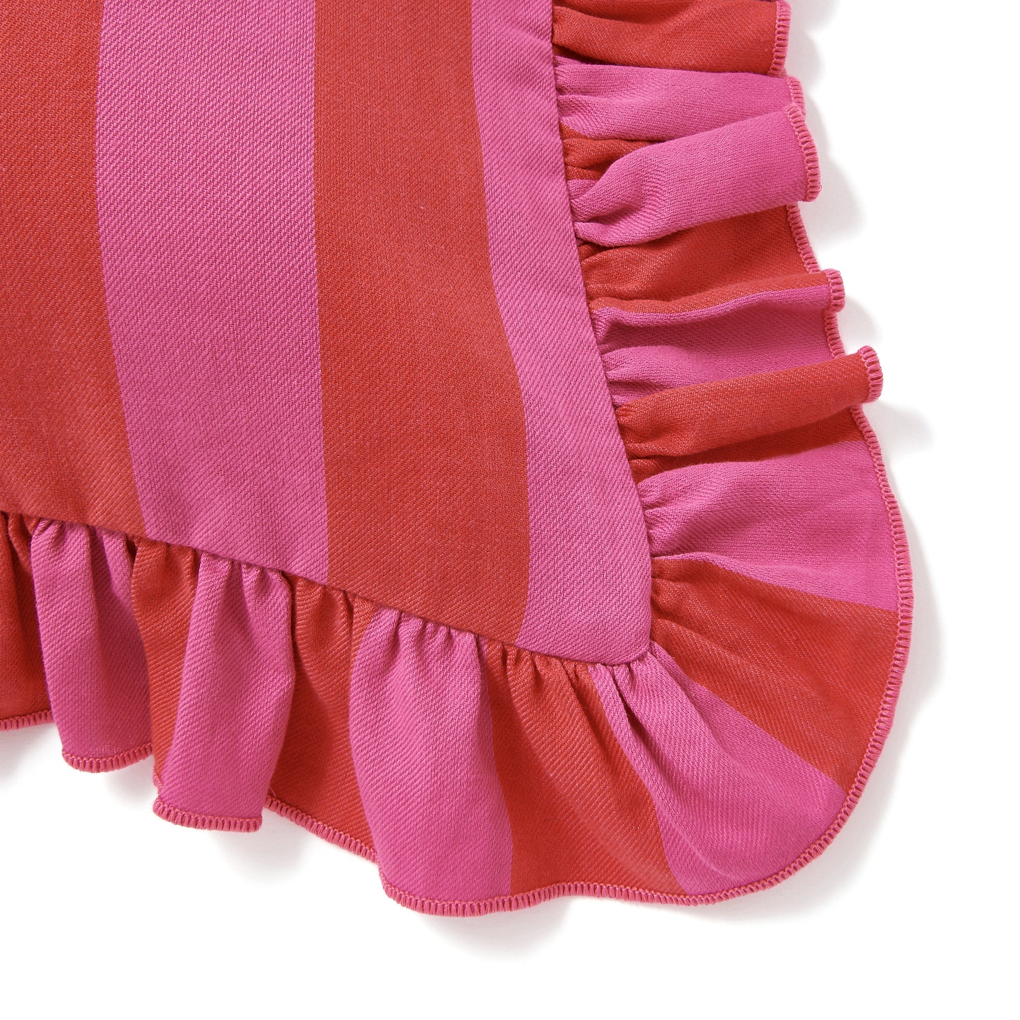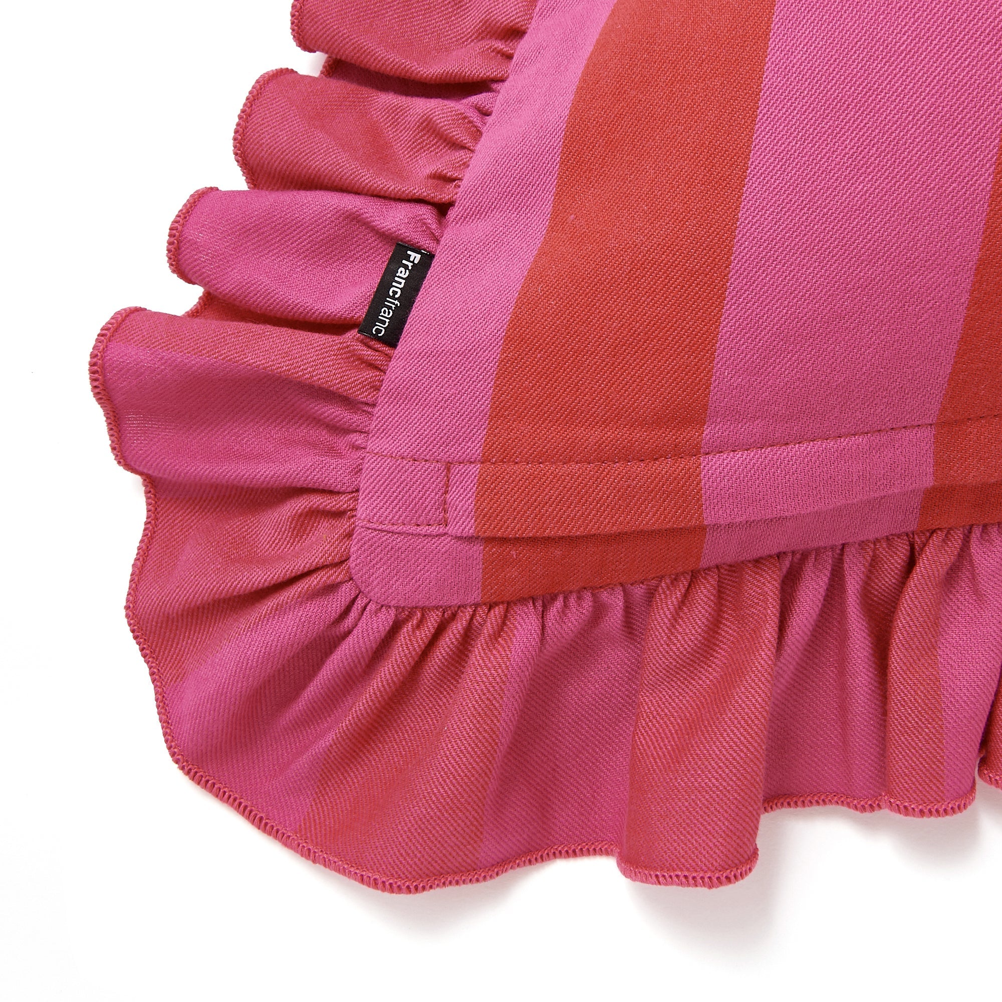 フリルストライプ クッションカバー 450×450 レッド×ピンク(C-157)