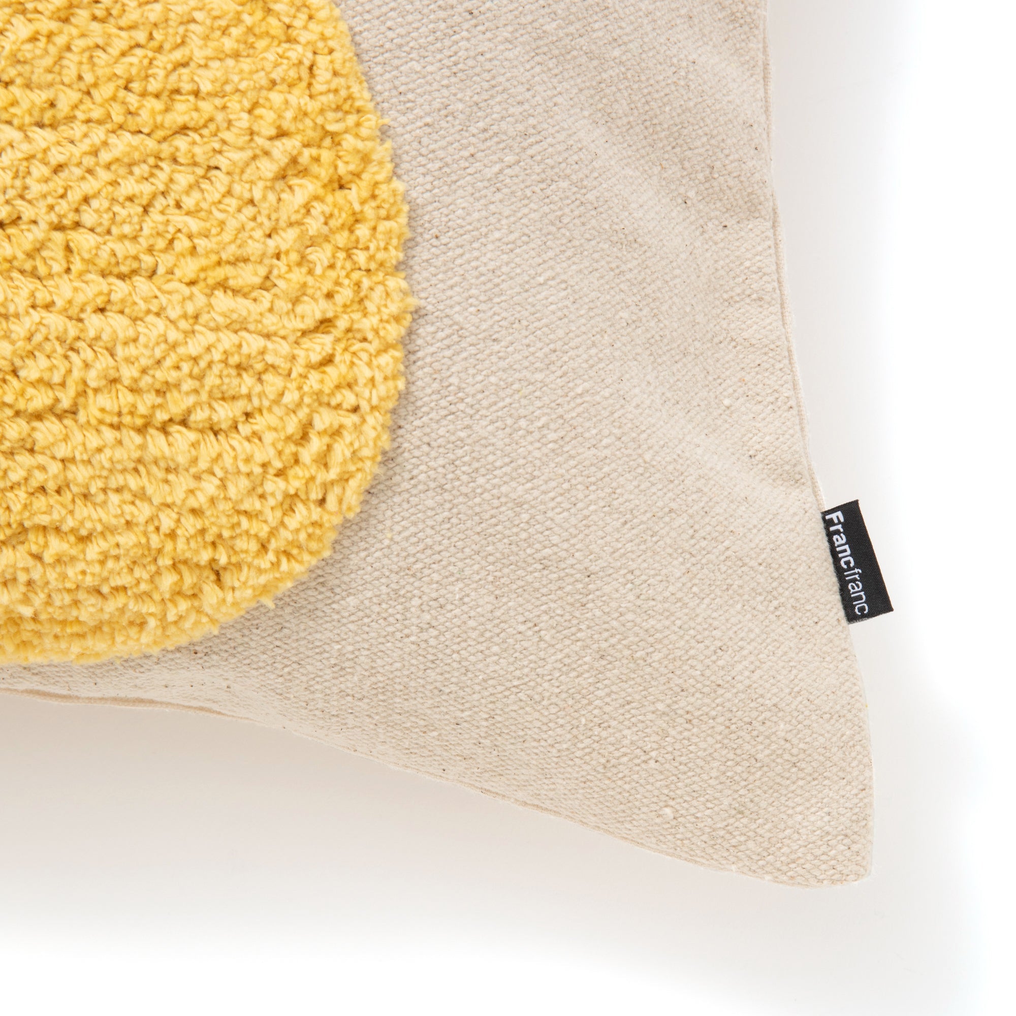 キャンバス地にタフトで大胆な模様を施した遊び心あるデザインのクッションカバーです。▼クッションカバーの中材(別売り)はこちらクッションヌード一覧サイズW450×D450×H10mm素材表側:コットン80%・ポリエステル15%・その他5%、裏側:コットン100%重量0.25 kgカラーYE品番 1102010050347 全国一律550円(税込)です。雑貨の商品金額合計が5,000円(税込)以上の場合、送料無料で配送いたします。※手数料、ラッピング料、付帯サービス料は含みません。※新生活期・年末年始は出荷や配送の繁忙期となるため、日時指定をいただいてもご希望日時通りお届け出来ないことがございます。■洗濯機:不可■ドライクリーニング:可■タンブル乾燥:不可■アイロン:不可■はっ水加工:無■水洗いにより、色落ちしたり、縮んだり、外観が変化する事がありますので、お手入れはネットを使用したドライクリーニングをお願い致します。■素材の特性上、摩擦やドライクリーニングにより、毛羽立ち・毛羽落ち・毛玉が発生します。■表生地は織組織が粗く、デリケートな商品ですので、装着の際は強く引っ張ったり、引っ掛けたりしないでください。
