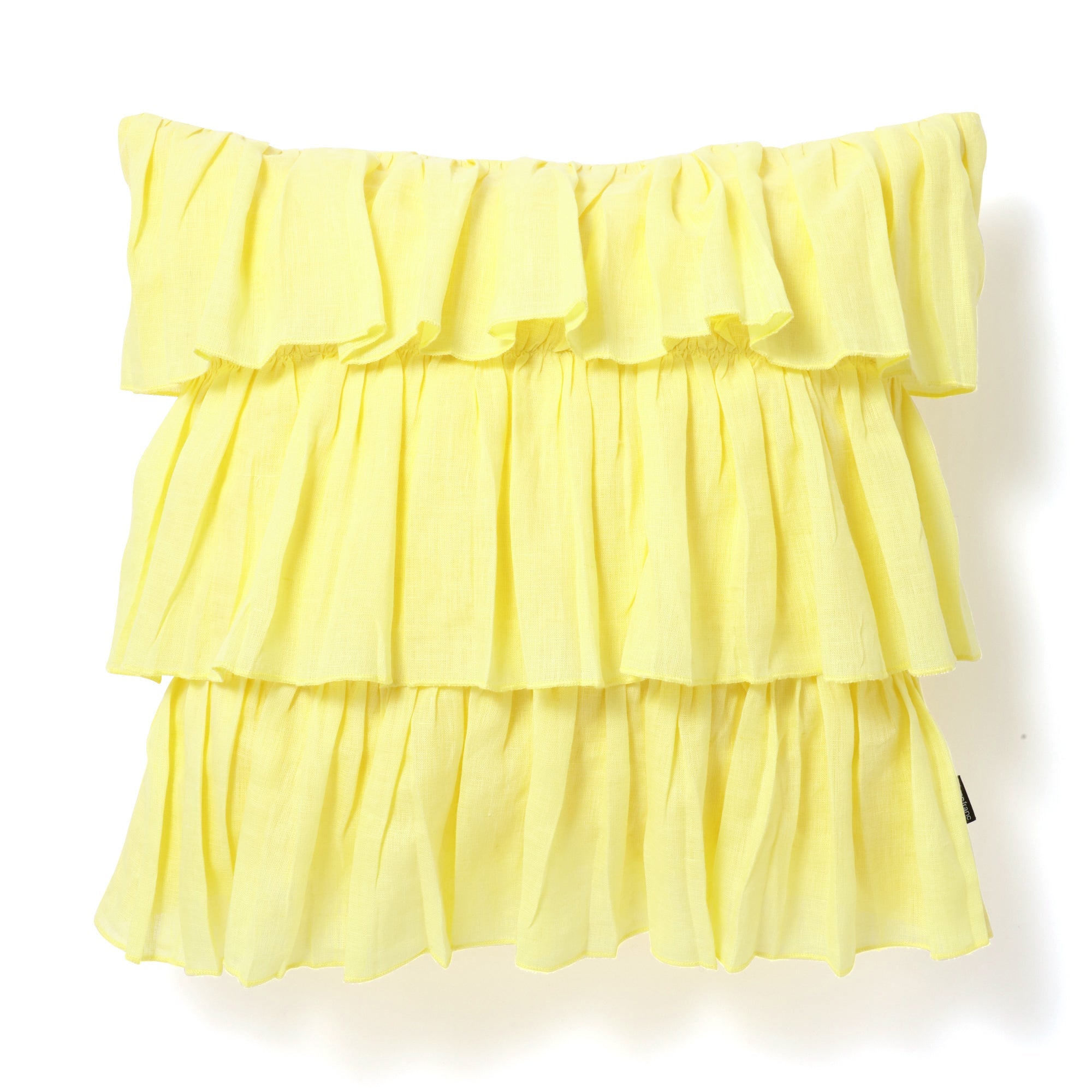 張りのあるリネン生地を3段のフリルに仕上げたクッションカバーです。鮮やかな色合いが夏のコーディネートを一気に華やかにしてくれるアイテムです。▼クッションカバーの中材(別売り)はこちらクッションヌード一覧サイズW450×D450×H5mm素材本体:コットン100%、フリル:麻100%、メロー糸:ポリエステル100%重量0.2 kgカラーYE品番 1102010050651 全国一律550円(税込)です。雑貨の商品金額合計が5,000円(税込)以上の場合、送料無料で配送いたします。※手数料、ラッピング料、付帯サービス料は含みません。※新生活期・年末年始は出荷や配送の繁忙期となるため、日時指定をいただいてもご希望日時通りお届け出来ないことがございます。■洗濯機:不可■ドライクリーニング:不可■タンブル乾燥:不可■アイロン:不可■洗濯により色落ちや外観変化が発生するため、水洗い・ドライクリーニングはできません。■汚れた場合は固く絞った布等で軽く拭き取ってください。■素材の特性上、使用や摩擦により、毛羽立ち・毛羽抜け・毛玉が発生します。■天然素材の特性上、色味のムラやスラブ等が見られる場合があります。また、使用や摩擦により素材の風合いや手触りが変わってきます。■原産国:インド
