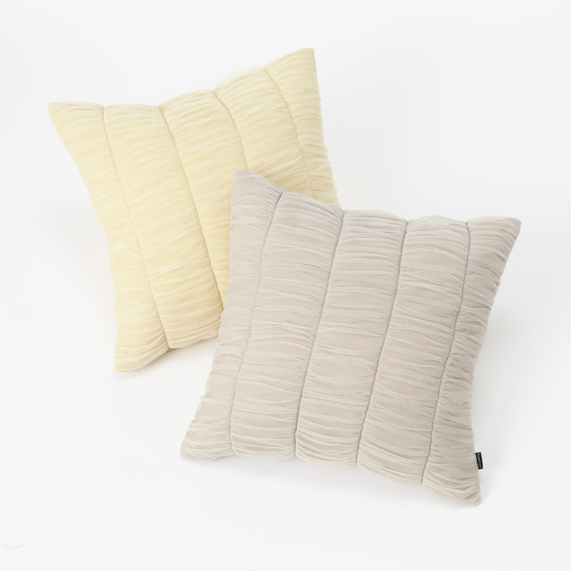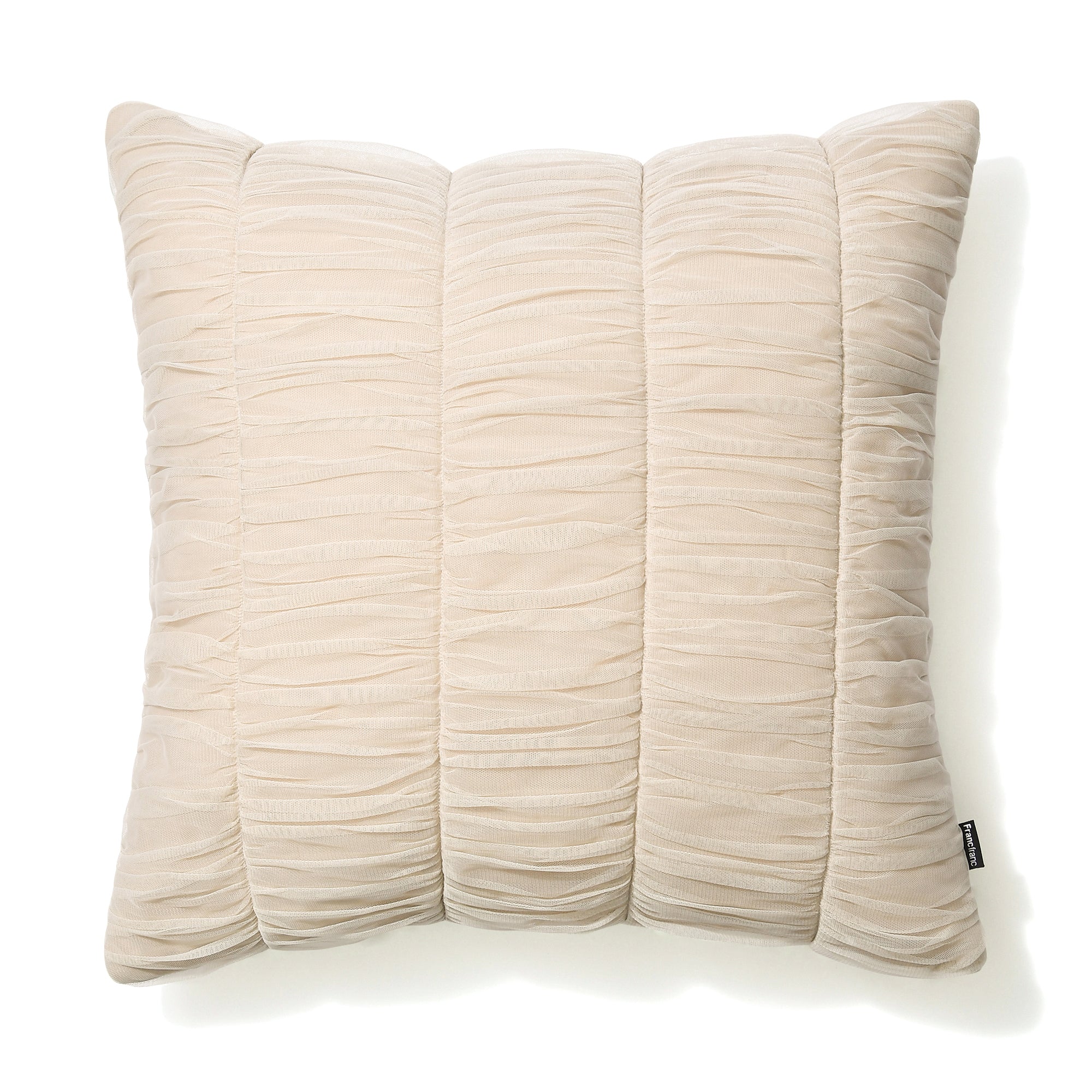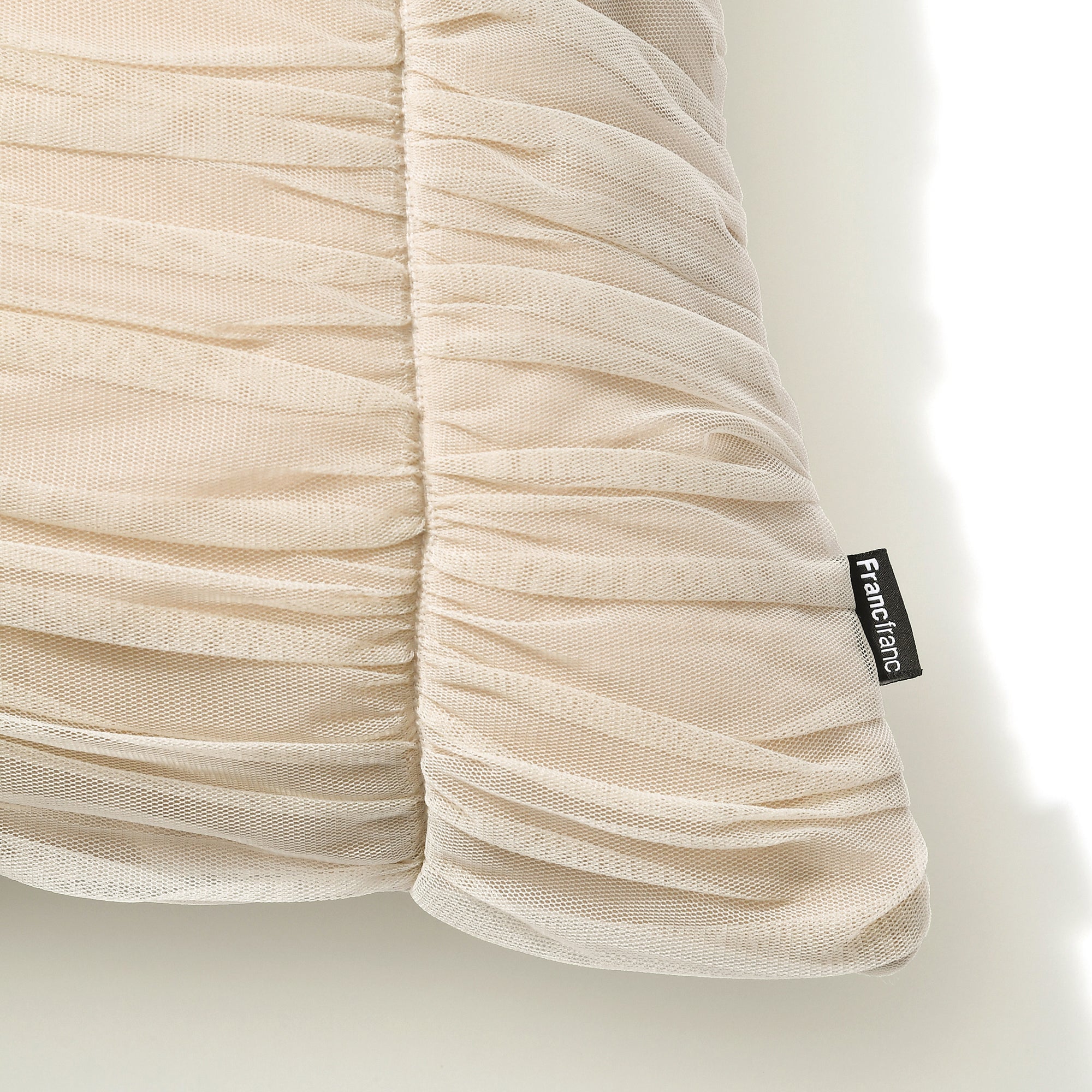 チュール生地を使用しふんわりとギャザーを寄せたクッションカバーです。 ▼クッションカバーの中材(別売り)はこちら クッションヌード一覧