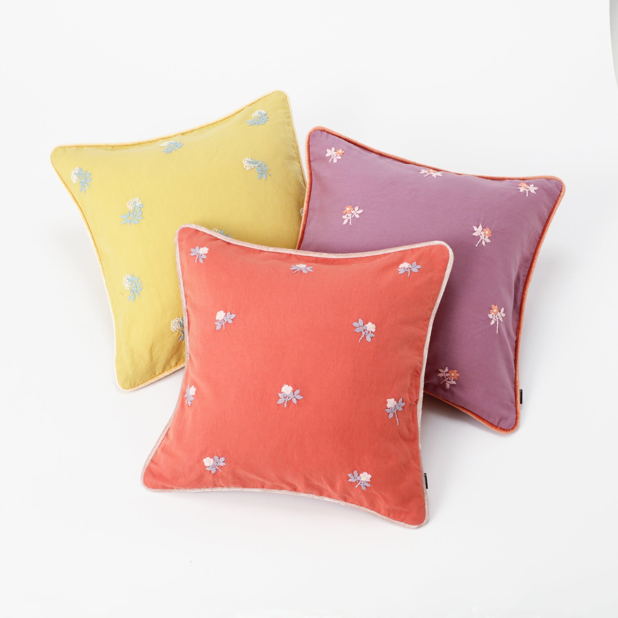 綿麻の生地に立体的な小花柄の刺繍を施したクッションカバーです。 ▼クッションカバーの中材(別売り)はこちら クッションヌード一覧