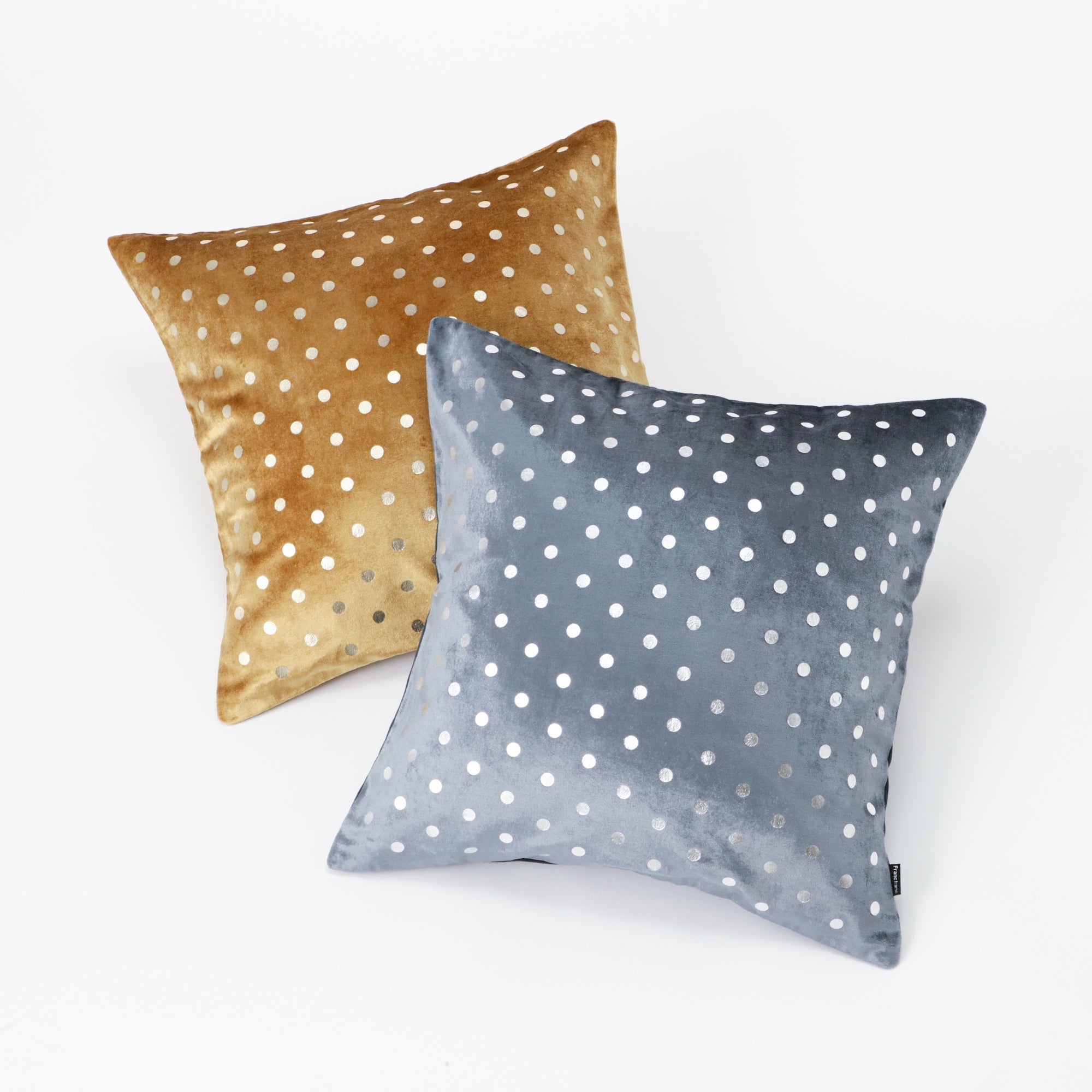 光沢感のあるベルベット生地にドットの箔プリントを施したクッションカバーです。 ▼クッションカバーの中材(別売り)はこちら クッションヌード一覧