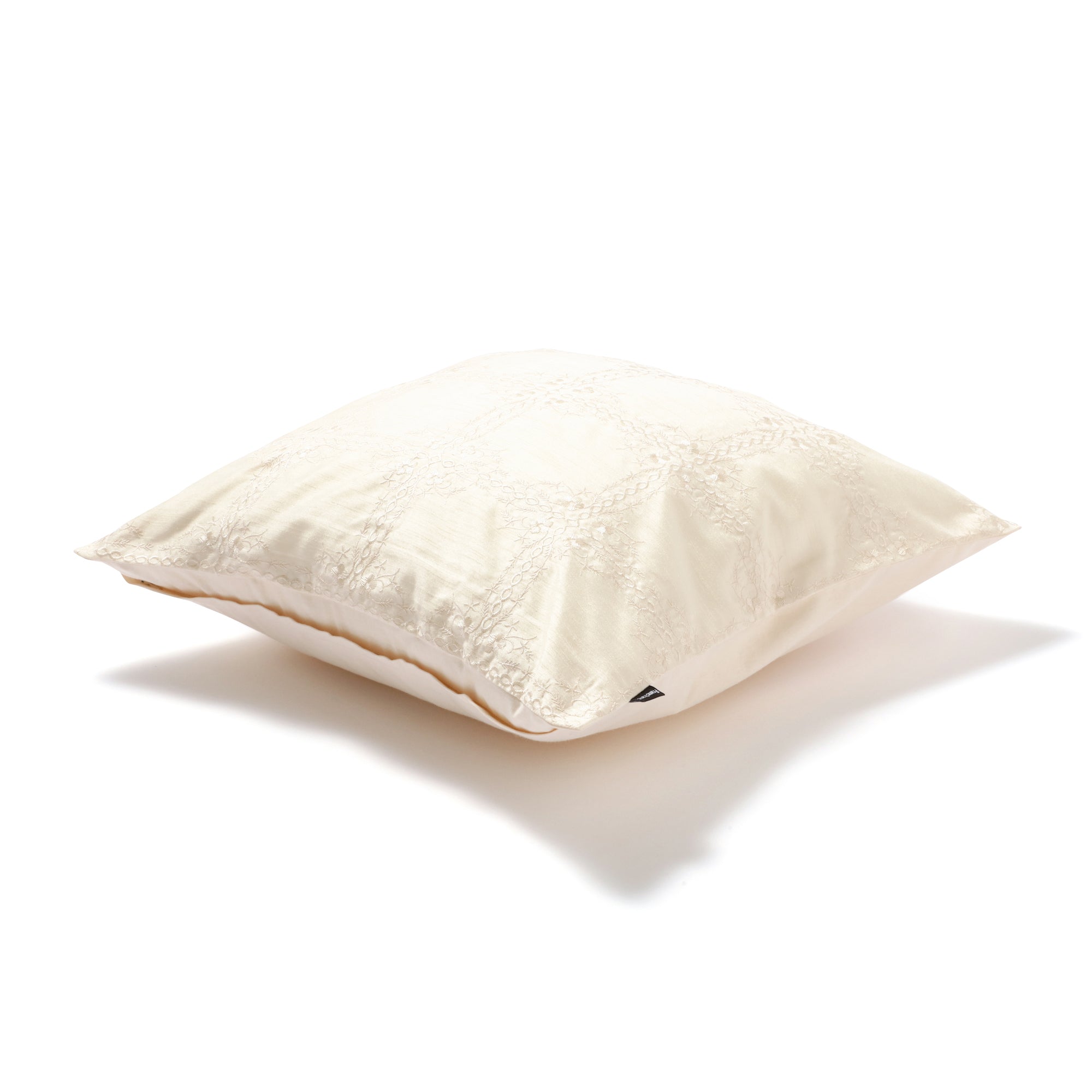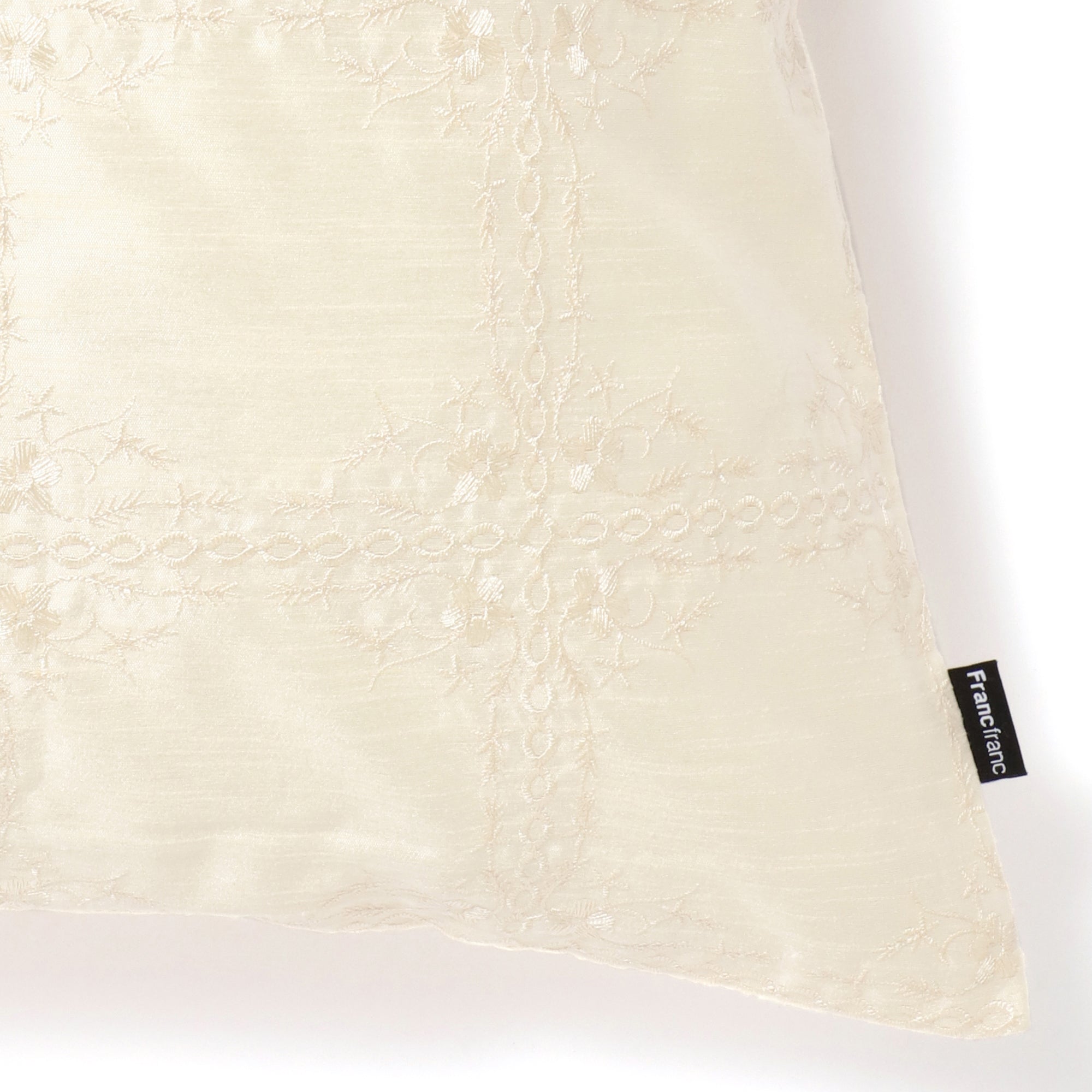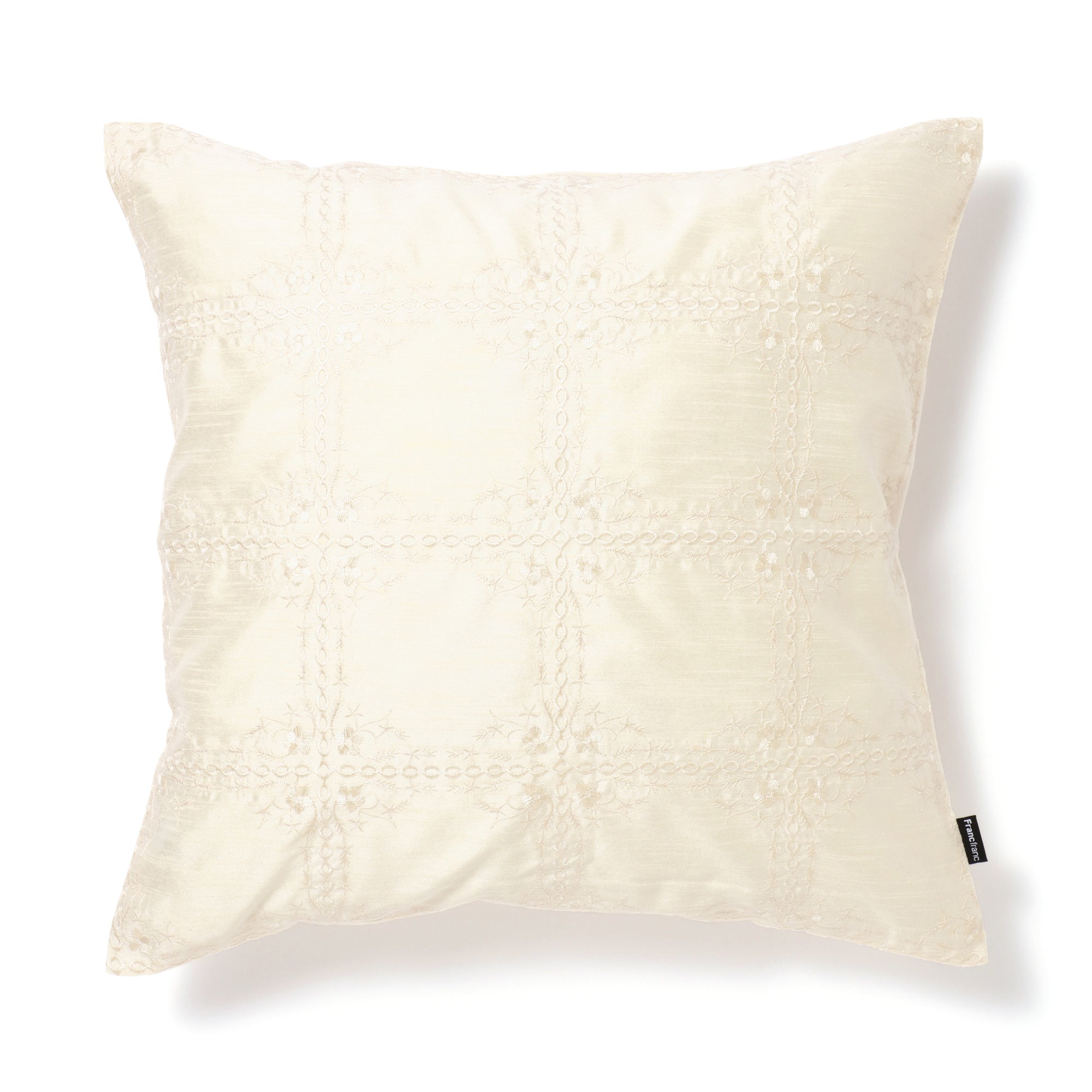 光沢感と透け感のある生地にオーナメント調の刺繍を施した上品なクッションカバーです。 ▼クッションカバーの中材(別売り)はこちら クッションヌード一覧