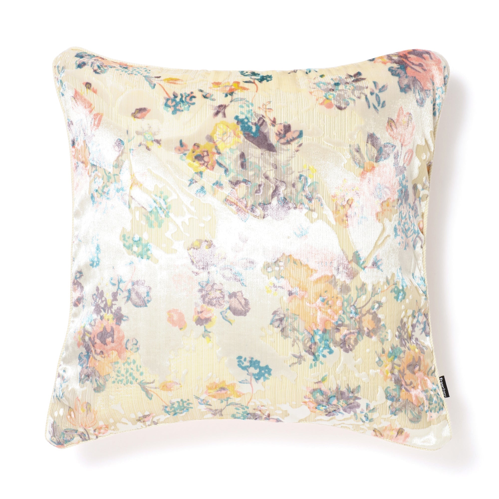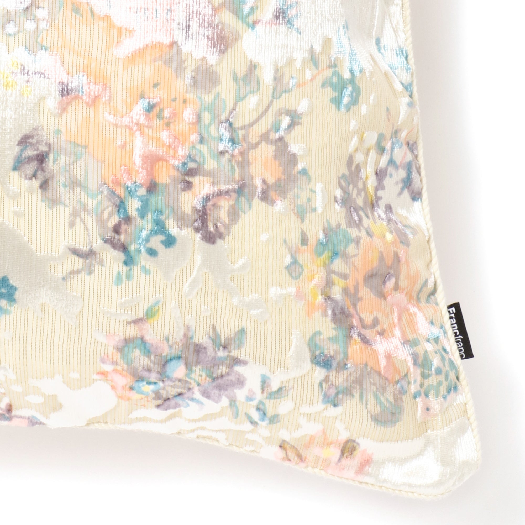 凹凸で柄を表現したビスコースベルベット生地に花柄プリントを施したクッションカバーです。 周囲に光沢感のあるロープをあしらい、華やかで高級感のある仕上がりとなっています。 ▼クッションカバーの中材(別売り)はこちら クッションヌード一覧