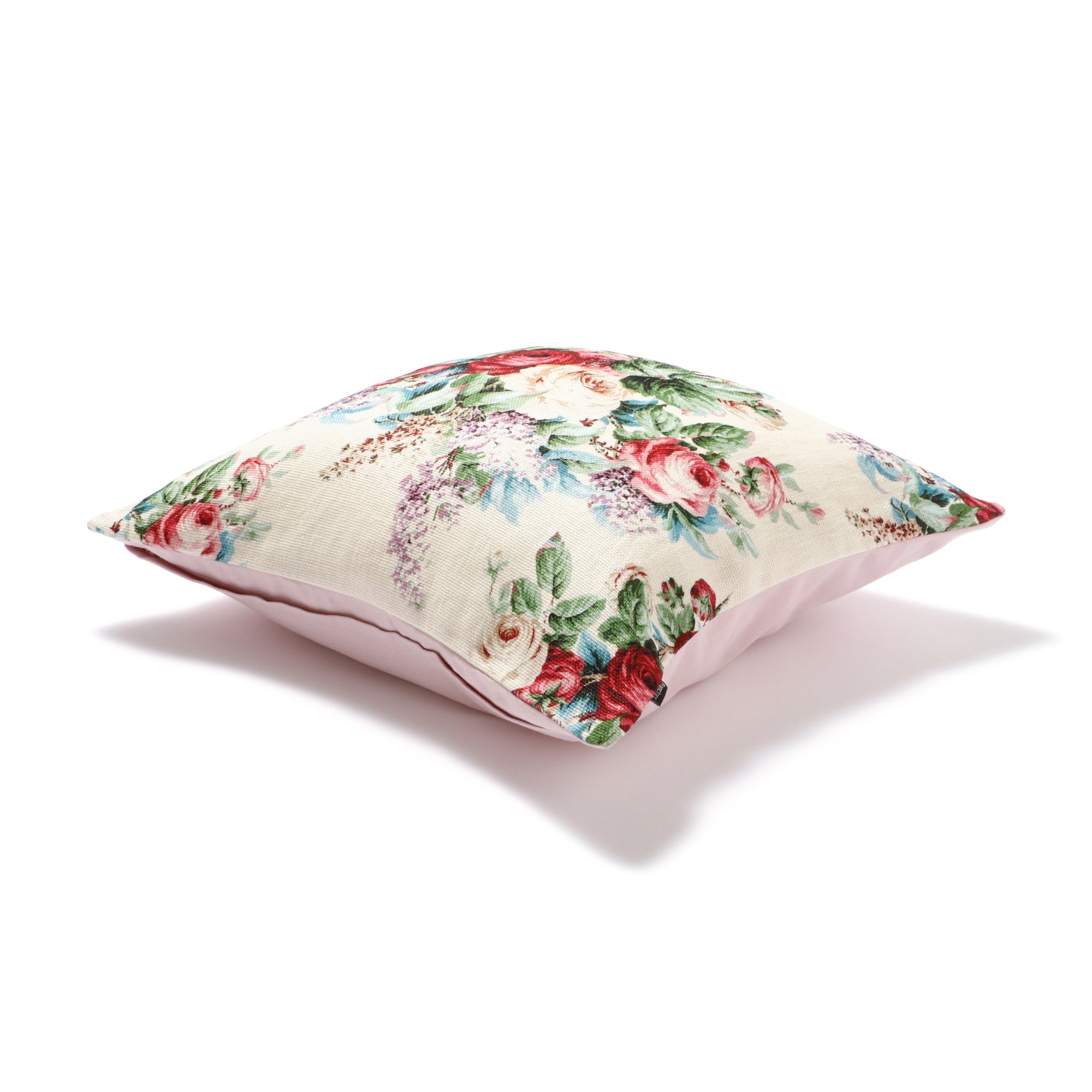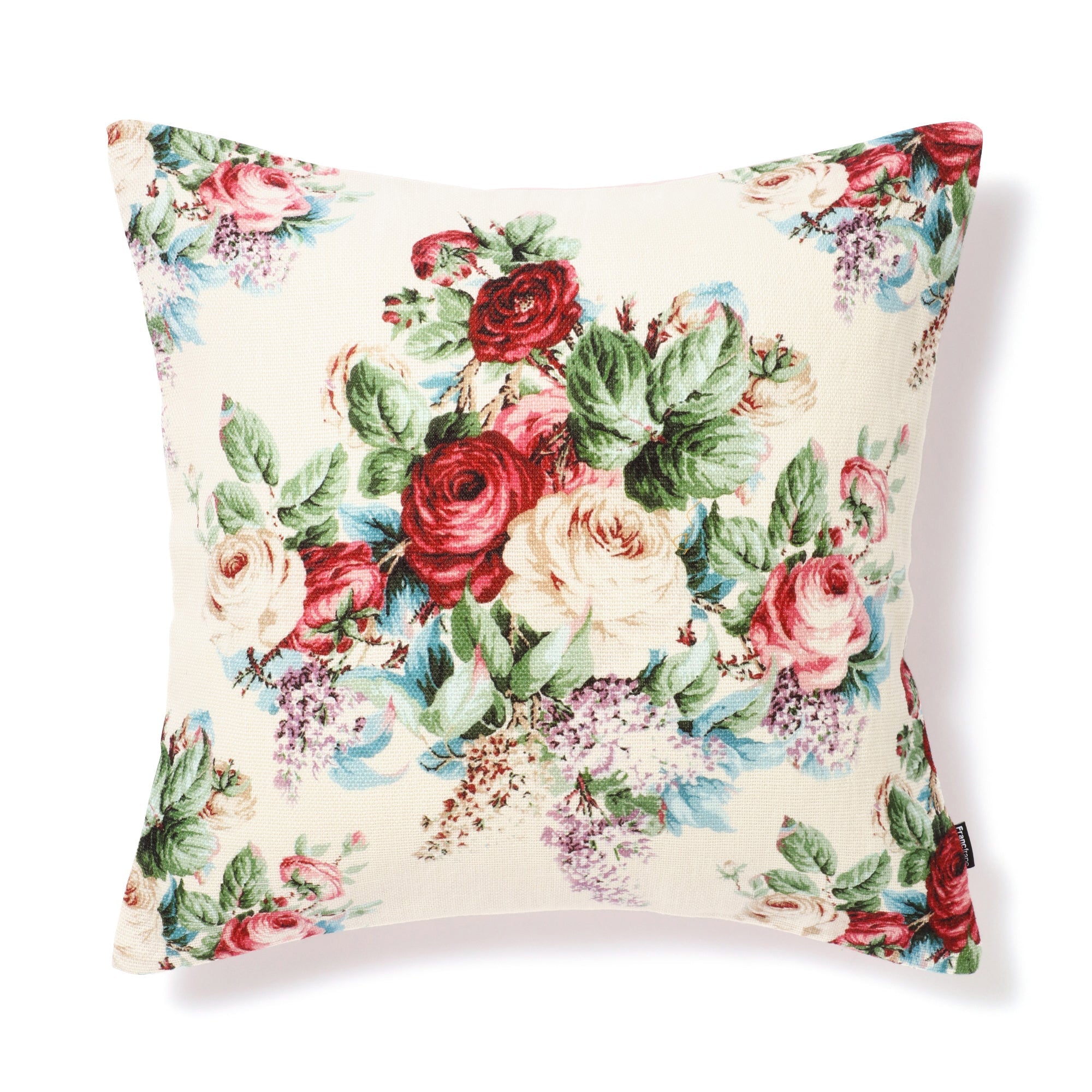 リネン生地に花柄を大きくプリントしたクラシックな雰囲気のクッションカバーです。 ▼クッションカバーの中材(別売り)はこちら クッションヌード一覧