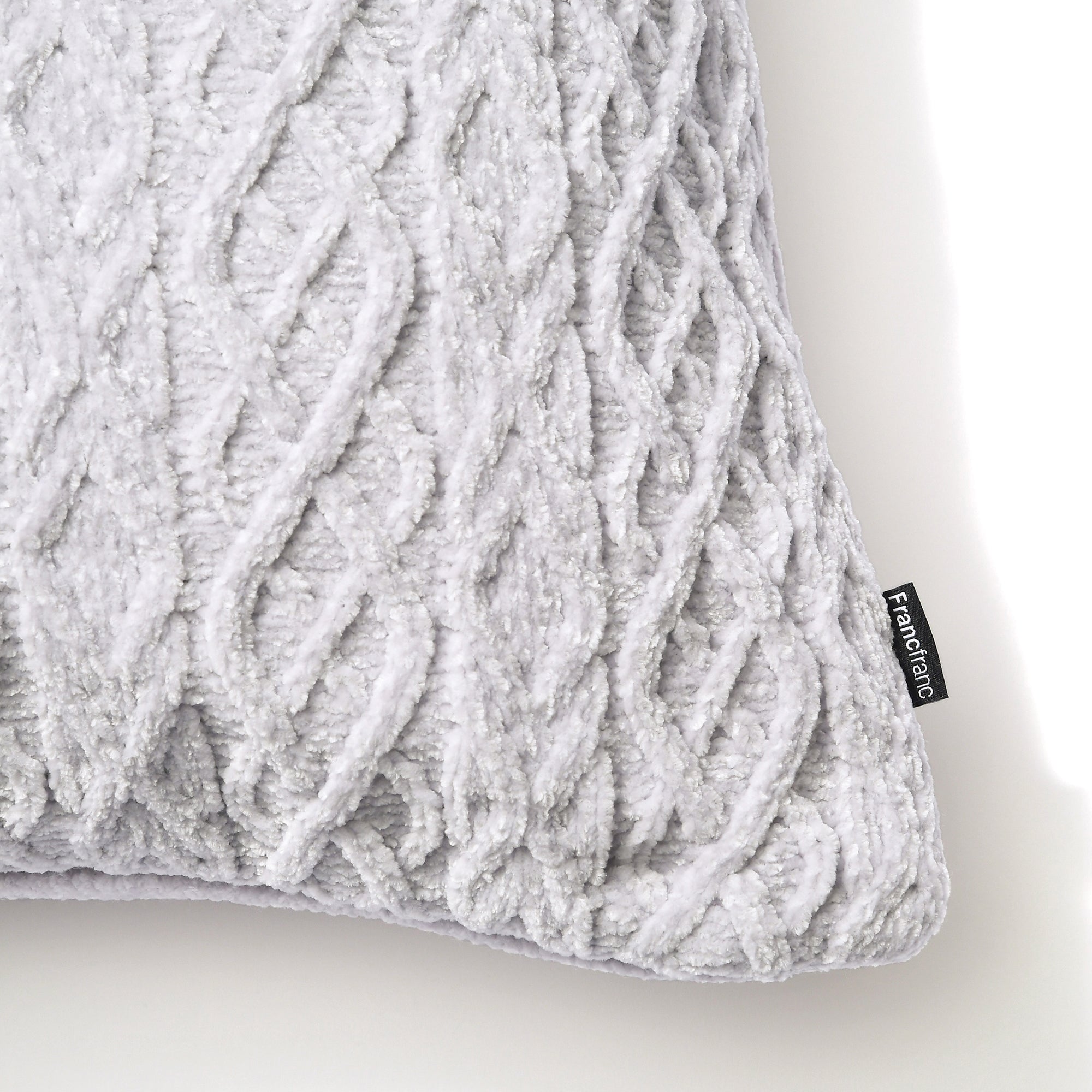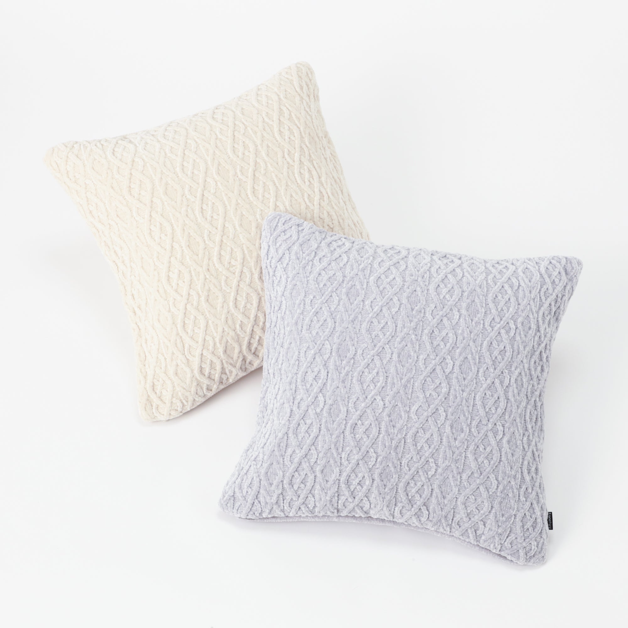 艶感のあるシェニール糸をケーブルニット柄に編み上げたクッションカバーです。 ▼クッションカバーの中材(別売り)はこちら クッションヌード一覧