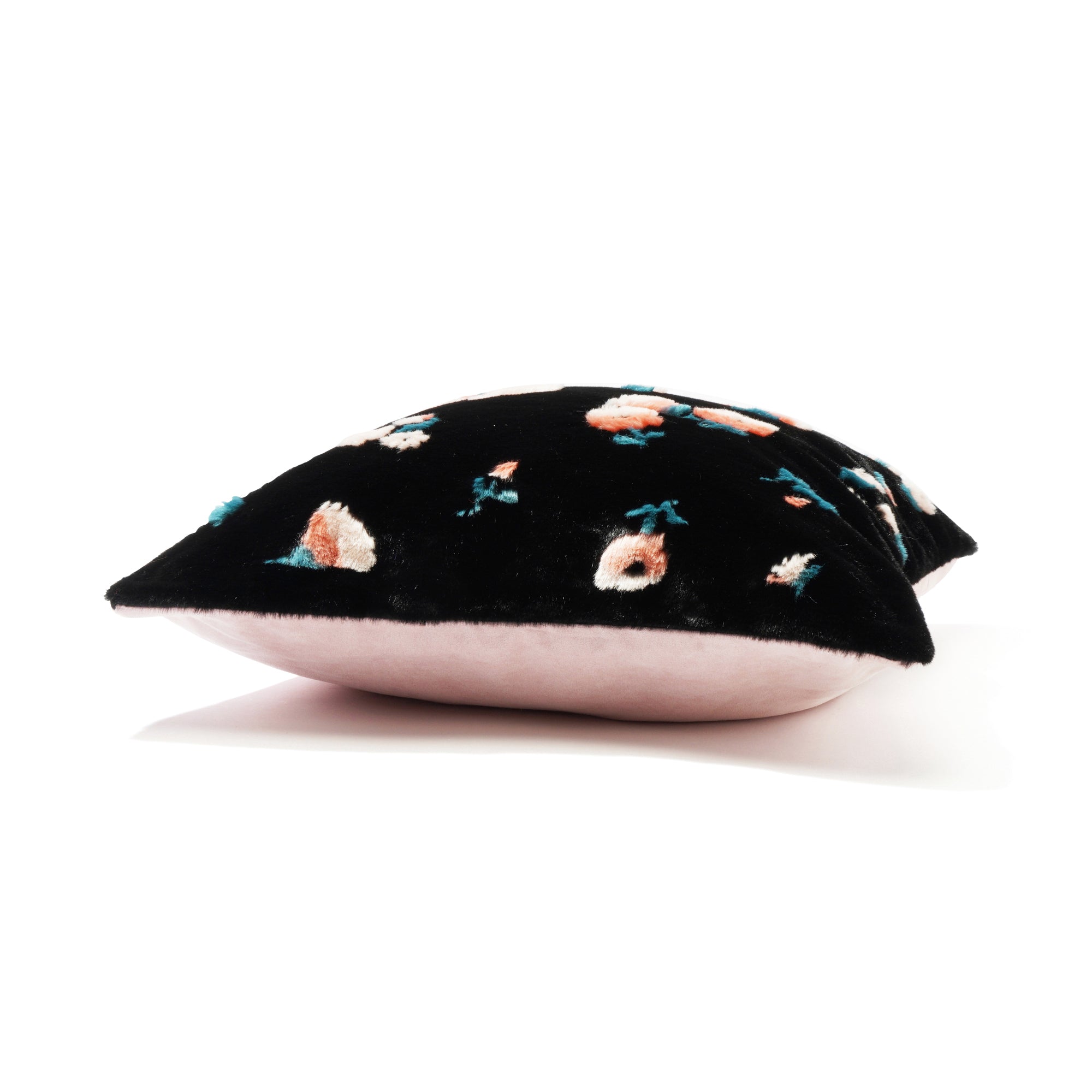 ファー クッションカバー 450×450 ブラック×ピンク(R-153)