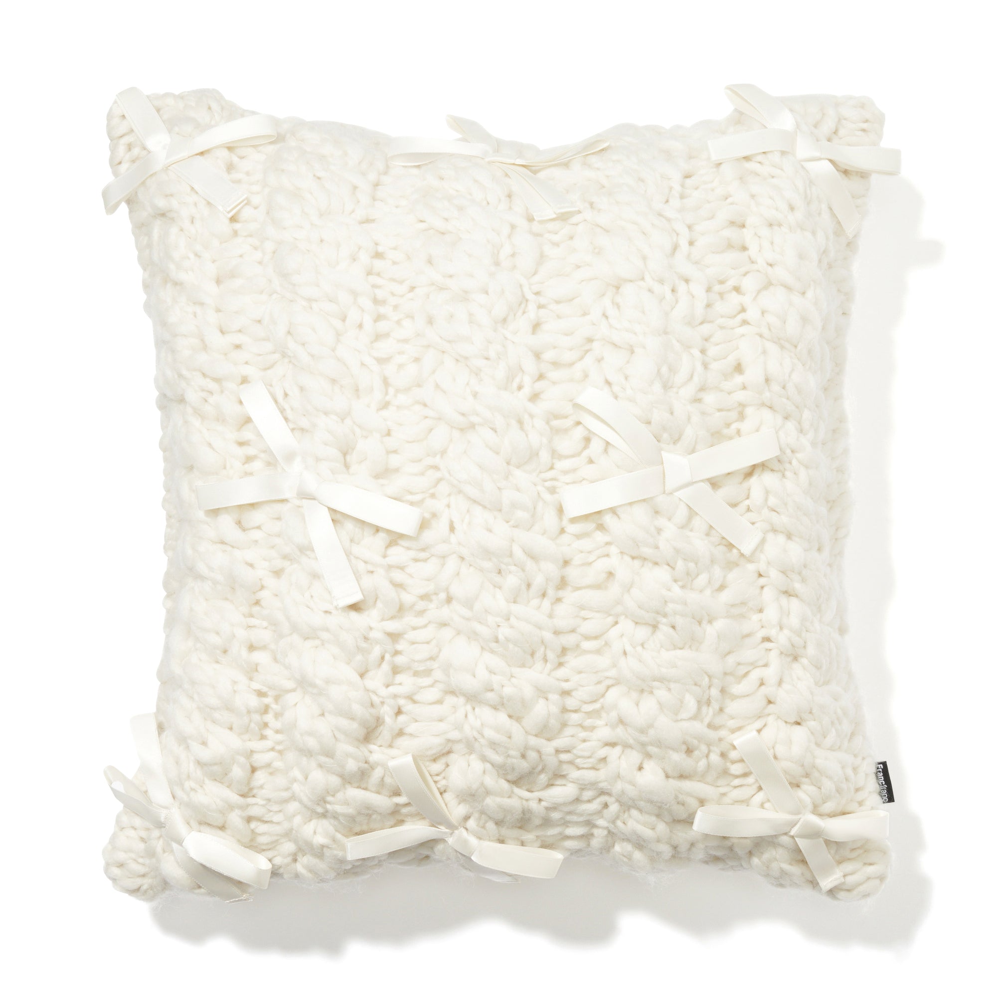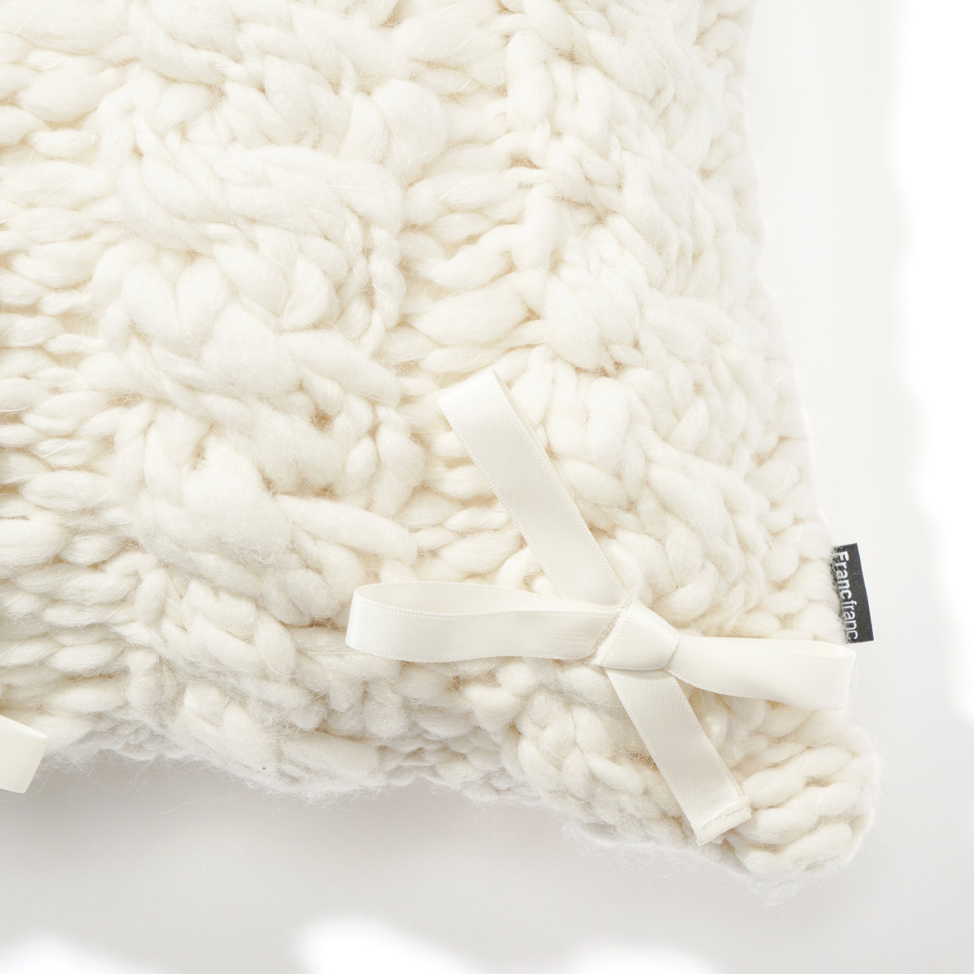 太番手で編み上げたニット生地にサテンのリボンをあしらったデザインです。 ▼クッションカバーの中材(別売り)はこちら クッションヌード一覧