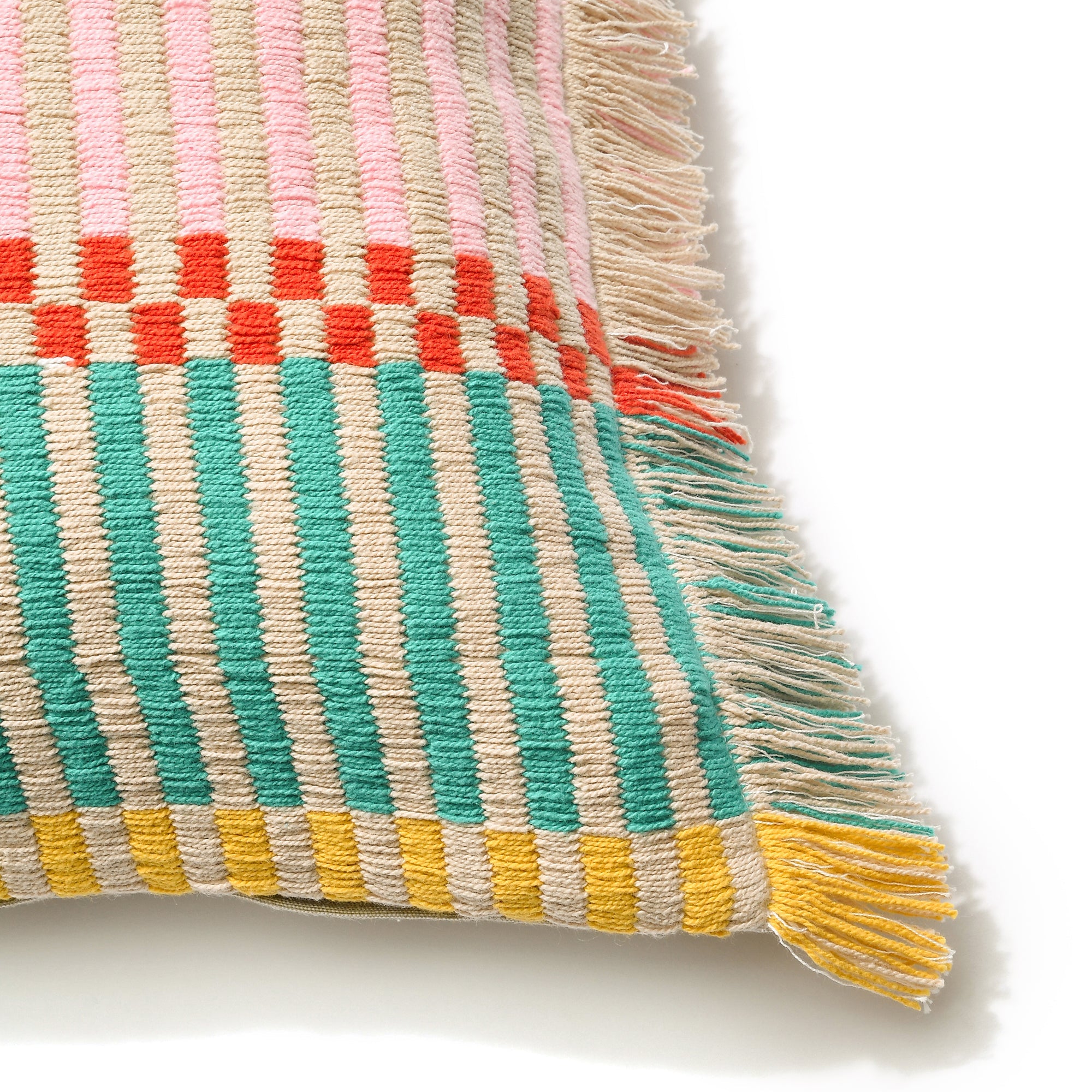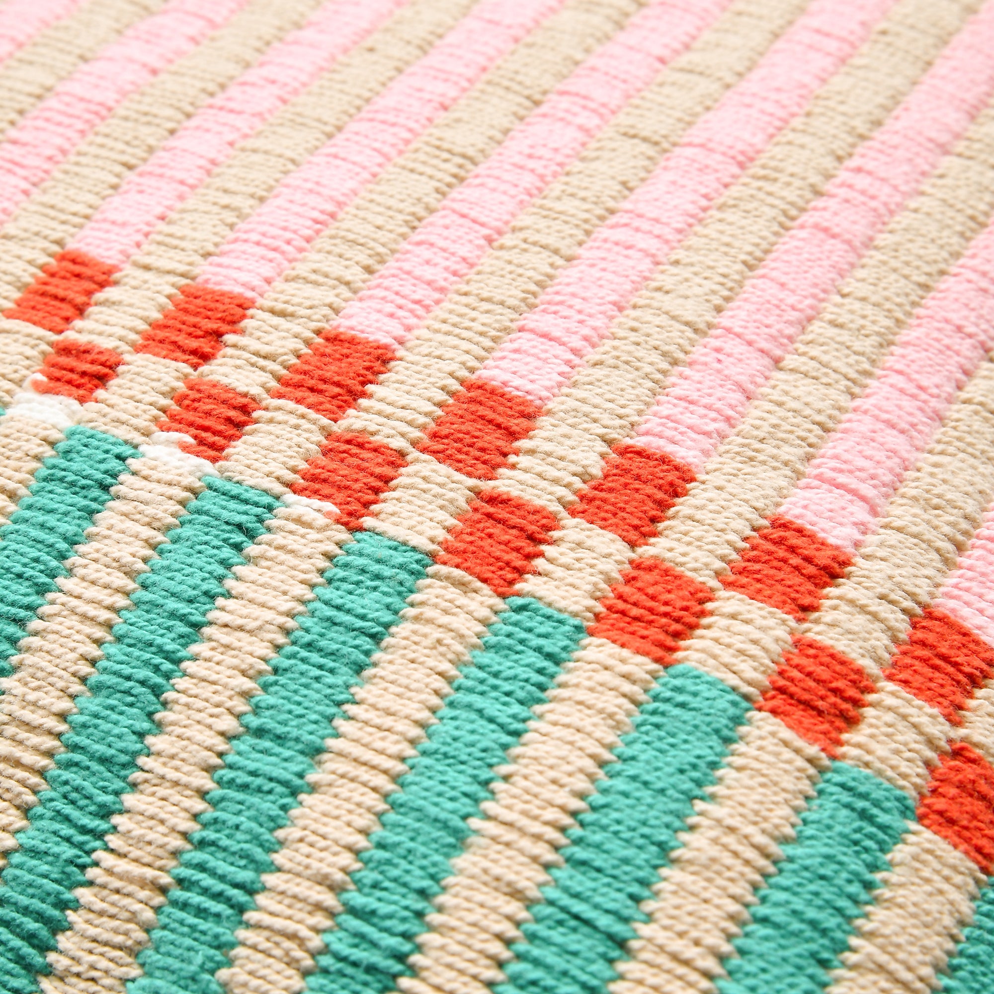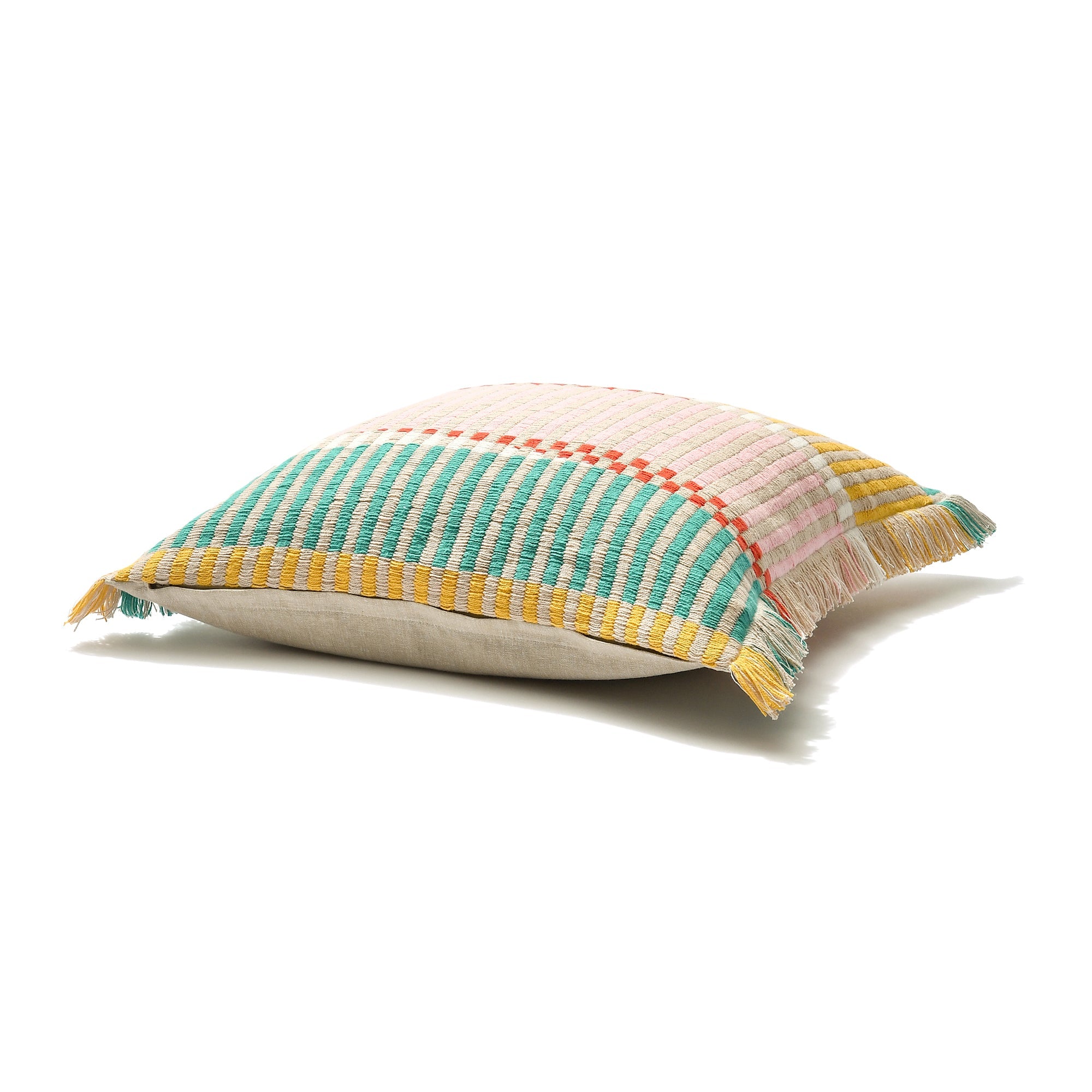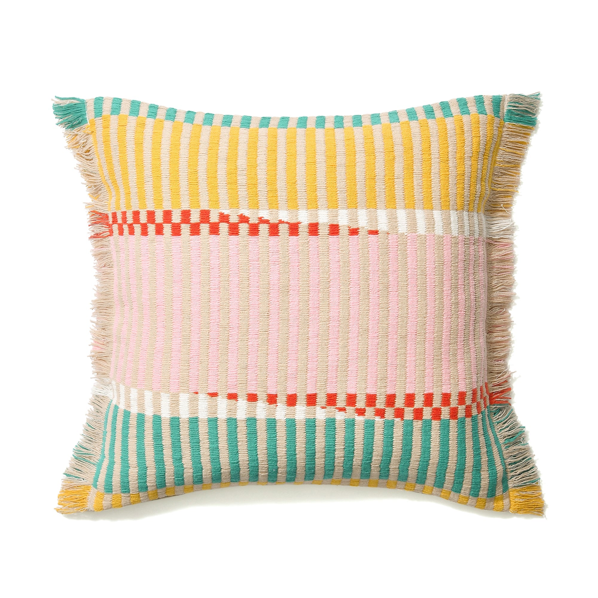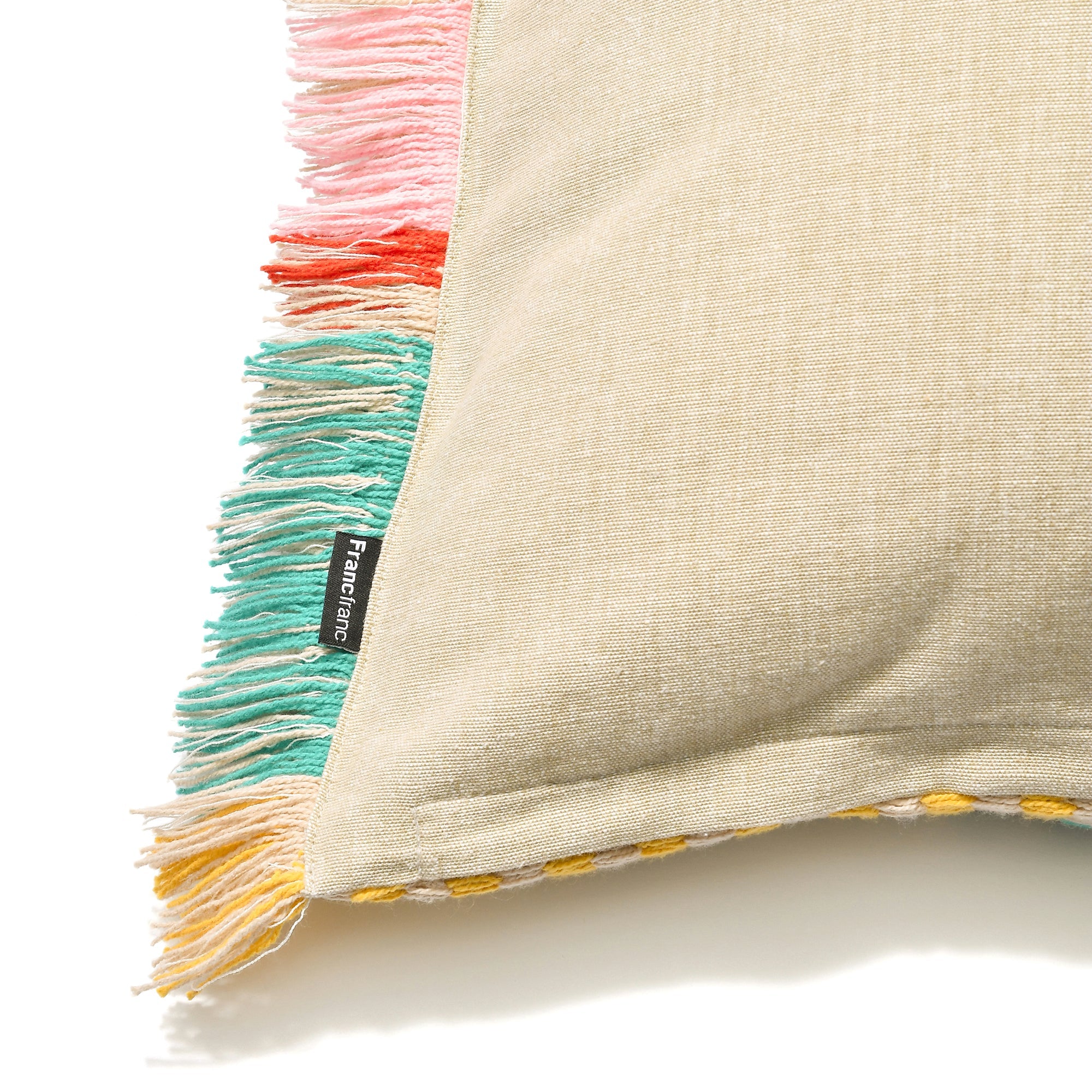 太番手の多色の糸を使用しフリンジを残したクッションカバーです。 ▼クッションカバーの中材(別売り)はこちら クッションヌード一覧