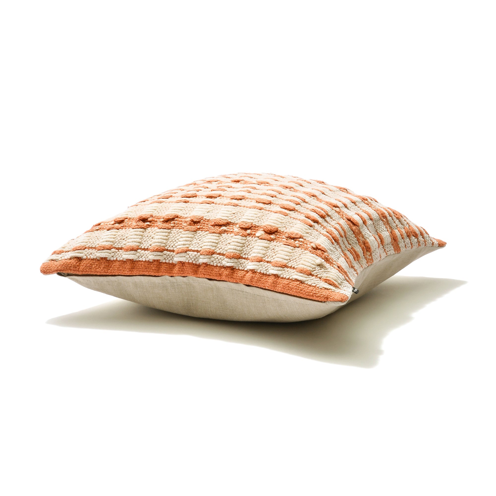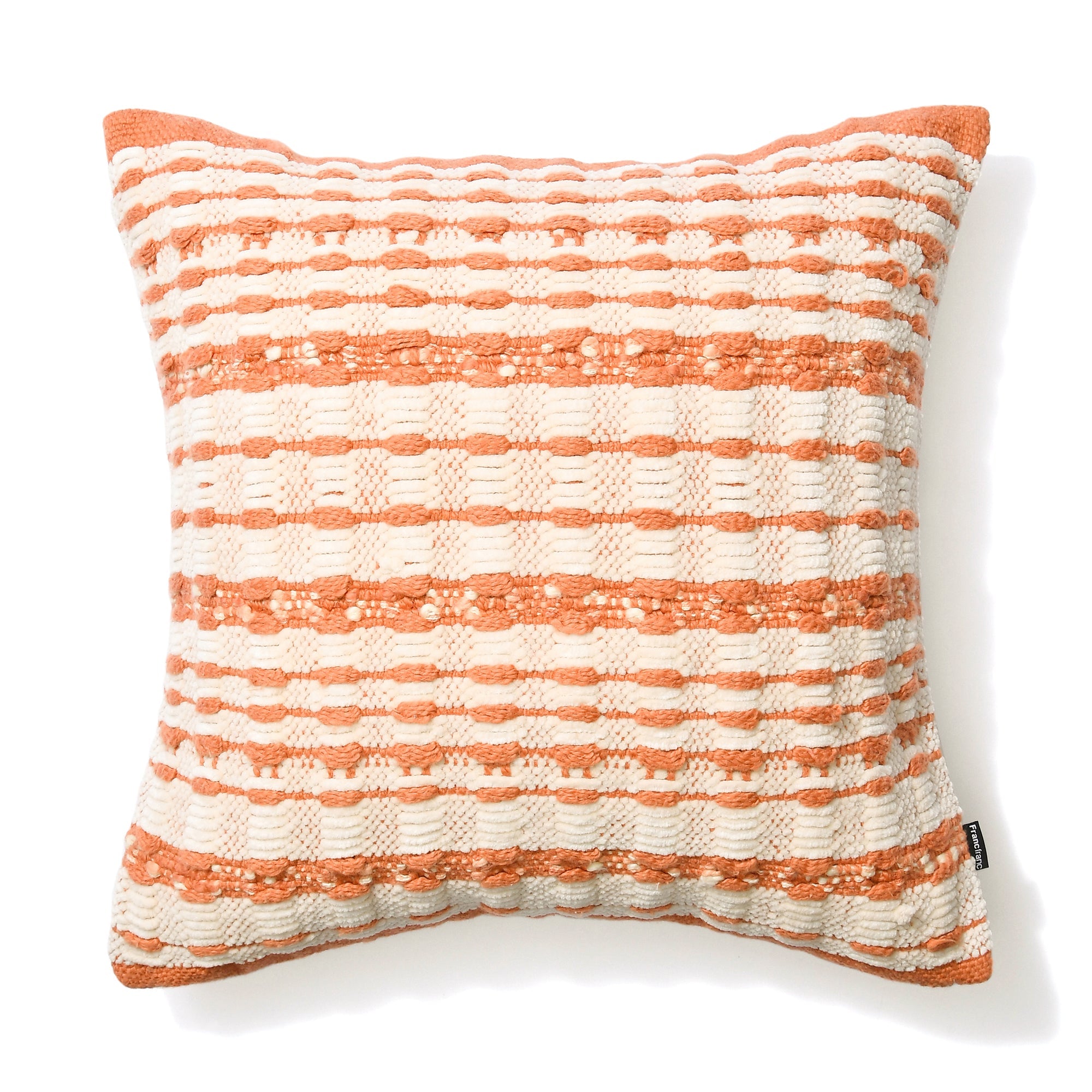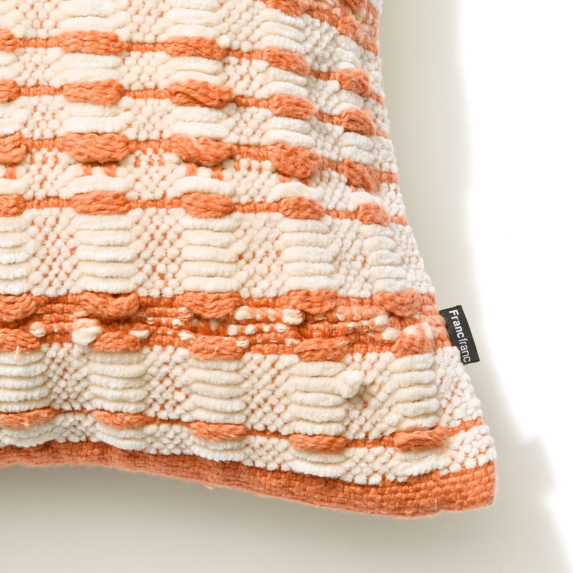 ウィーブボーダー クッションカバー 450×450 アイボリー×オレンジ(140)