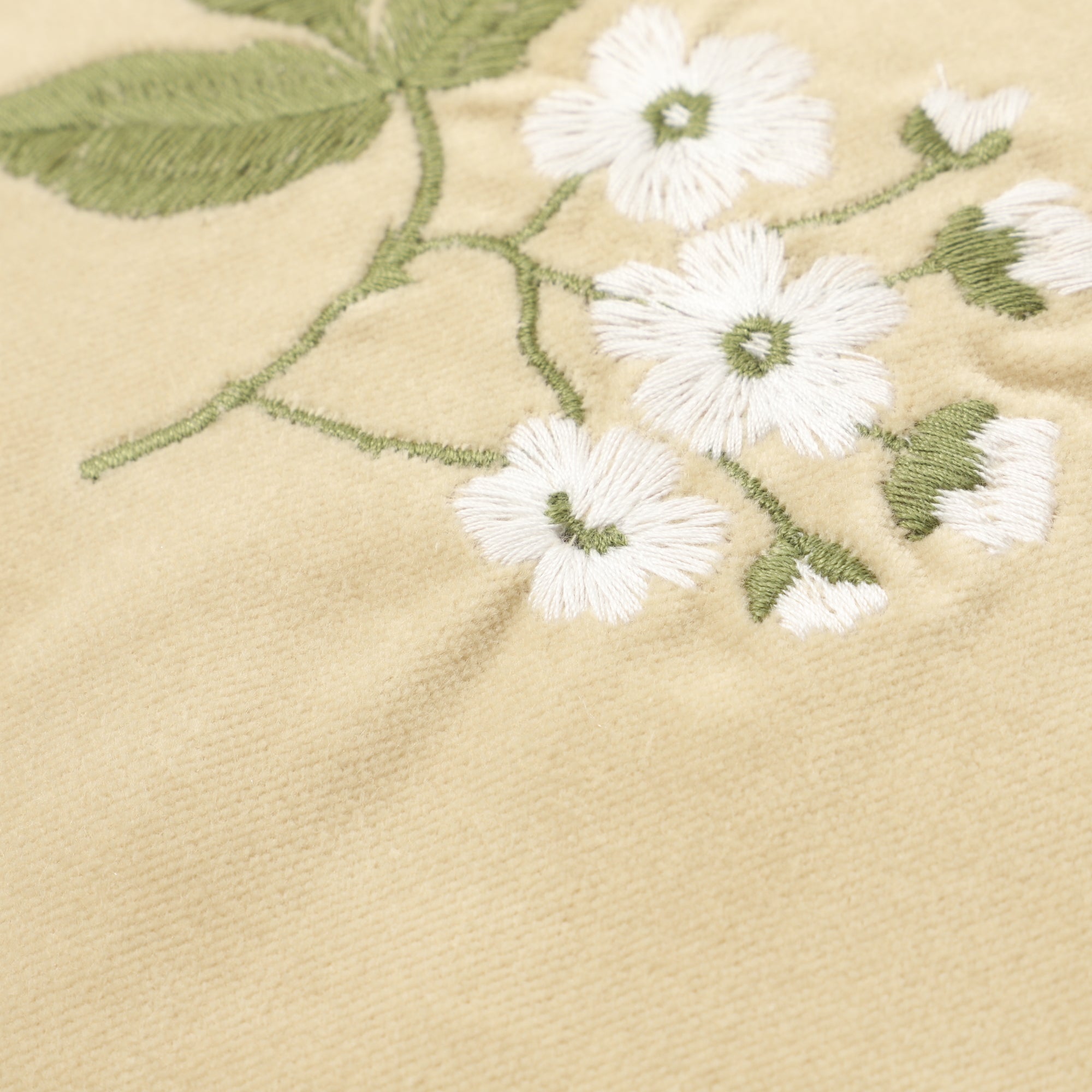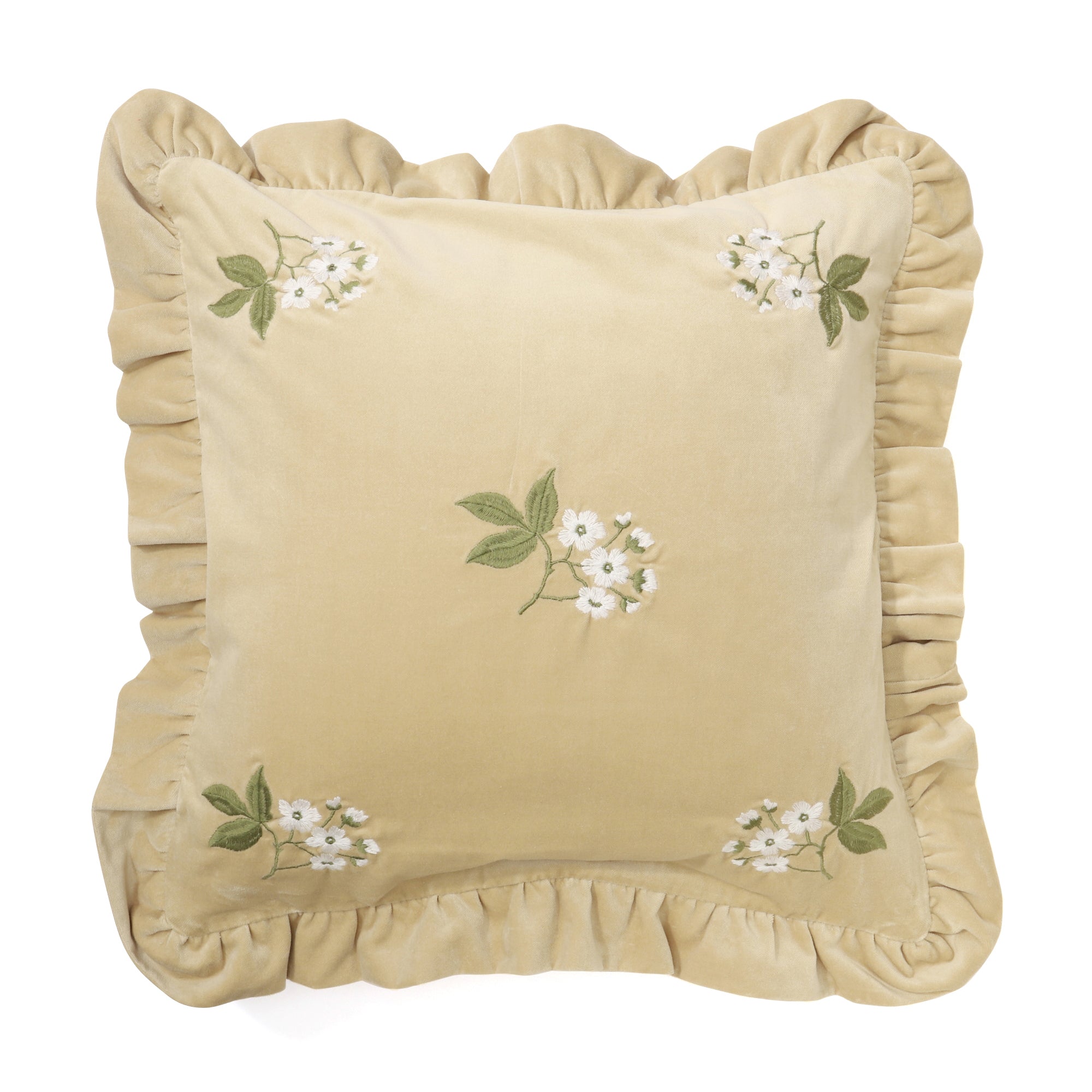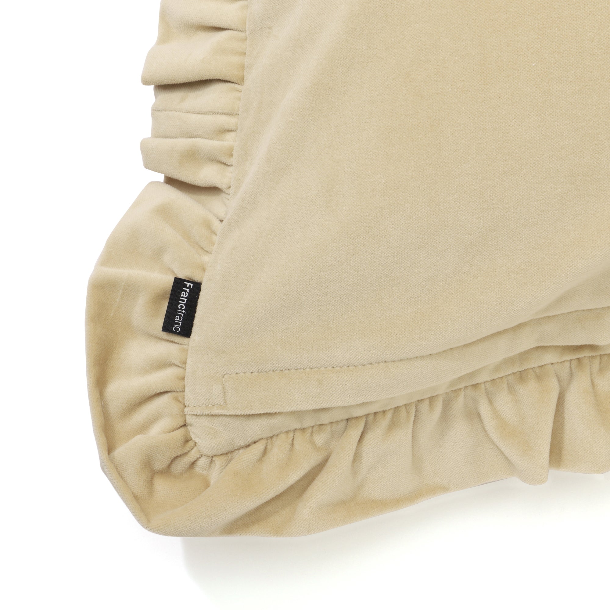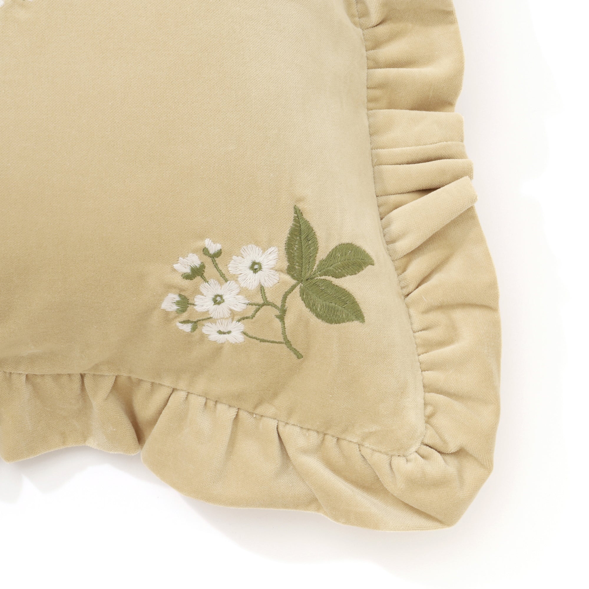 ベルベット生地に花柄の刺繍を施し、周囲にたっぷりフリルをあしらったクッションカバーです。 ▼クッションカバーの中材(別売り)はこちら クッションヌード一覧