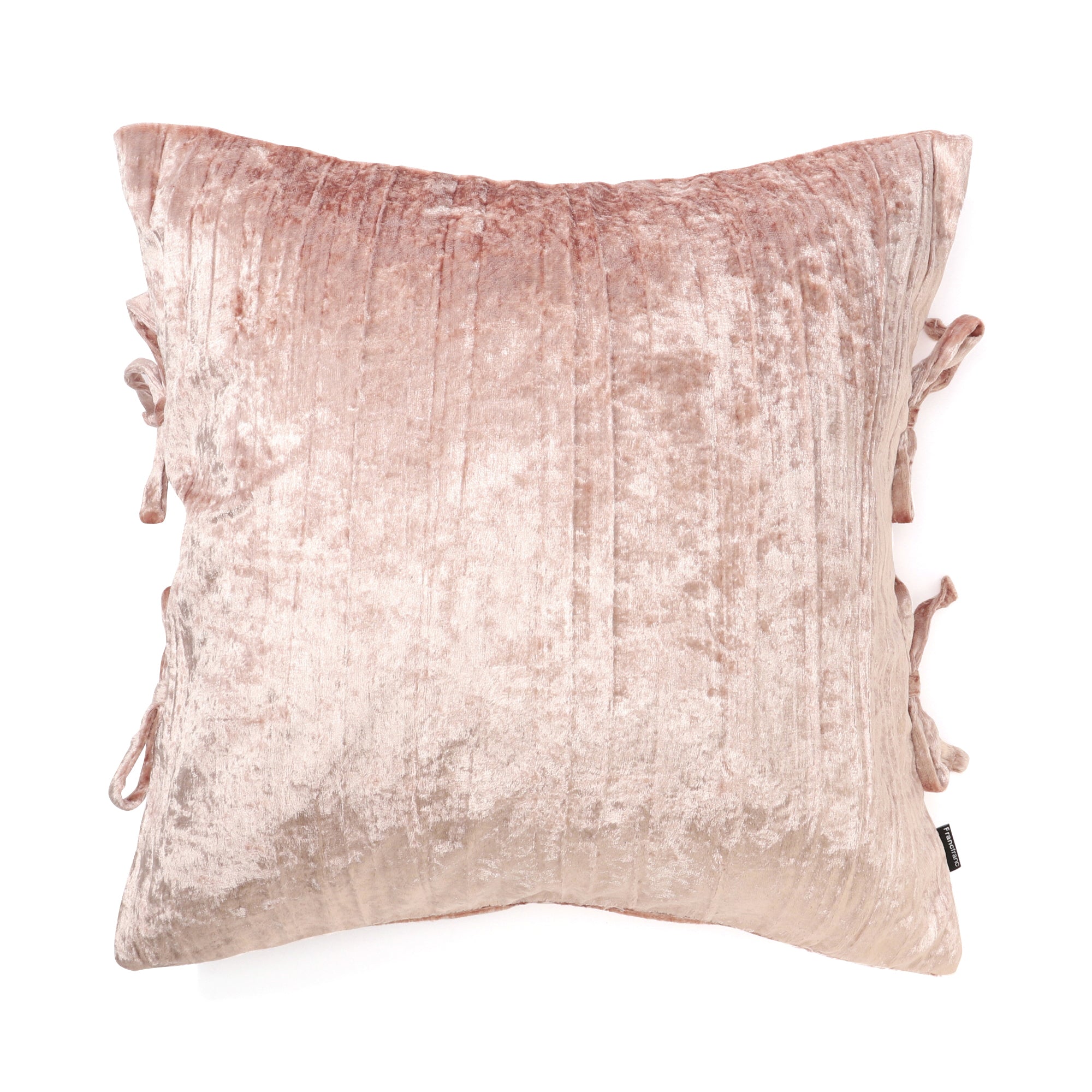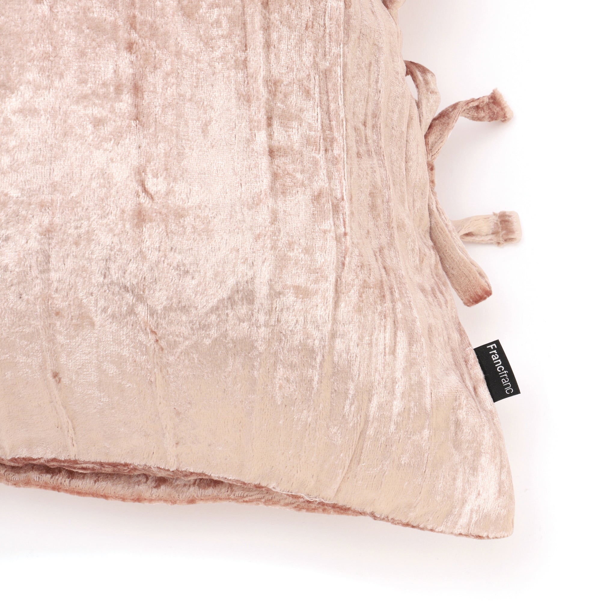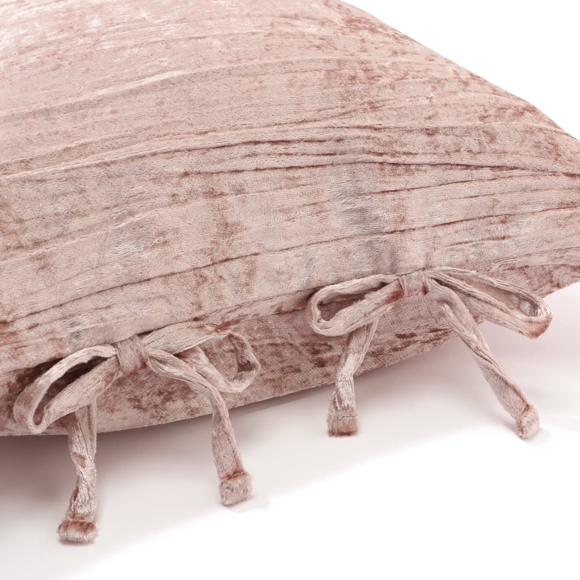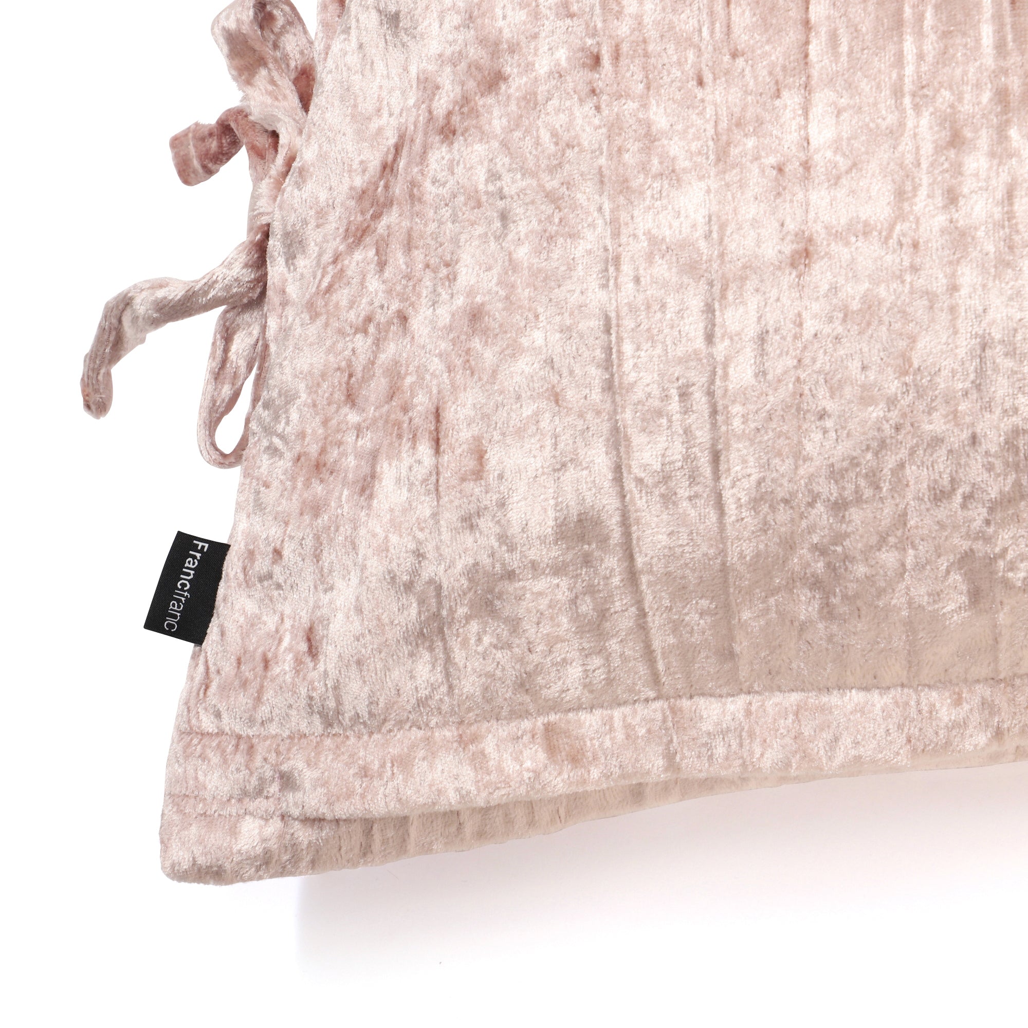 光沢感のあるクラッシュベルベット生地に、左右にリボンを装飾したクッションカバーです。 ▼クッションカバーの中材(別売り)はこちら クッションヌード一覧