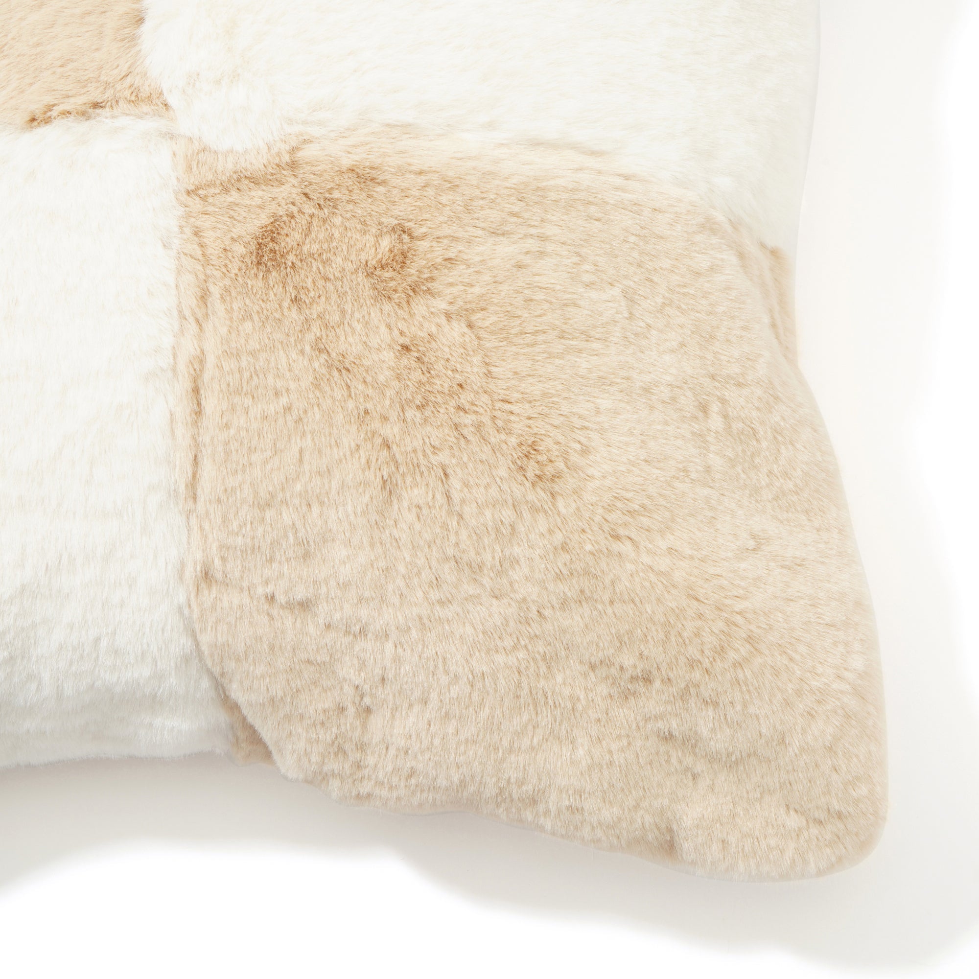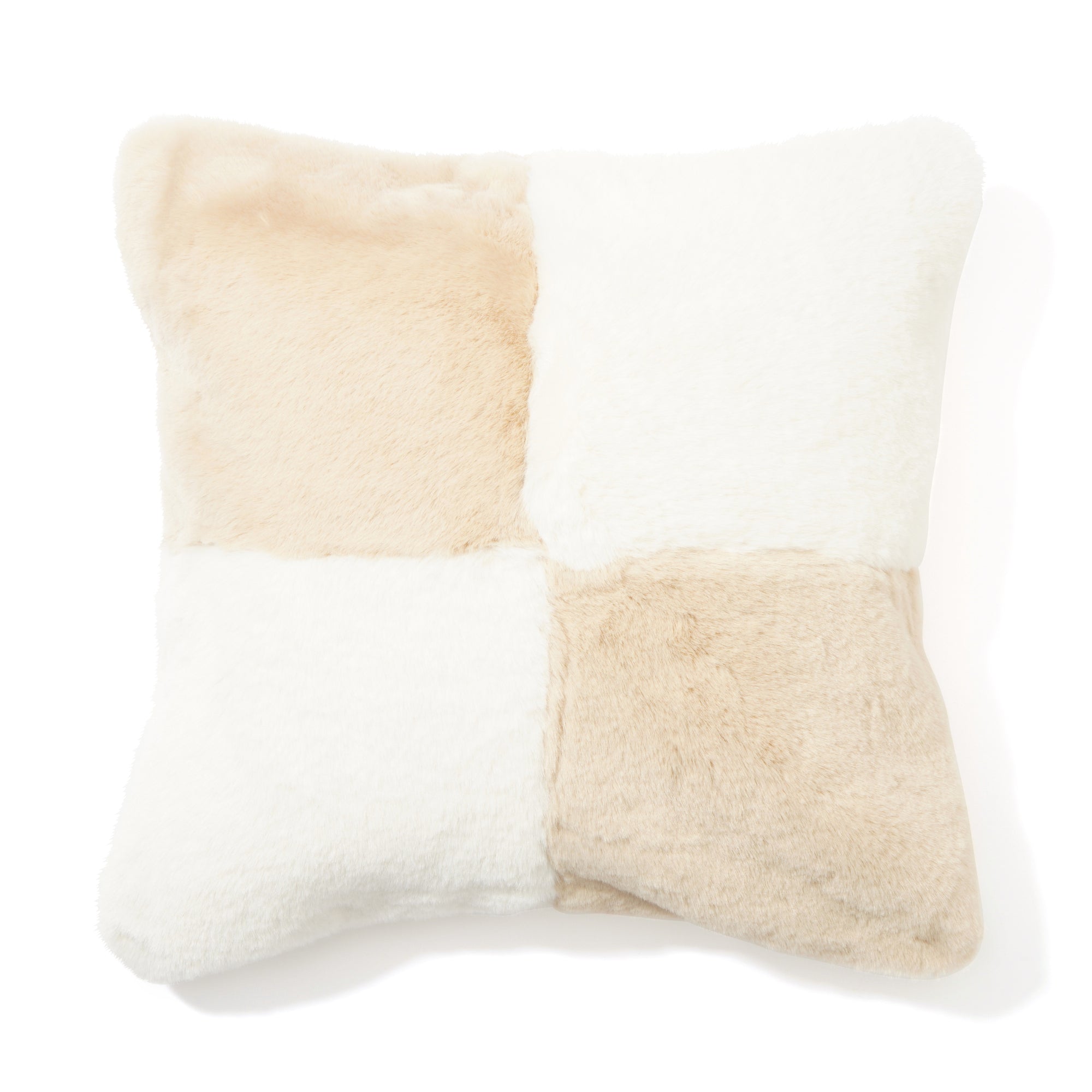 ボリュームある2色のファーをブロックチェック柄にデザインしたクッションカバーです。 ▼クッションカバーの中材(別売り)はこちら クッションヌード一覧