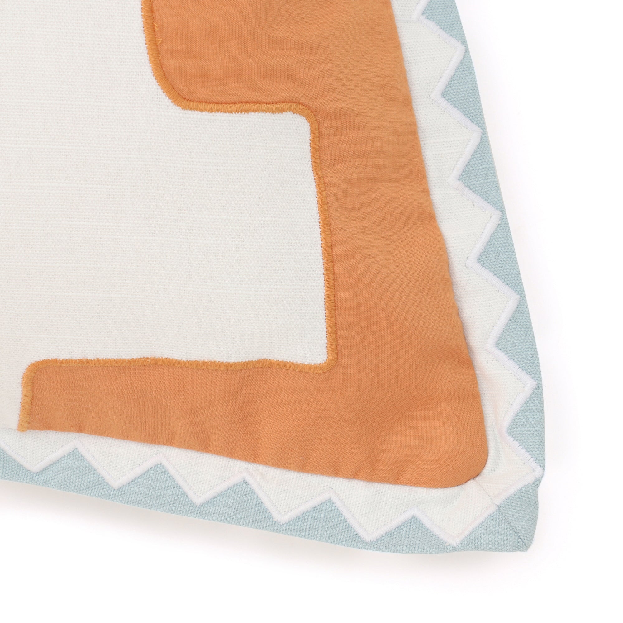 有機的なデザインが美しいクッションカバーです。ゆるやかな曲線で描かれた幾何学模様を刺繍とプリントで立体感たっぷりに表現しました。目を引くアクセントとしてスタイリッシュにお部屋を彩ります。