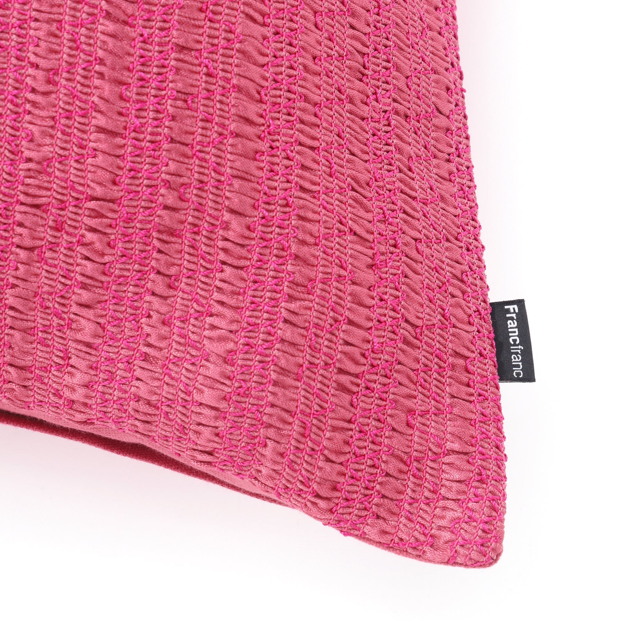 ツヤのある生地に細かなギャザーを施したクッションカバーです。ギャザーのピッチを変えることでストライプ柄に変化をつけたおしゃれなデザイン。ひねりの効いた上品な色合いがシックなコーディネートにぴったりです。