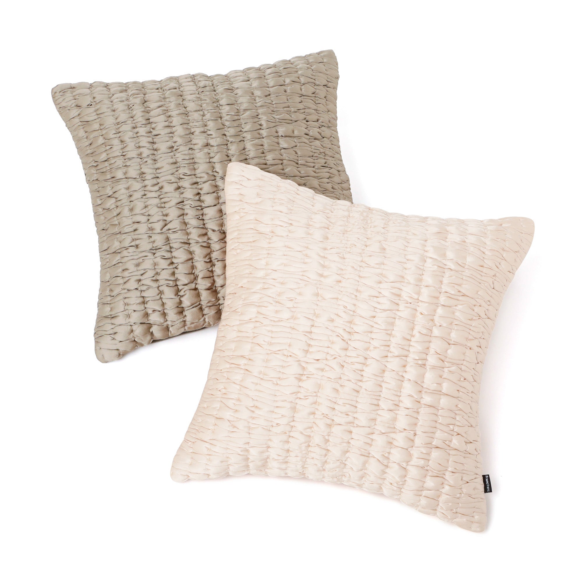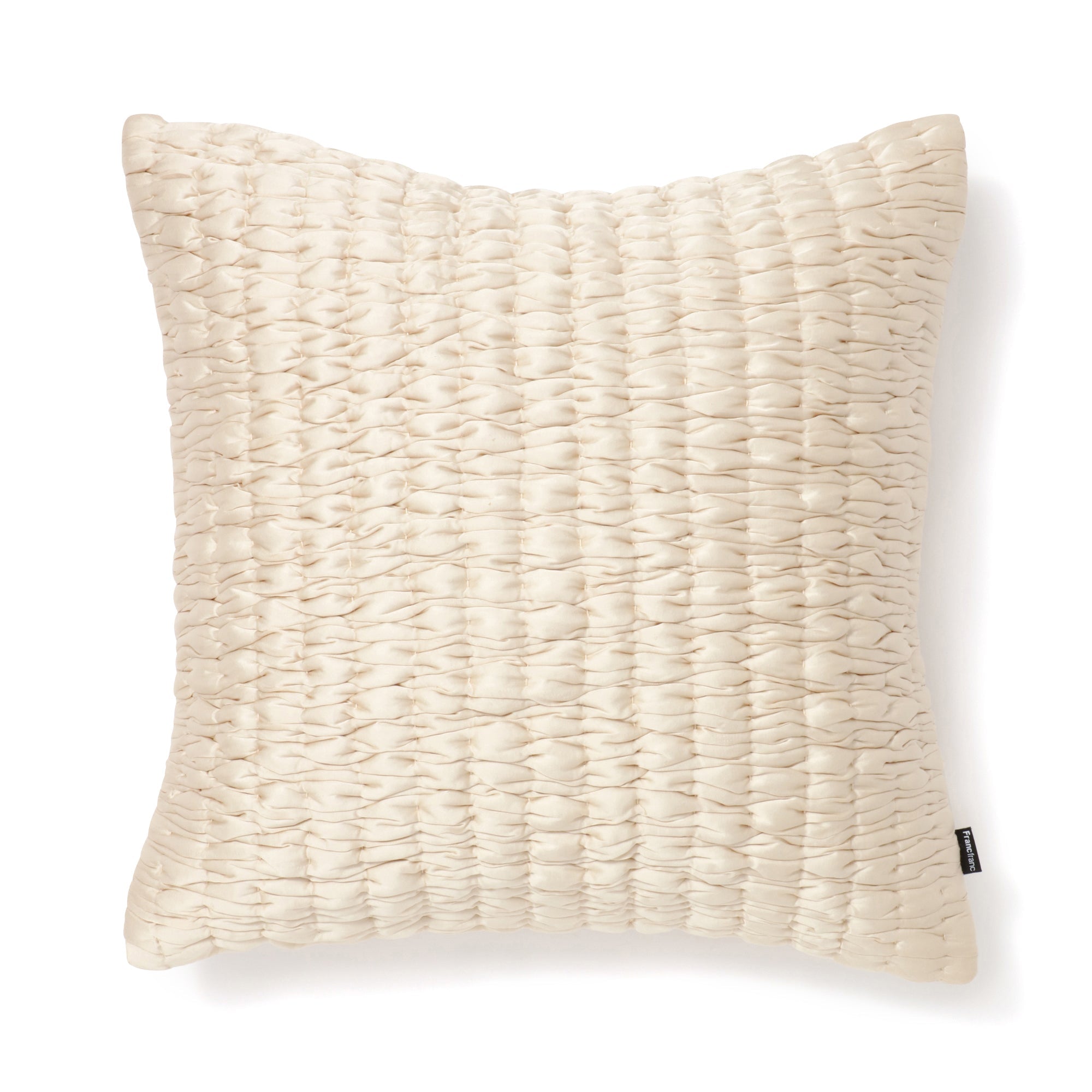上品なツヤをまとった柔らかな生地にギャザーステッチを施した表情豊かなクッションカバーです。シンプルなデザインが素材の上質感をより一層引き立て、上品で洗練された仕上がりを実現しています。