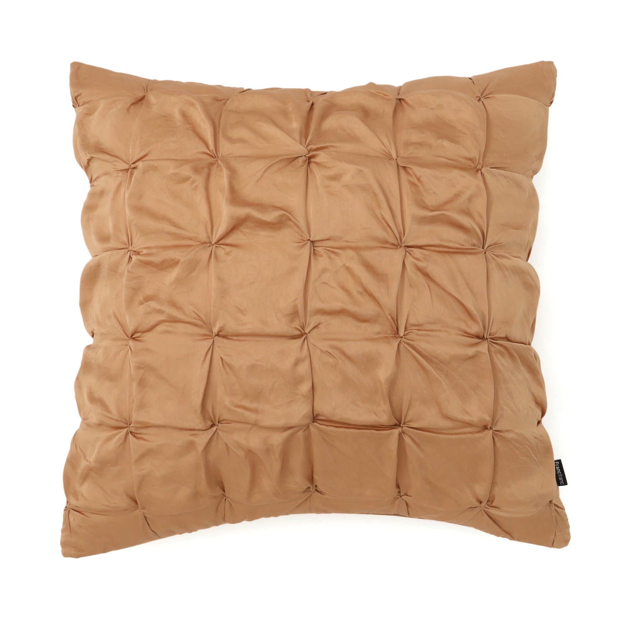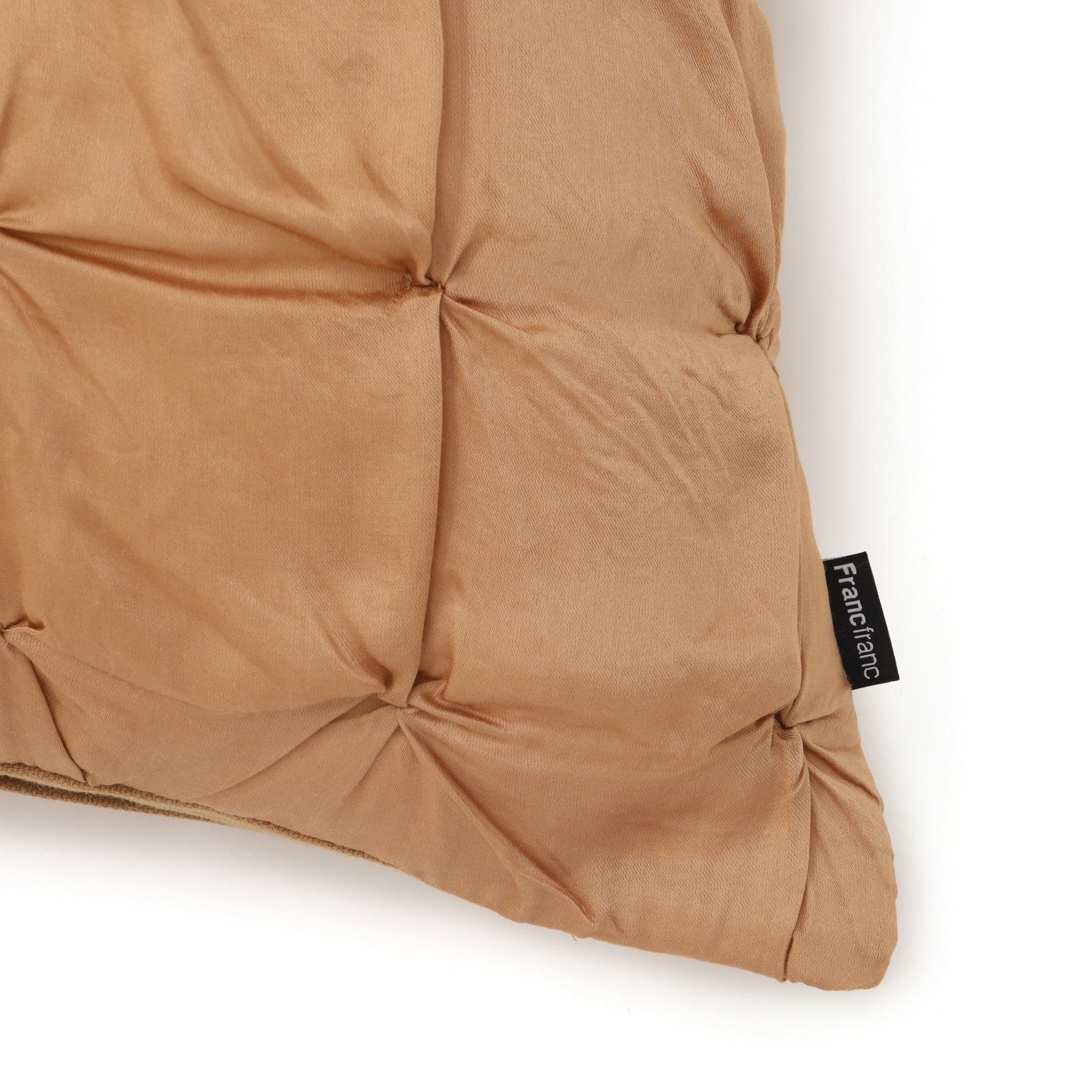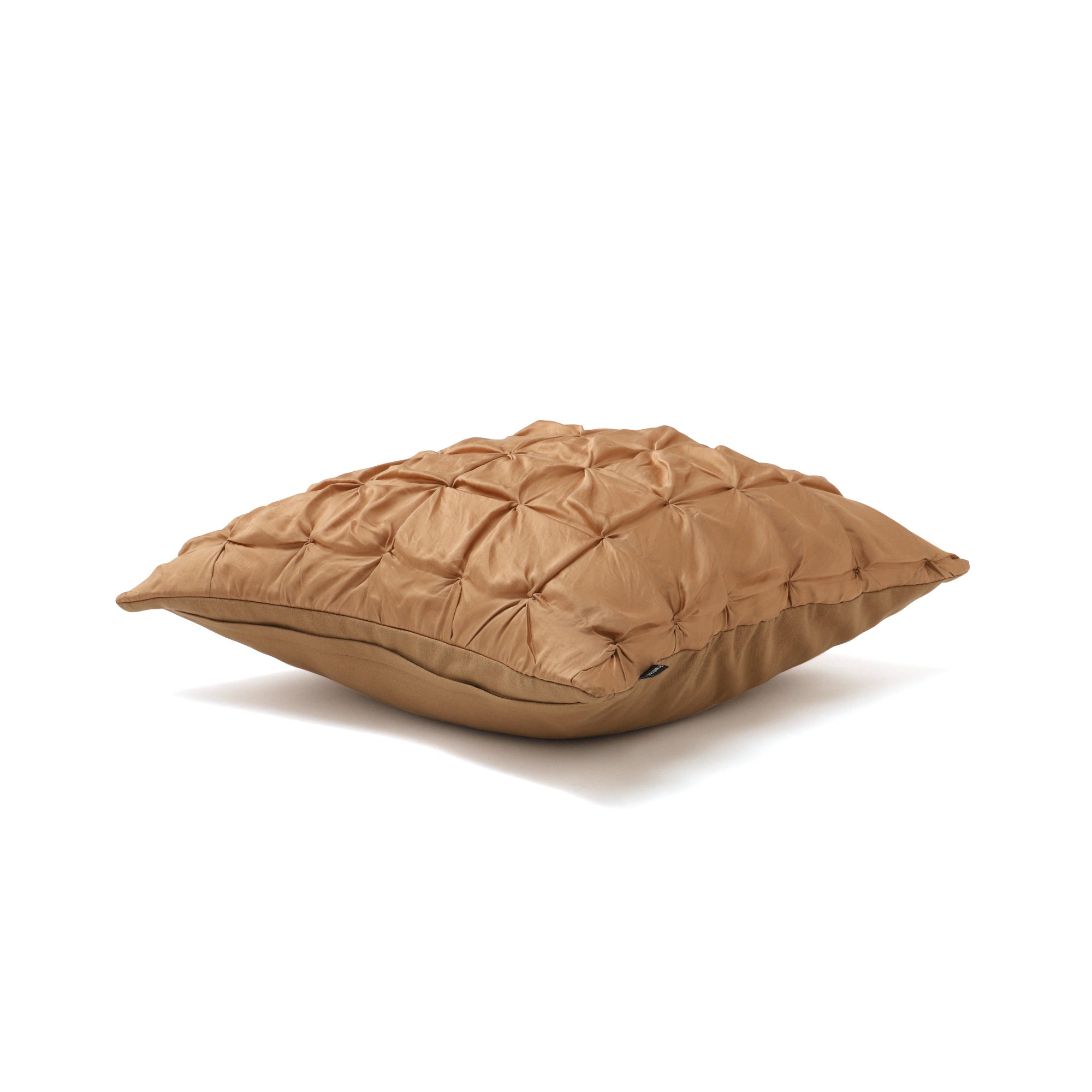 ツヤのある柔らかな生地に格子状のスモッキングを施し、立体感を巧みに表現したクッションカバーです。スモッキングによって生地の表情が引き立ち、上品で洗練された印象を与えます。