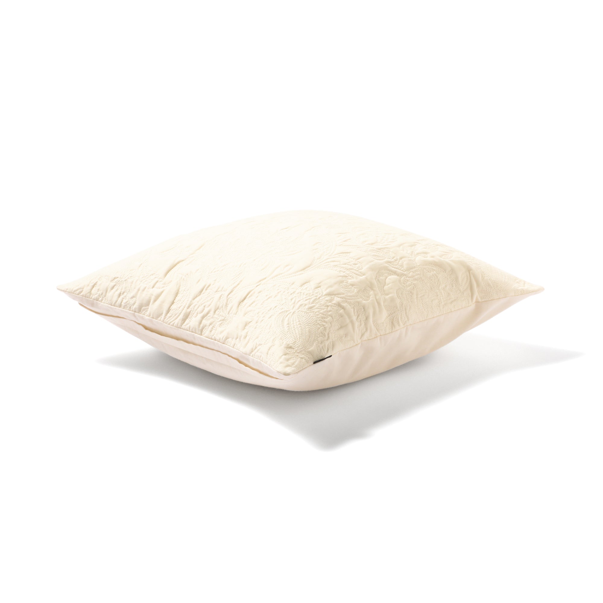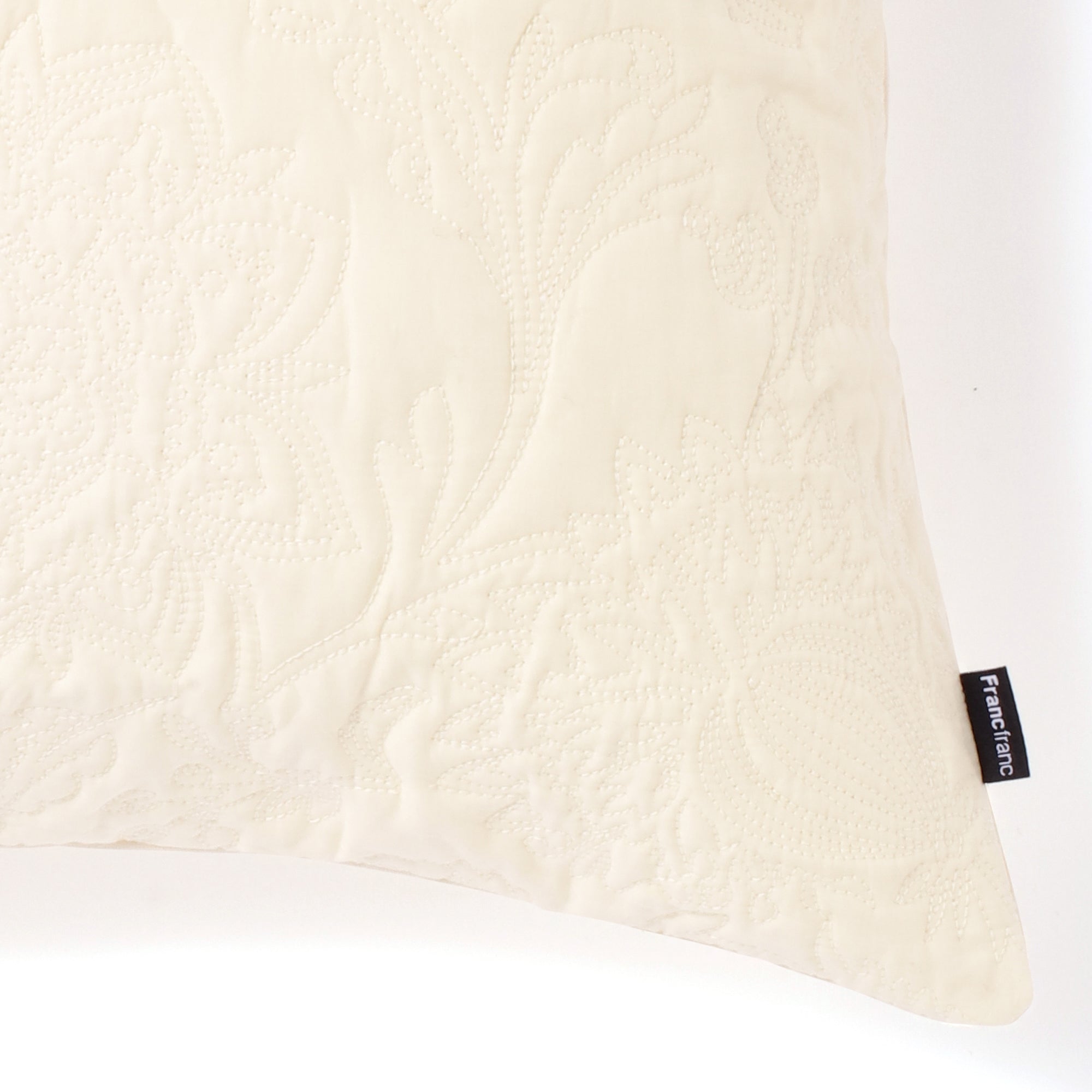 繊細なキルトステッチでダマスク柄を浮かび上がらせたクッションカバーです。立体感のあるパターンが、シンプルな空間に華やかなアクセントを加え、上品で洗練された雰囲気を演出します。