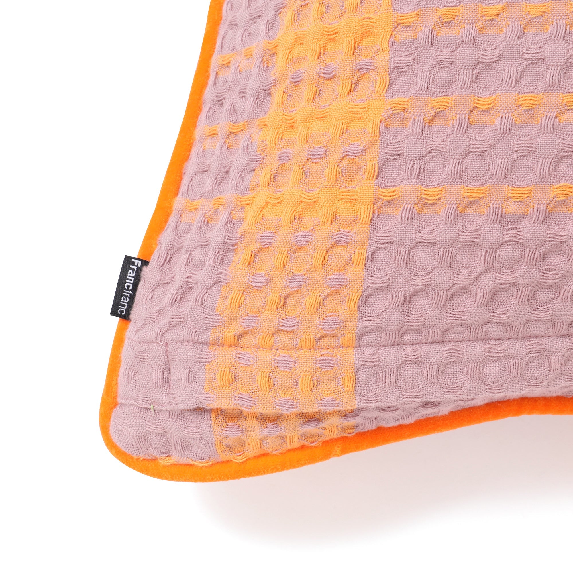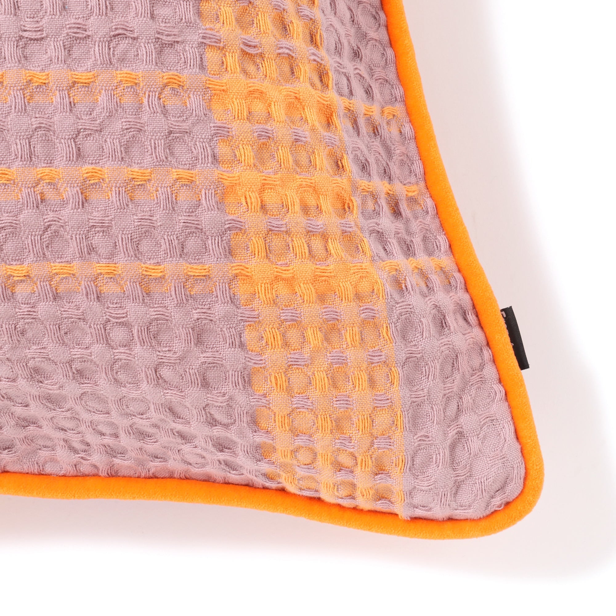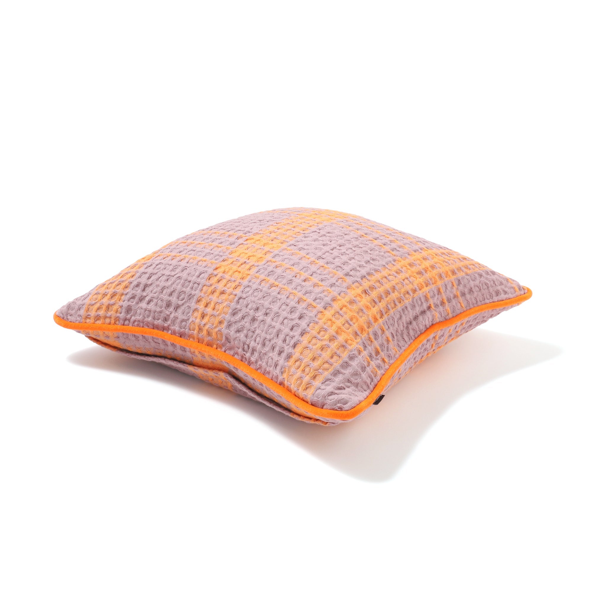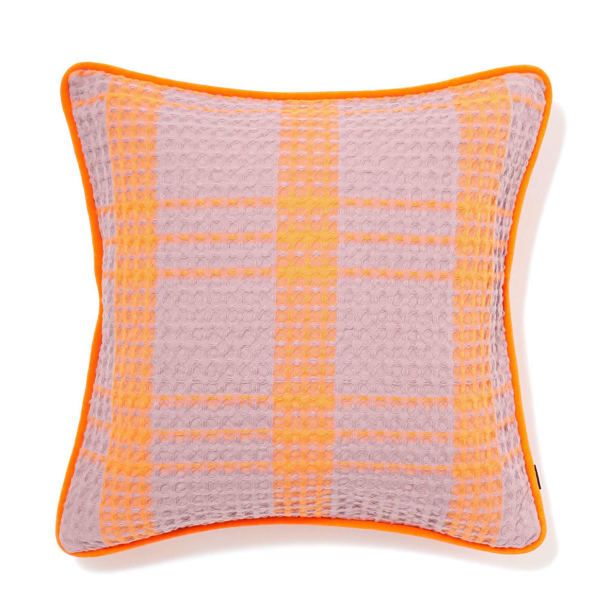ワッフルチェック クッションカバー 450×450 オレンジ×パープル(070)