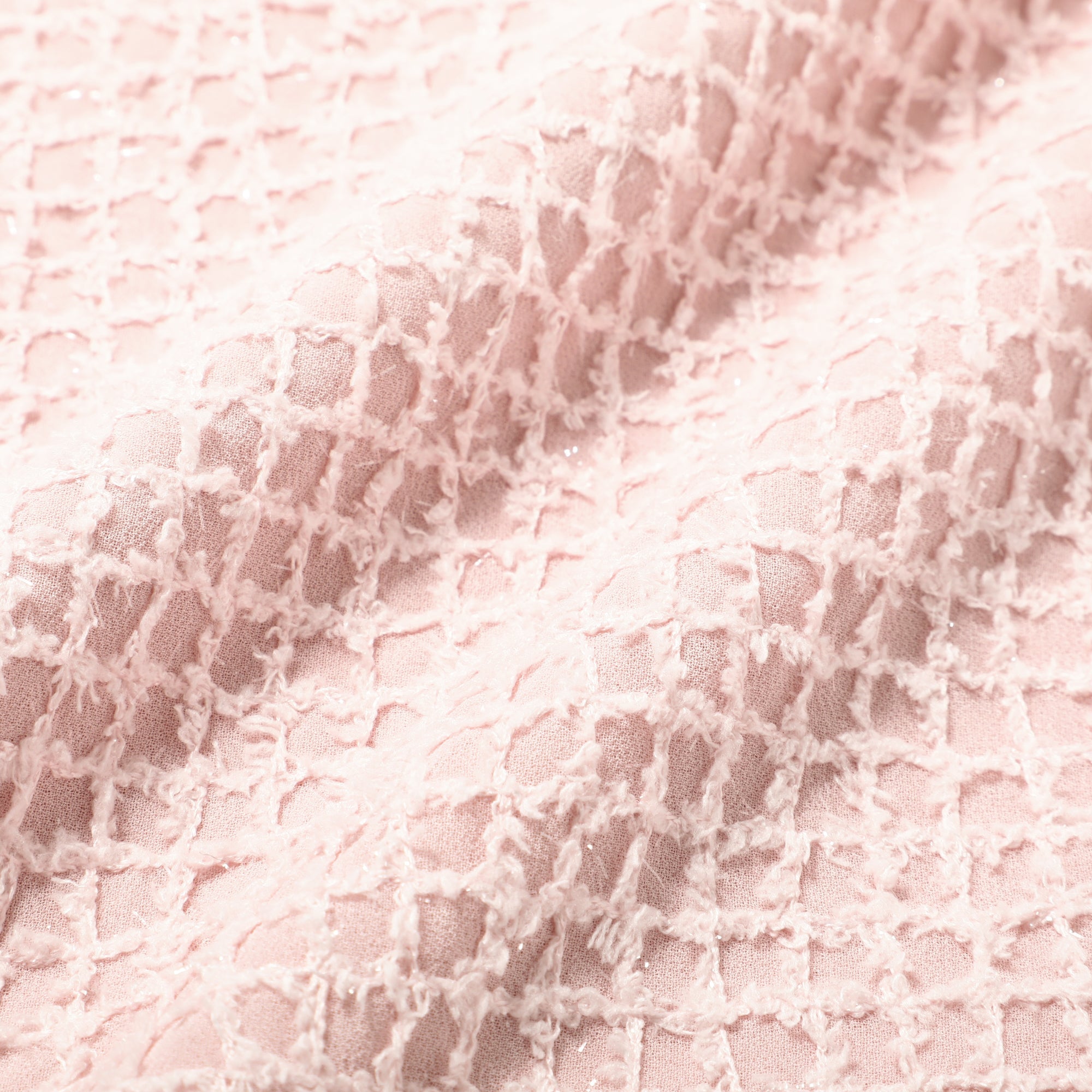 きらきらとした起毛感のある糸を使用し、細かなチェッカー模様を表現したクッションカバーです。シフォンのような薄手でマットな生地を使用していることで、柔らかな印象を与えます。