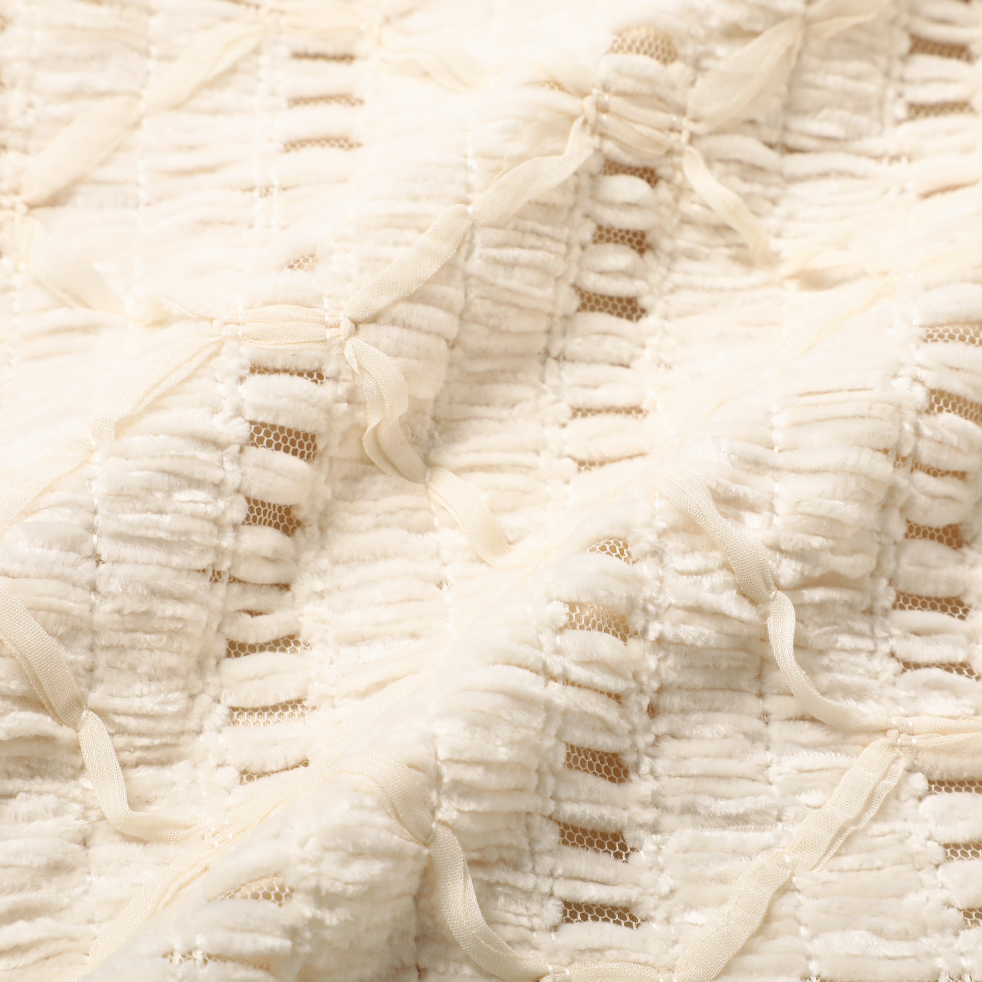 シェニールリボン クッションカバー 450×450 アイボリー(031)