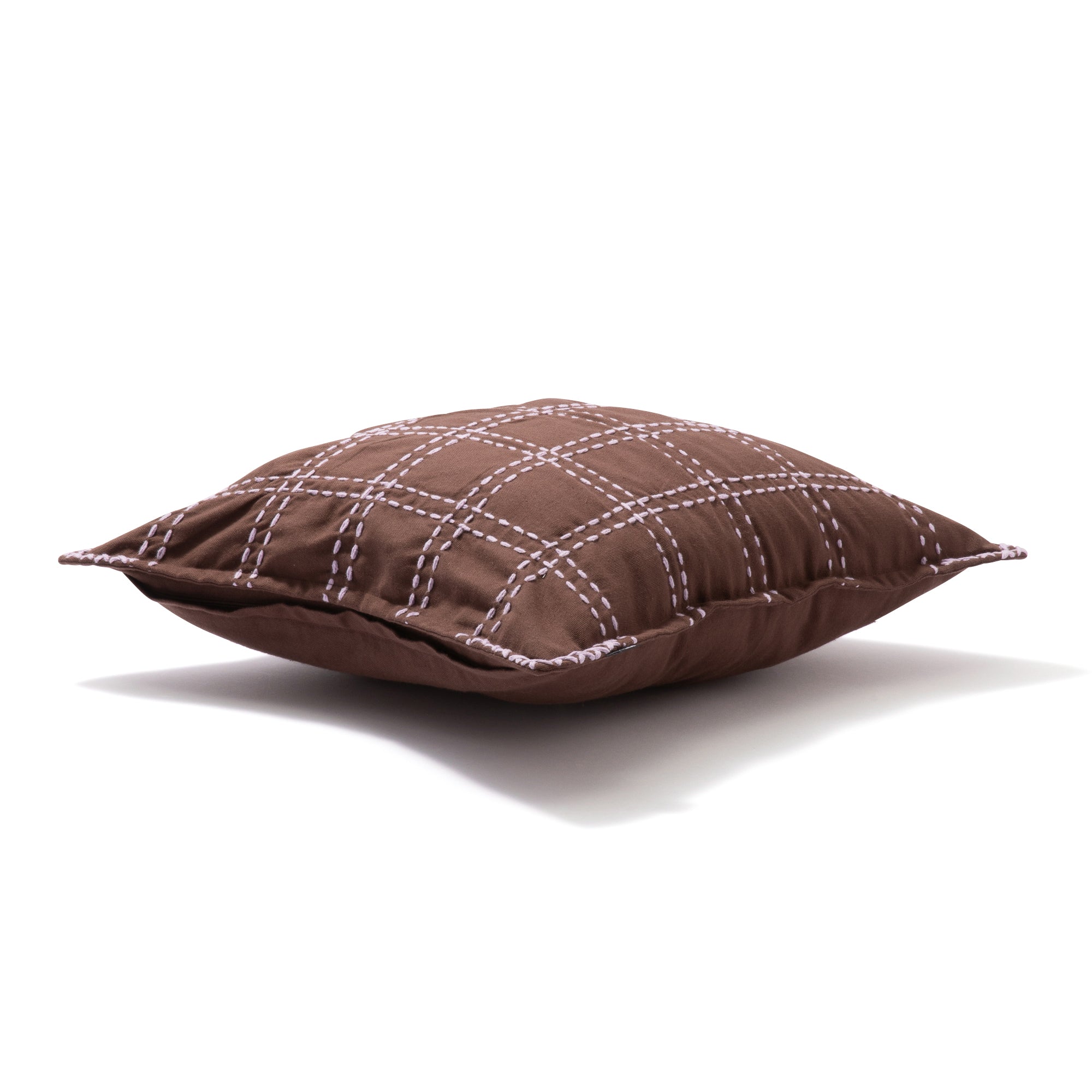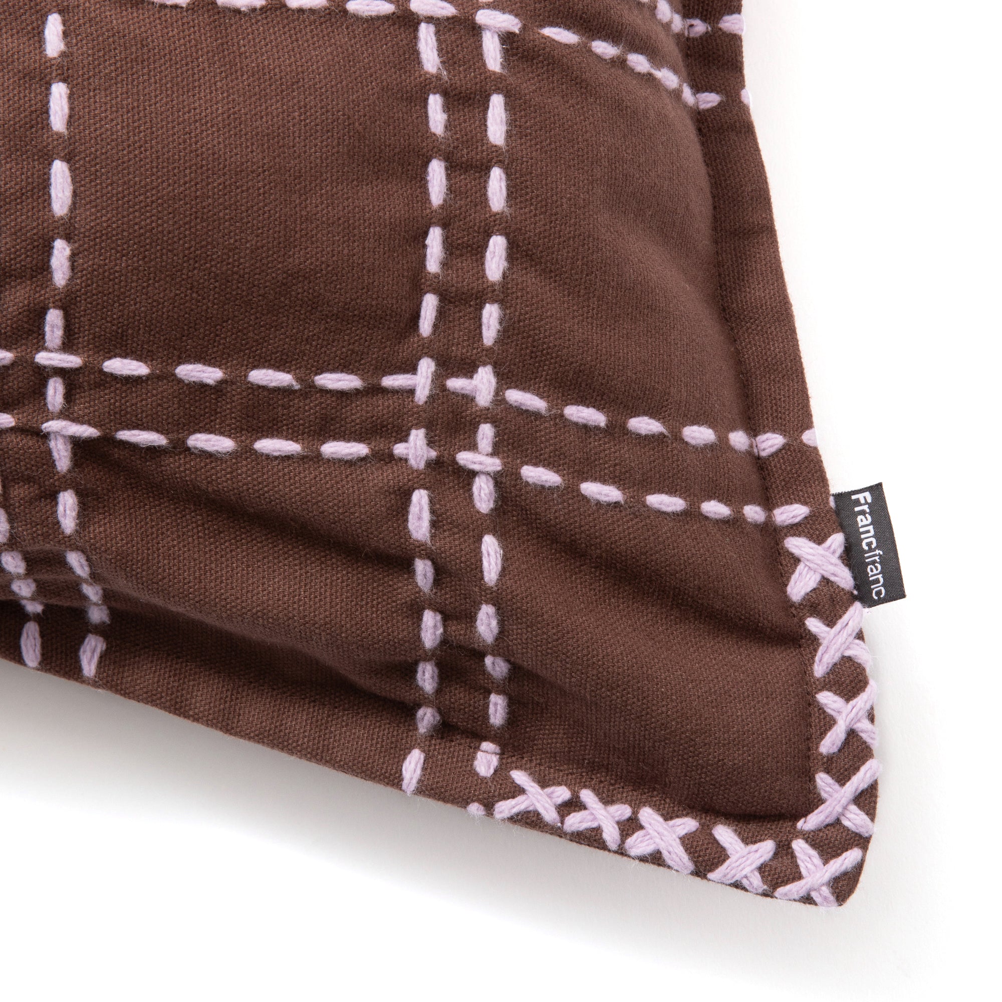 チェックステッチ クッションカバー 45×45 ブラウン(117)
