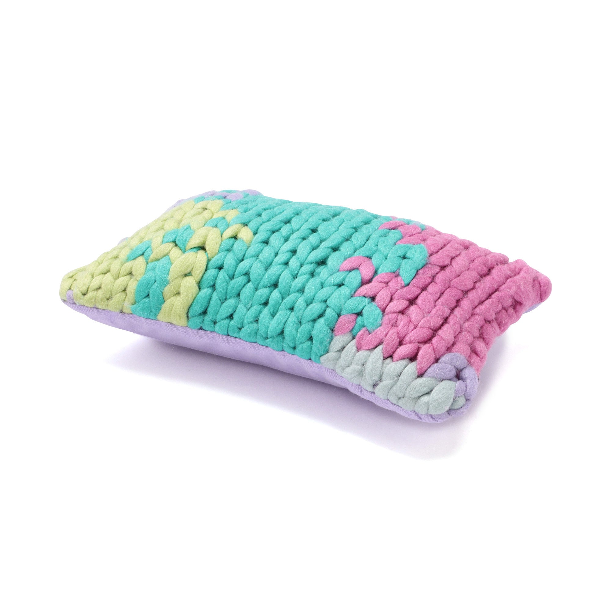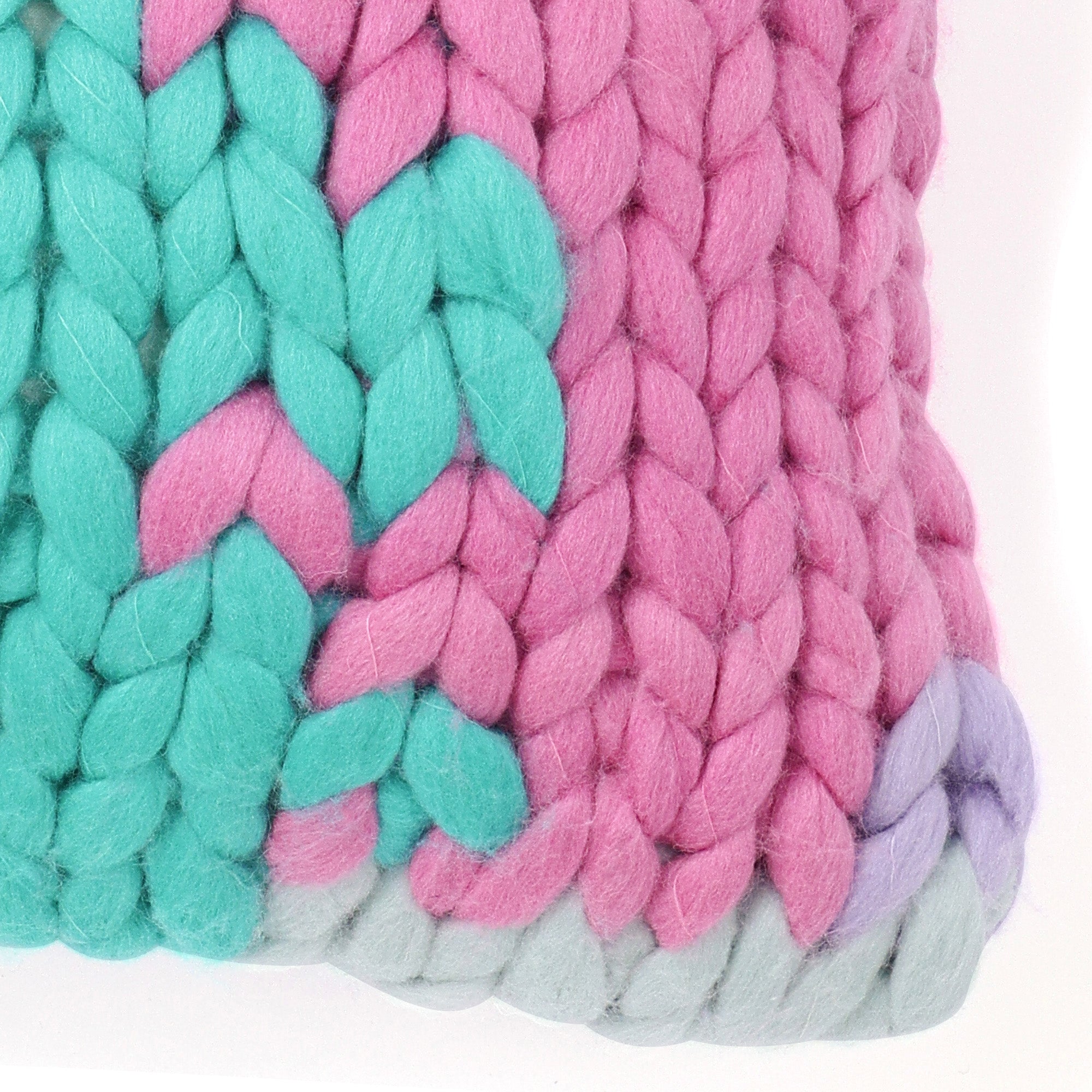 ビビッドな色合いの太ニットで編まれたトレンド感のあるクッションカバーです。
