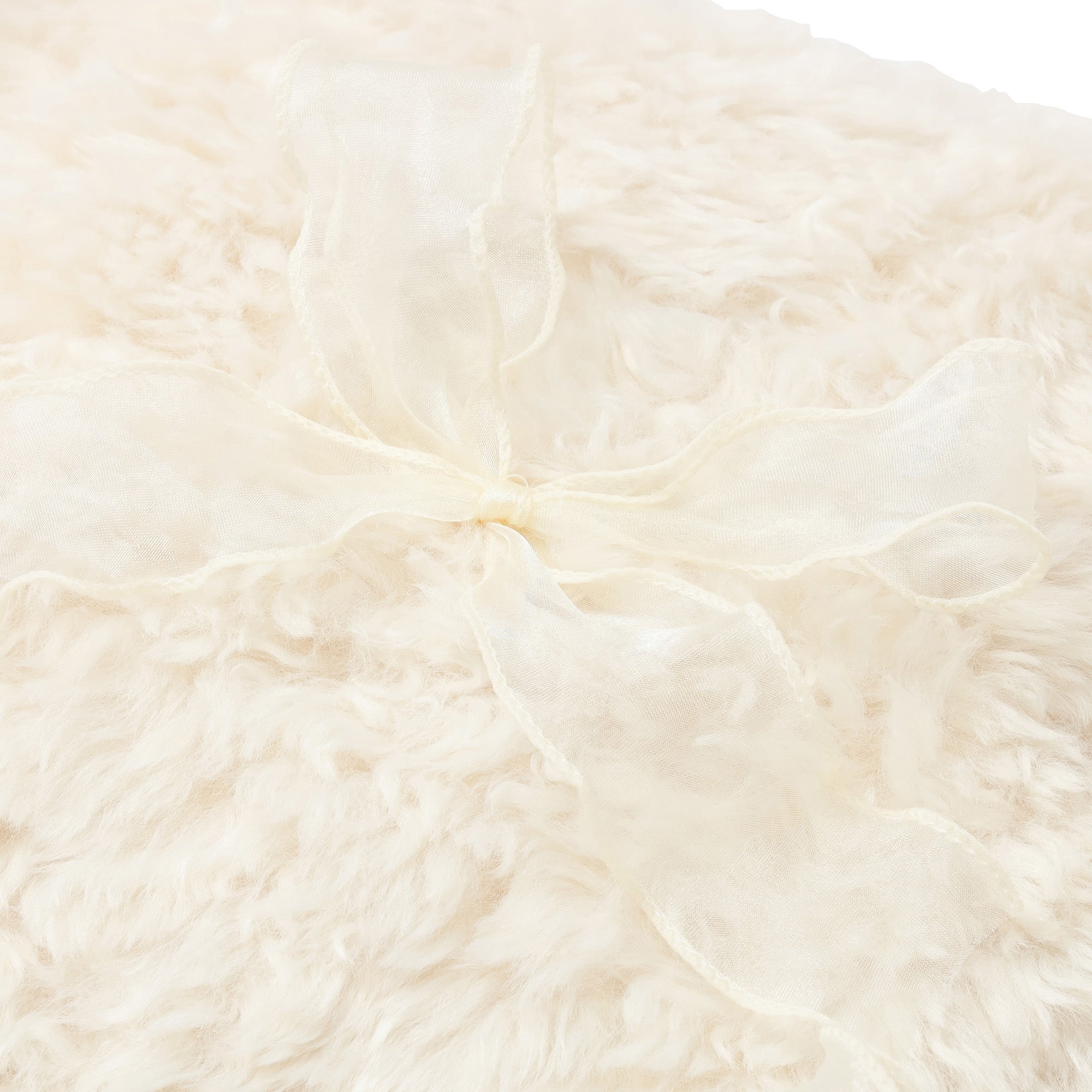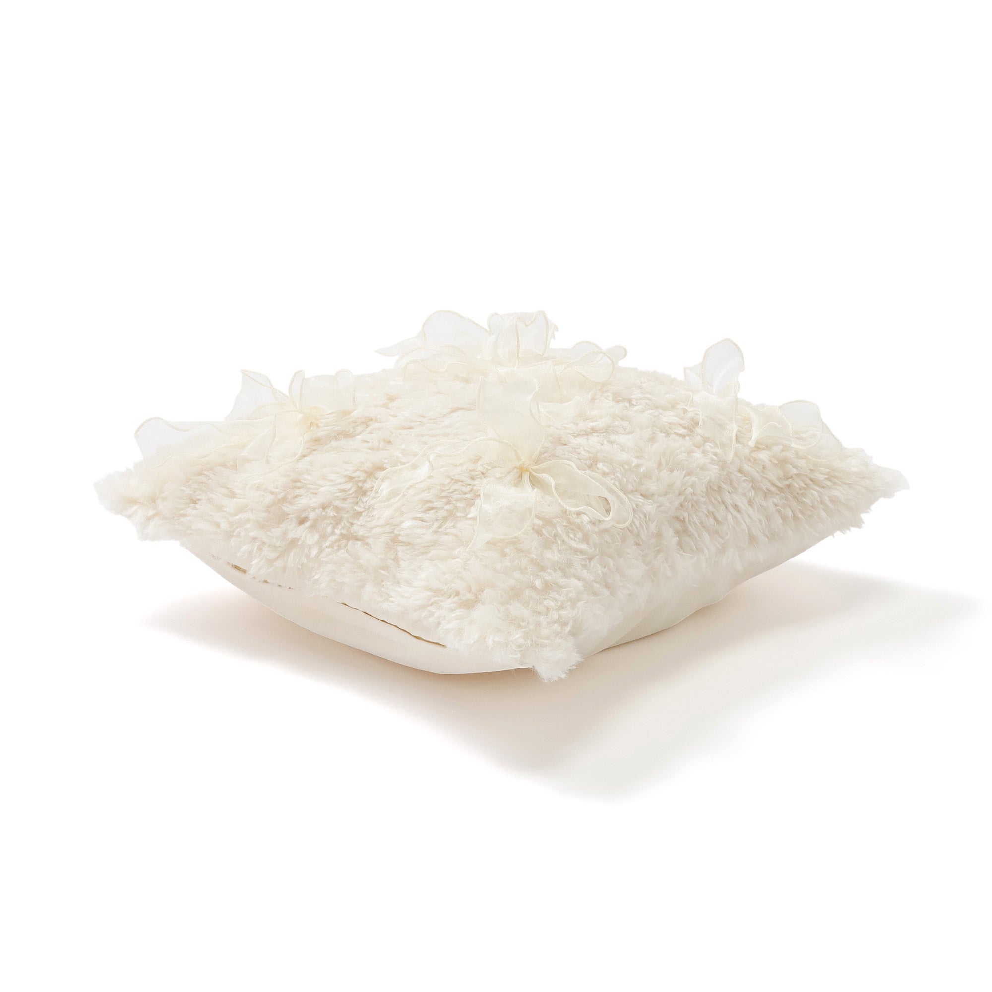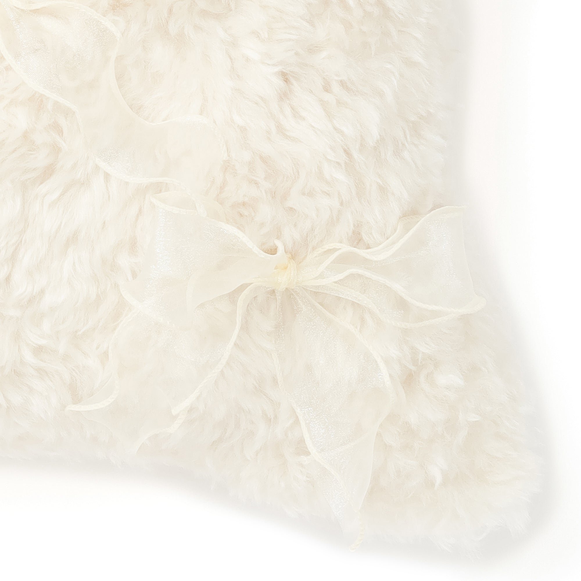 シアーなリボンがアクセントになったファー素材のクッションカバーです。華やかで可愛らしさもあるデザインです。