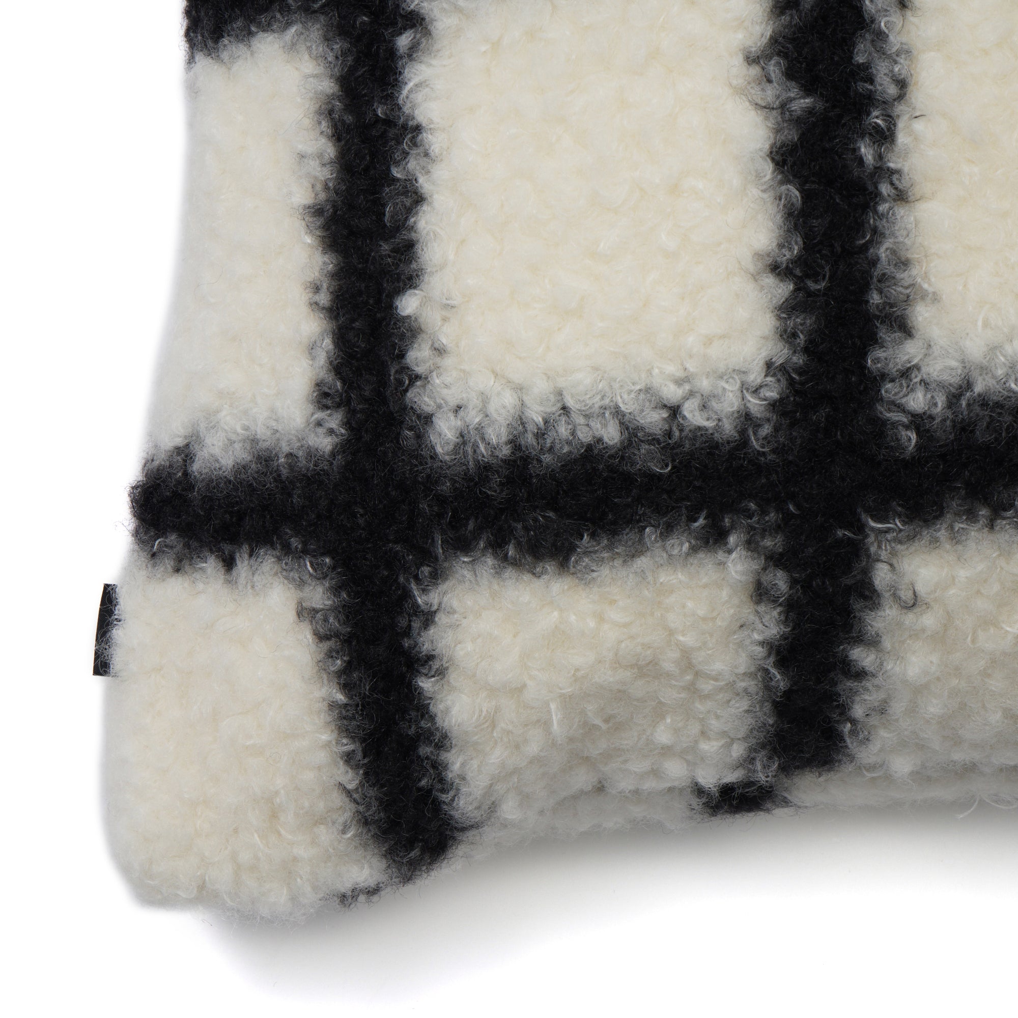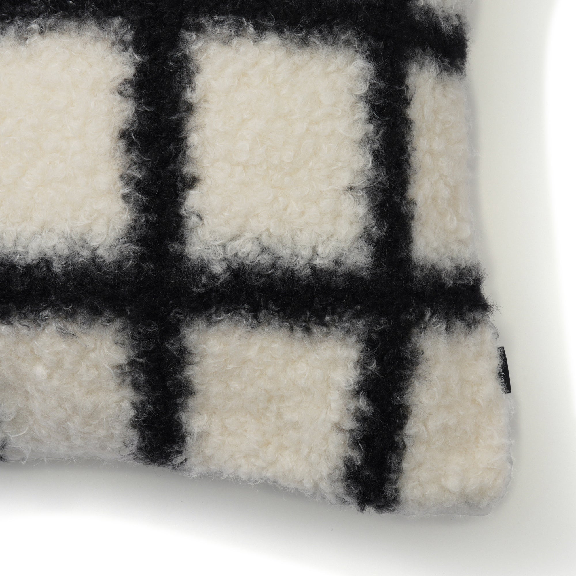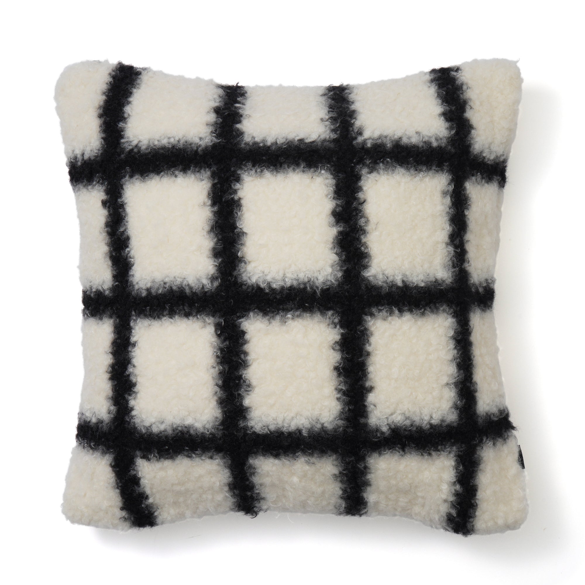 はっきりとしたチェック柄が目を引く、ボア素材のクッションカバーです。シンプルな空間にもメリハリを与えてくれるデザインです。